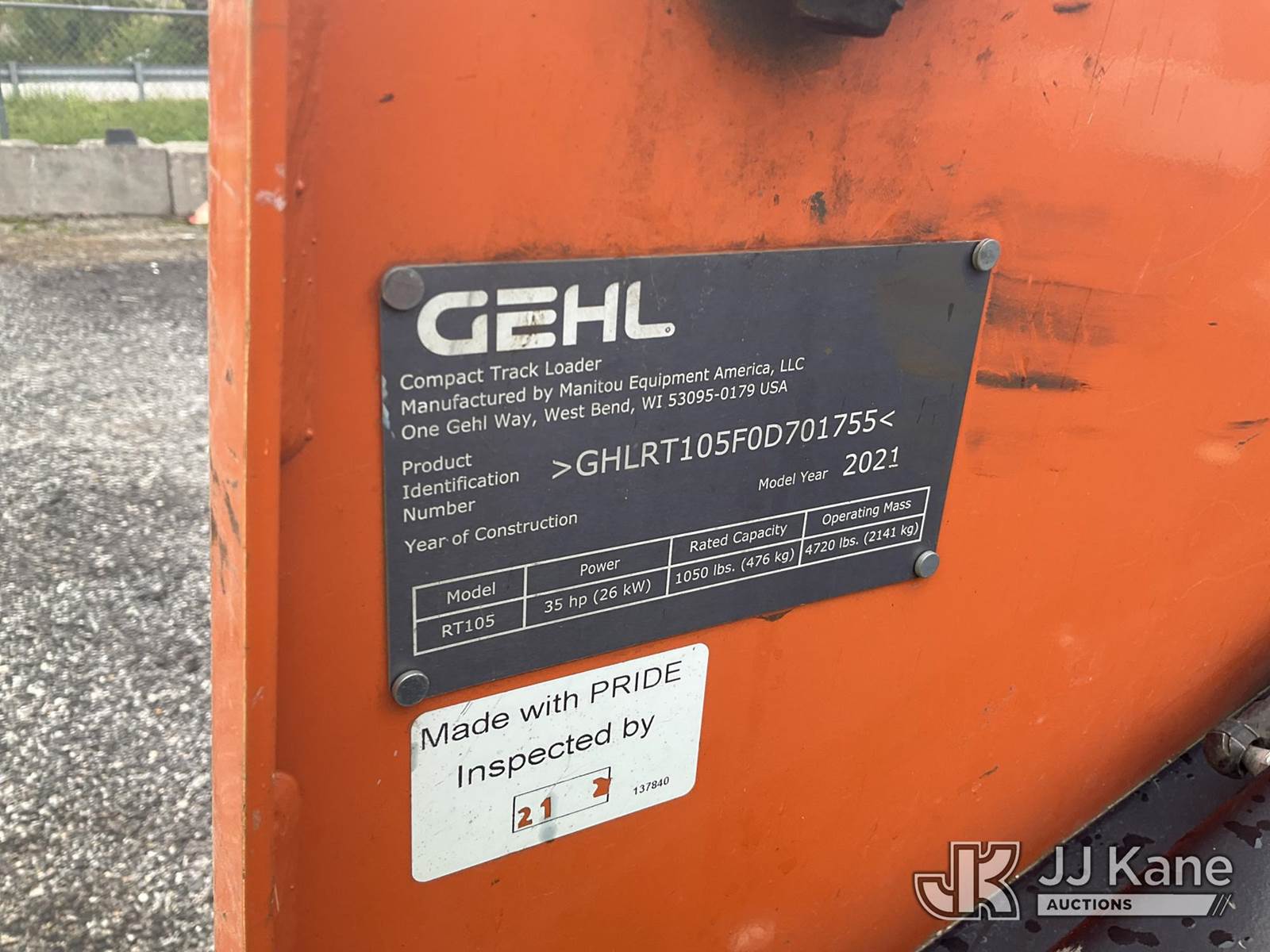 2021 Gehl RT105 Crawler Skid Steer Loader, s/n GHLRT105F0D701755, Yanmar Hydraulic Drive, diesel, with Rubber Tracks, QD Loader Bucket, Aux. Hyd. Outlets, & ROPS, (Runs, Seat Safety Bar Does Not Say In The Up Position ) (Reads 1,154 hours) NOTE: This unit is being sold AS IS/WHERE IS via Timed Auction and is located in Plymouth Meeting, PA. Inspection & preview days for this unit are the 2 business days prior to the first day of items closing for this auction, item is located at 1402 Conshohocken Rd Plymouth Meeting, PA 19462 and hours of operations are 8a-4p. For pre-sale questions, please contact Bruce Thomas @ (267)-887--0392 or bruce.thomas.jr@jjkane.com. (Buyer is responsible for removal. Assistance by consignor or JJ Kane Auctioneers is not assured.)