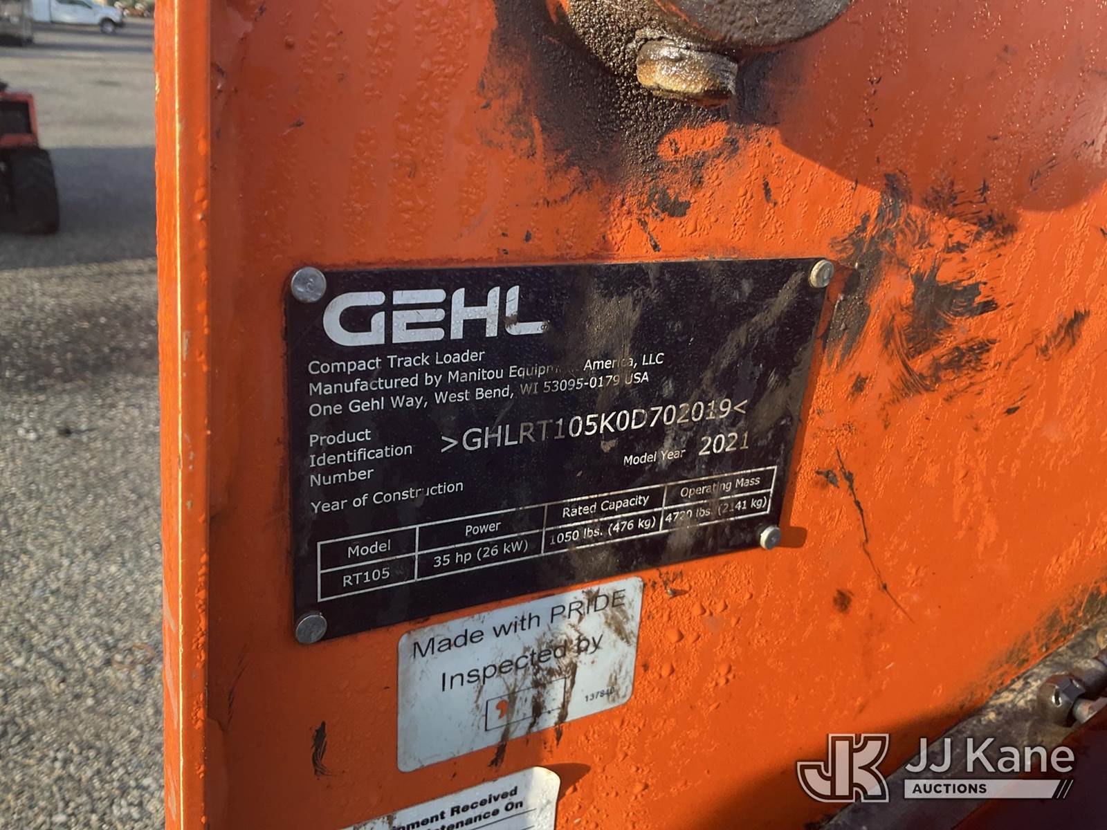 2021 Gehl RT105 Crawler Skid Steer Loader, s/n GHLRT105K0D702019, Yanmar Hydraulic Drive, diesel, with Rubber Tracks, QD Loader Bucket, Aux. Hyd. Outlets, & ROPS, (Jump To Start, Runs Moves & Operates, Rabbit Speed Not Working) (Reads 1,227 hours) NOTE: This unit is being sold AS IS/WHERE IS via Timed Auction and is located in Plymouth Meeting, PA. Inspection & preview days for this unit are the 2 business days prior to the first day of items closing for this auction, item is located at 1402 Conshohocken Rd Plymouth Meeting, PA 19462 and hours of operations are 8a-4p. For pre-sale questions, please contact Bruce Thomas @ (267)-887--0392 or bruce.thomas.jr@jjkane.com. (Buyer is responsible for removal. Assistance by consignor or JJ Kane Auctioneers is not assured.)