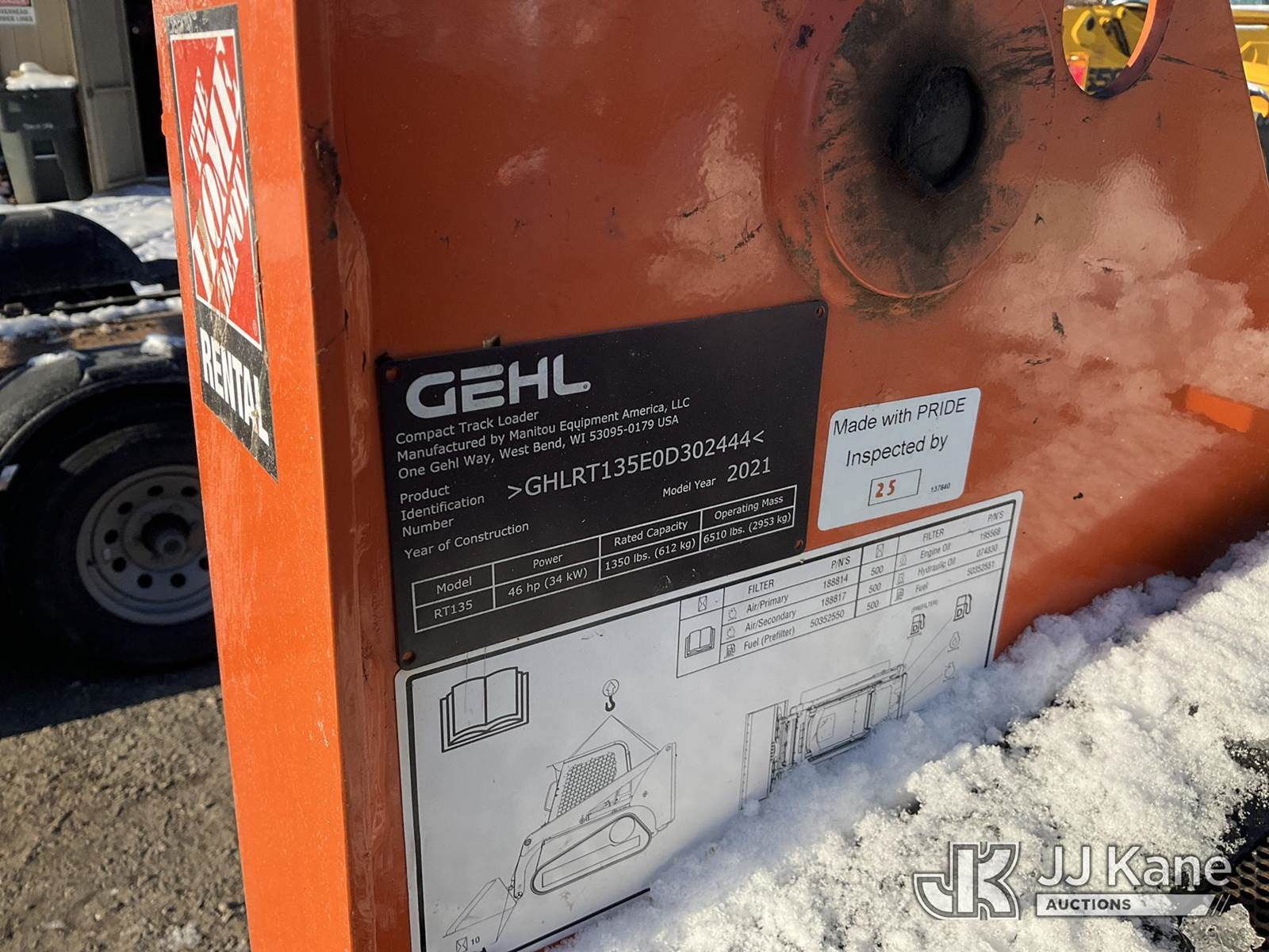 2021 Gehl RT135 Crawler Skid Steer Loader, s/n GHLRT135E0D302444, Yanmar Hydraulic Drive, diesel, with QD Loader Bucket, Aux. Hyd. Outlets & ROPS, (Runs & Operates, Jump To Start) (Reads 464 hours) NOTE: This unit is being sold AS IS/WHERE IS via Timed Auction and is located in Plymouth Meeting, PA. Inspection & preview days for this unit are the 2 business days prior to the first day of items closing for this auction, item is located at 1402 Conshohocken Rd Plymouth Meeting, PA 19462 and hours of operations are 8a-4p. For pre-sale questions, please contact Bruce Thomas @ (267) 887-0392 or bruce.thomas.jr@jjkane.com. (Buyer is responsible for removal. Assistance by consignor or JJ Kane Auctions is not assured.)