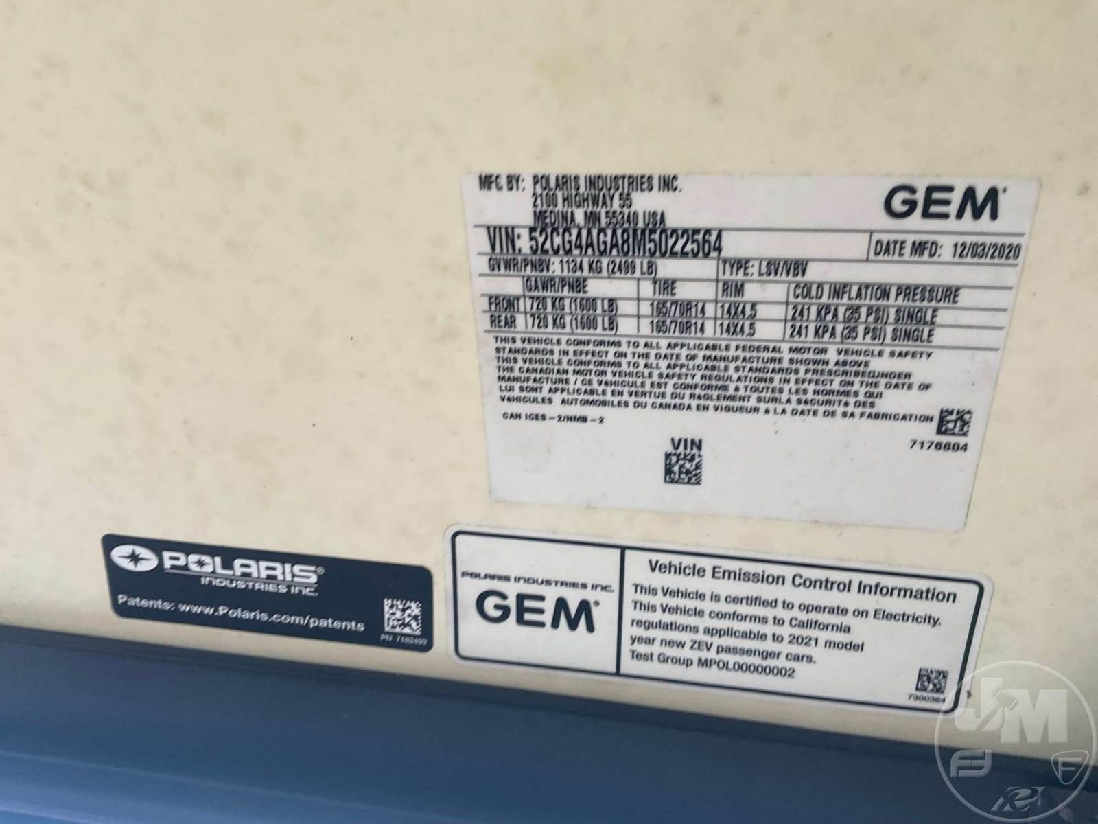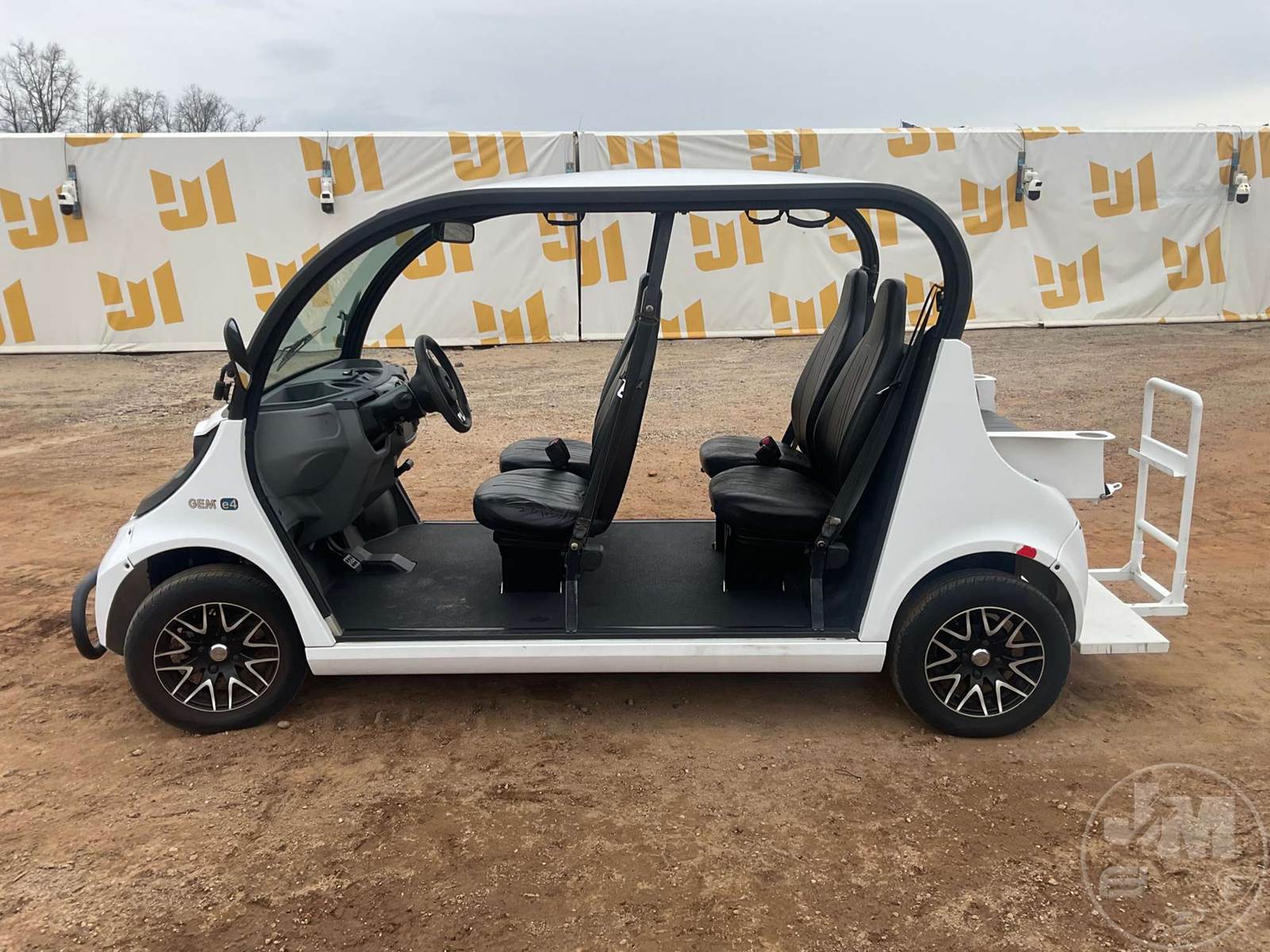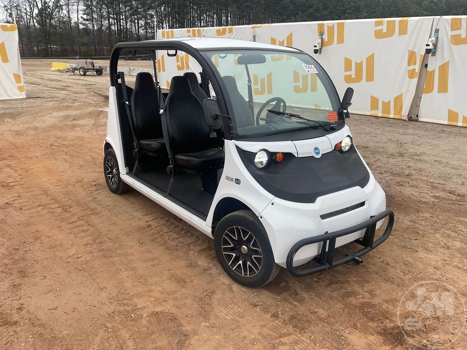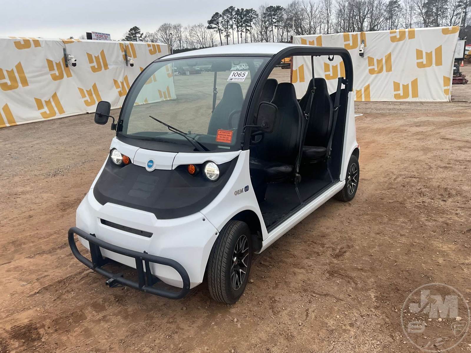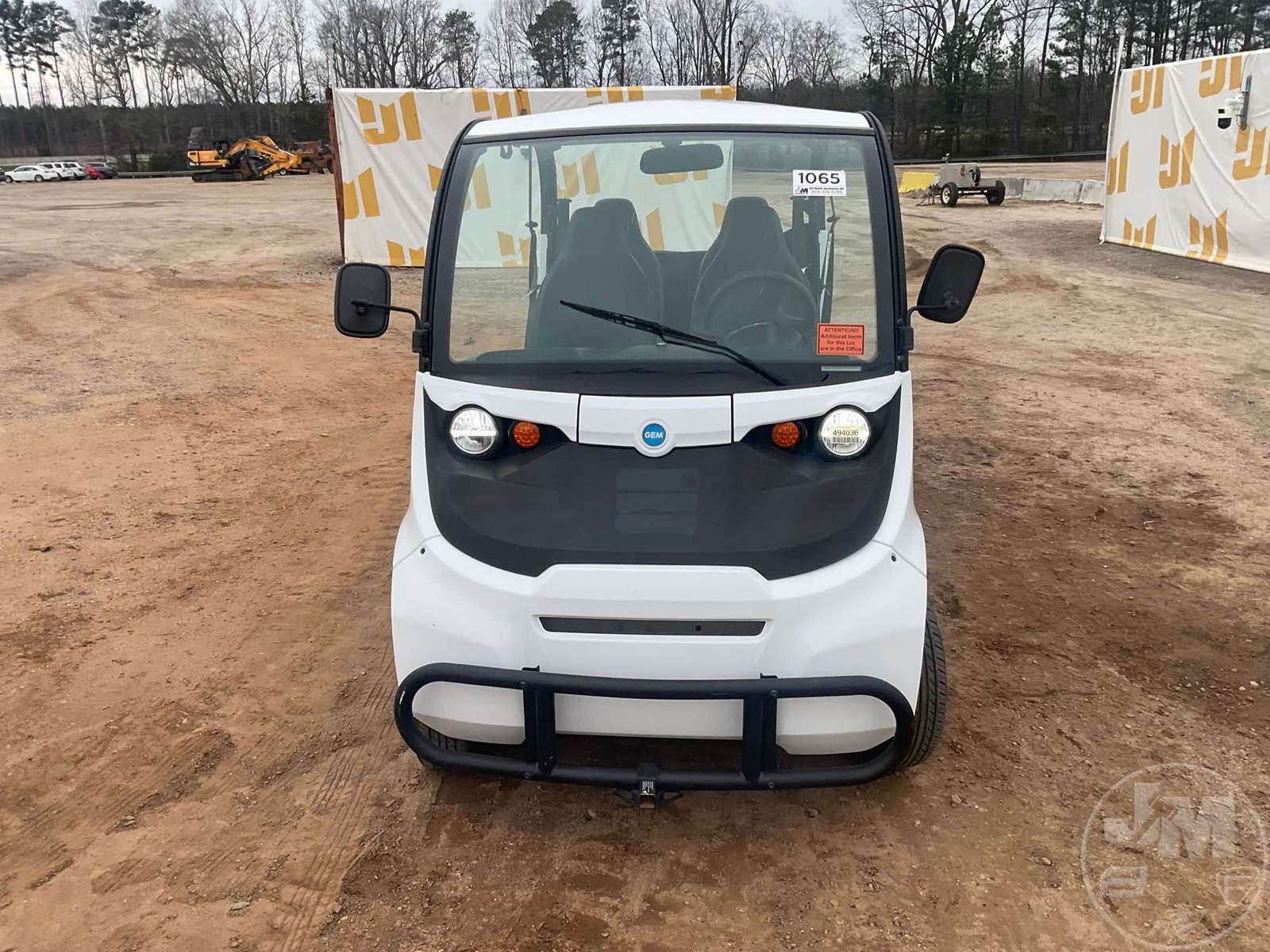GEM GOLF CART, ELECTRIC, WHITE, 6 SEAT, CANOPY, WINDSHIELD, LIGHTS, ON BOARD CHARGER, DIRECT FWD, 48V AC INDUCTION MOTOR WITH 6.7HP, DELIVERING A TOP SPEED OF 25 MPH, POWER IS SUPPLIED BY A BANK OF EIGHT 6V, 224AH MAINTENANCE-FREE BATTERIES, ALL-ALUMINUM CHASSIS AND SUPERSTRUCTURE, SAFETY FEATURES INCLUDE A CERTIFIED OCCUPANT PROTECTION SYSTEM, 3-POINT SEAT BELTS, & AN AUTOMOTIVE GLASS WS, ***CHARGING CORD LOCATED AT CHECKOUT***