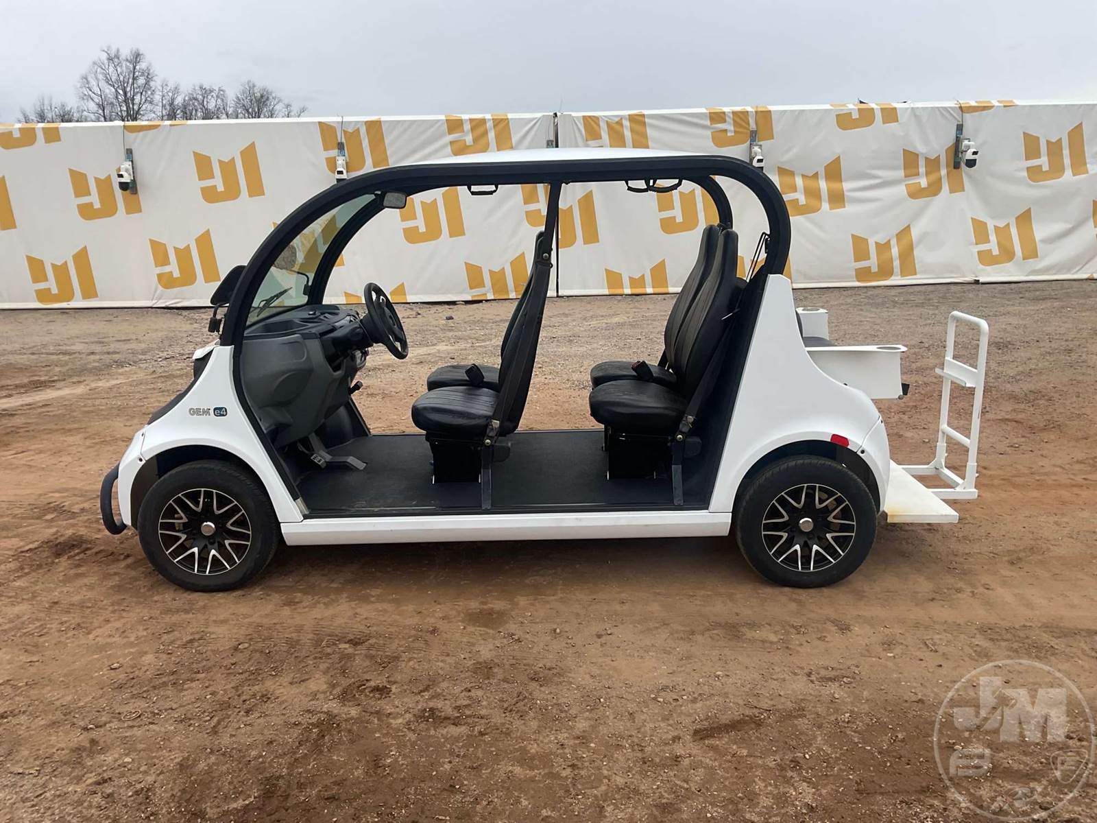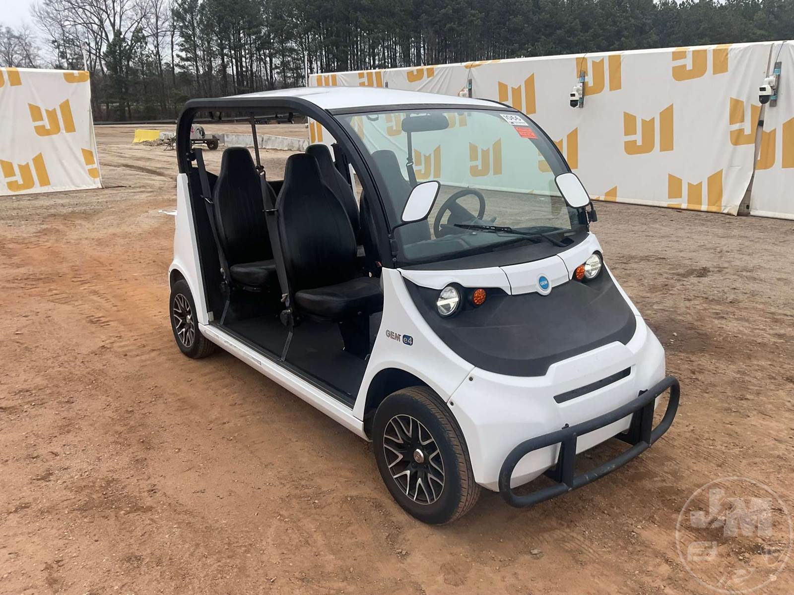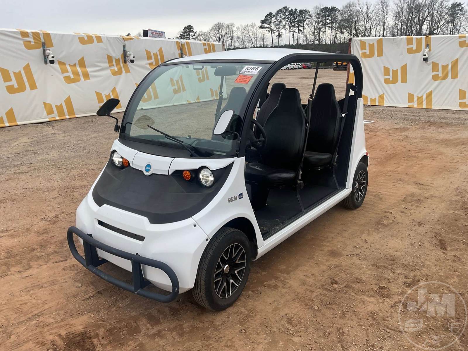 GEM GOLF CART, ELECTRIC, WHITE, 6 SEAT, CANOPY, WINDSHIELD, LIGHTS, ON BOARD CHARGER, DIRECT FWD, 48V AC INDUCTION MOTOR WITH 6.7HP, DELIVERING A TOP SPEED OF 25 MPH, POWER IS SUPPLIED BY A BANK OF EIGHT 6V, 224AH MAINTENANCE-FREE BATTERIES, ALL-ALUMINUM CHASSIS AND SUPERSTRUCTURE, SAFETY FEATURES INCLUDE A CERTIFIED OCCUPANT PROTECTION SYSTEM, 3-POINT SEAT BELTS, & AN AUTOMOTIVE GLASS WS, ***CHARGER LOCATED AT CHECKOUT***