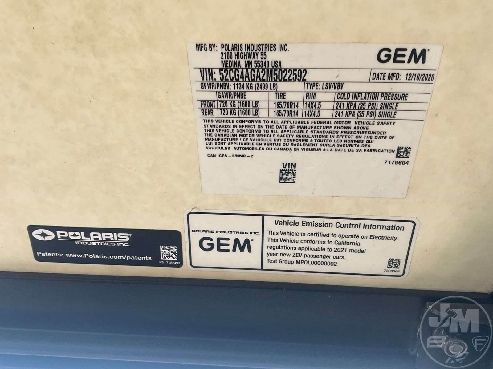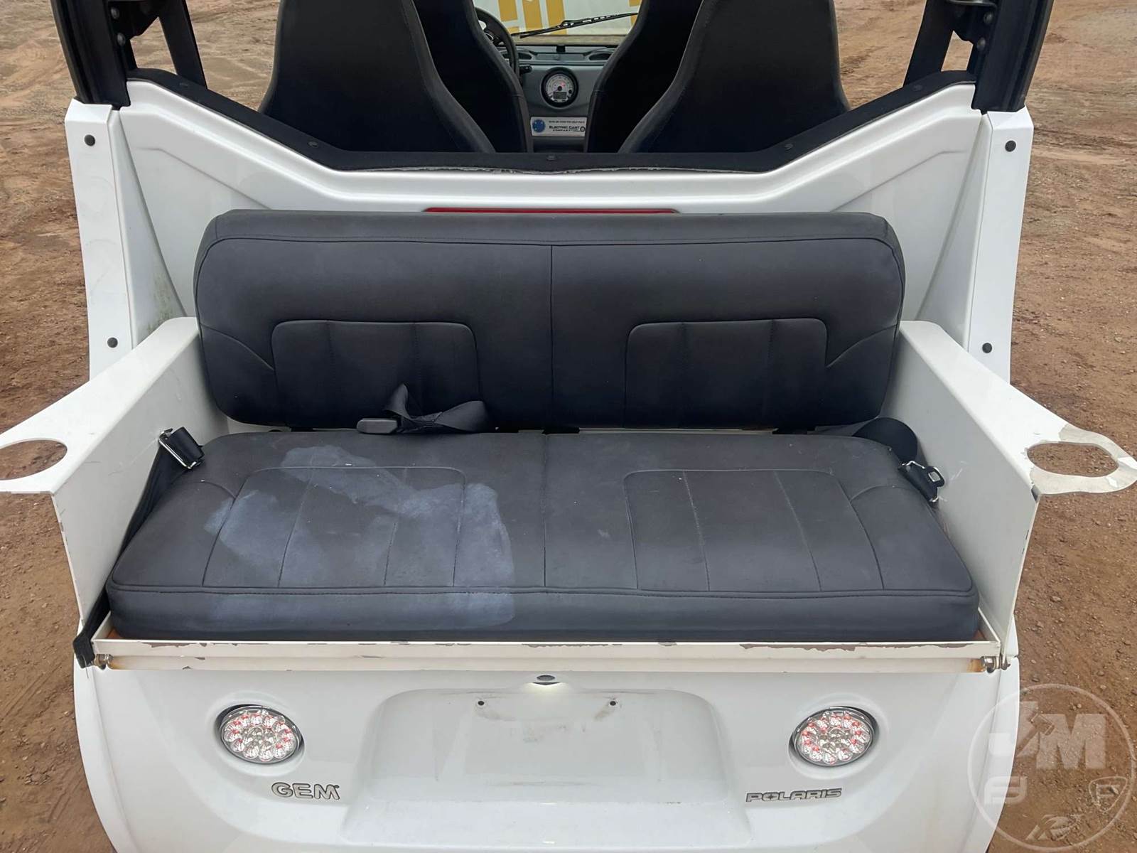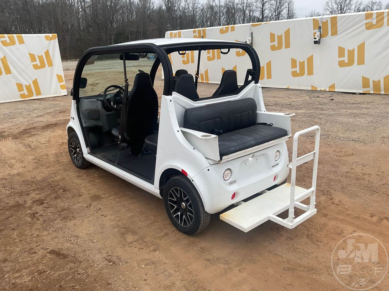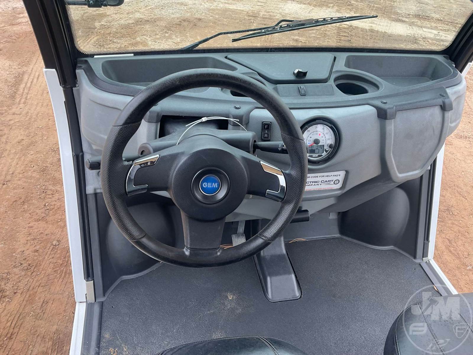 GEM GOLF CART, ELECTRIC, WHITE, 6 SEAT, CANOPY, WINDSHIELD, LIGHTS, ON BOARD CHARGER, DIRECT FWD, 48V AC INDUCTION MOTOR WITH 6.7HP, DELIVERING A TOP SPEED OF 25 MPH, POWER IS SUPPLIED BY A BANK OF EIGHT 6V, 224AH MAINTENANCE-FREE BATTERIES, ALL-ALUMINUM CHASSIS AND SUPERSTRUCTURE, SAFETY FEATURES INCLUDE A CERTIFIED OCCUPANT PROTECTION SYSTEM, 3-POINT SEAT BELTS, & AN AUTOMOTIVE GLASS WS, ***CHARGER LOCATED AT CHECKOUT***