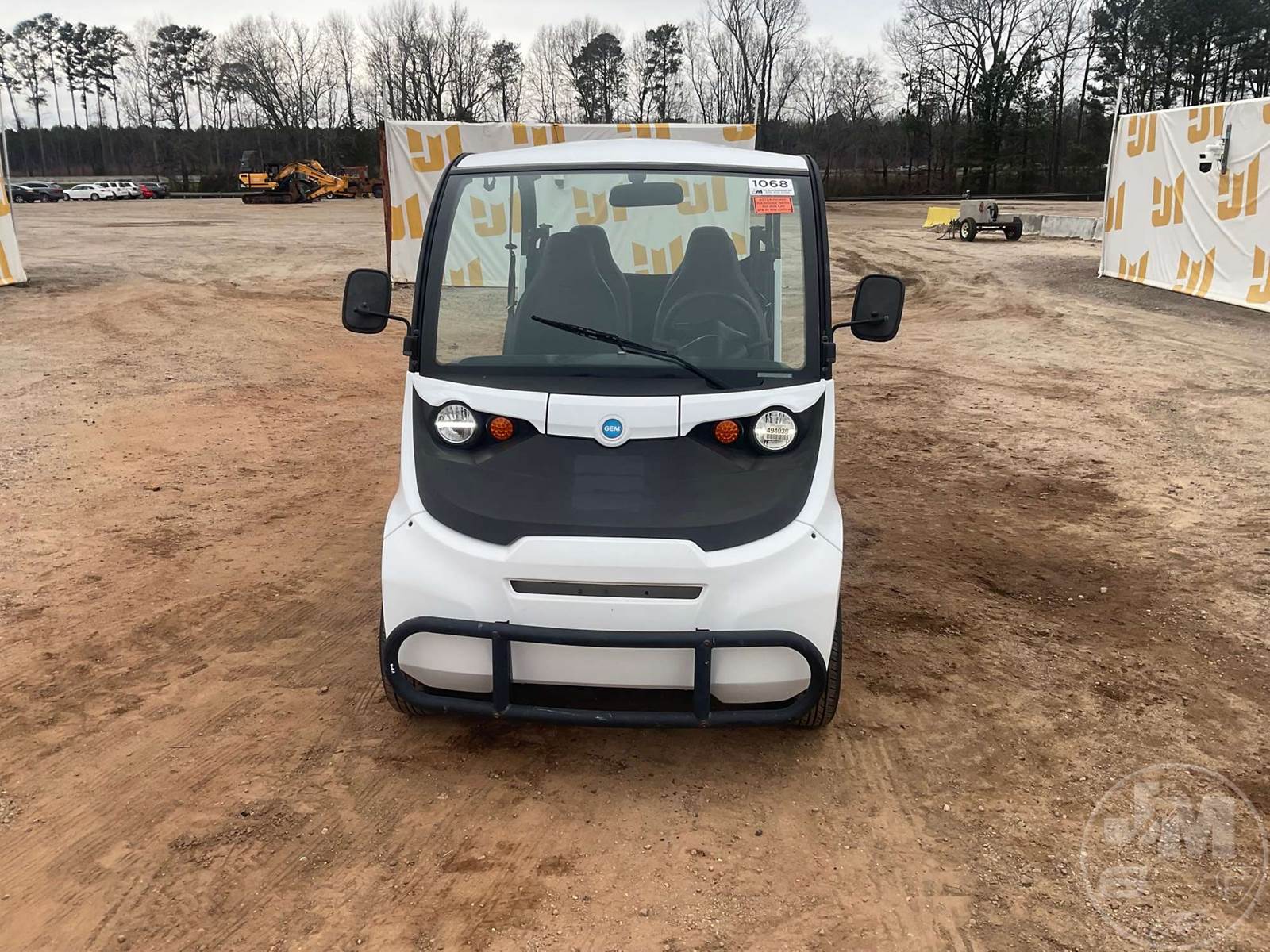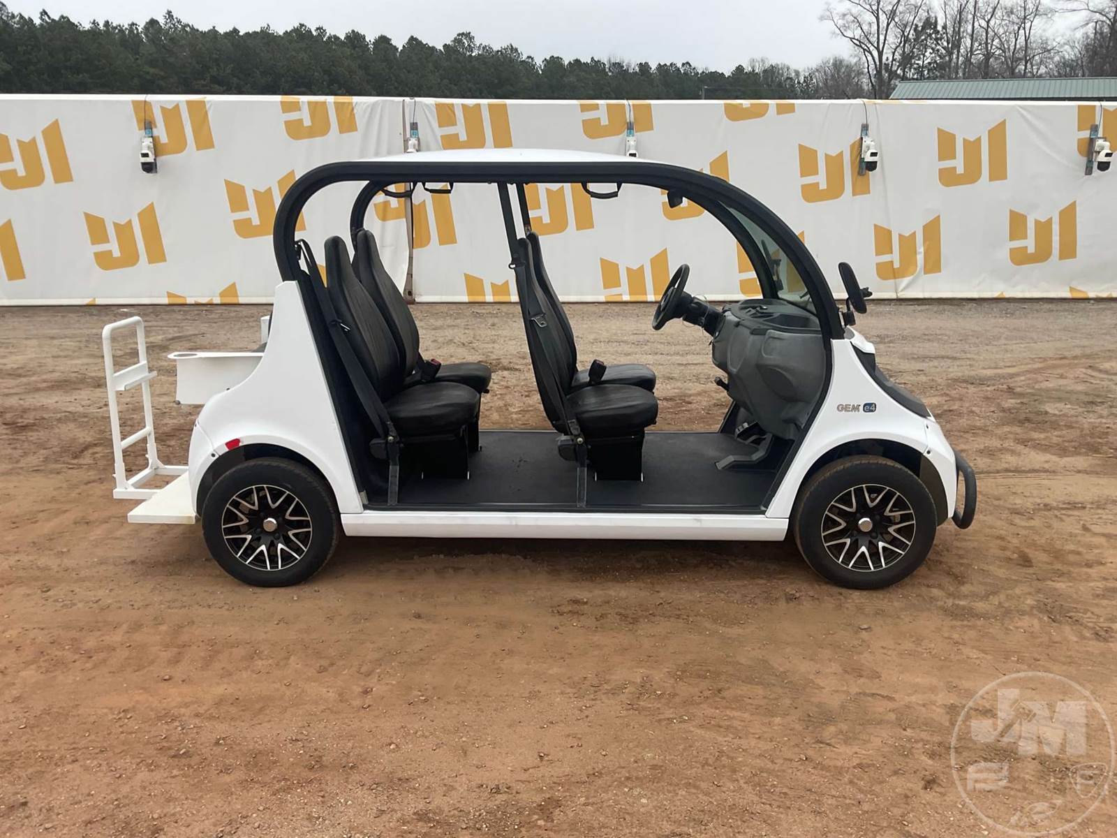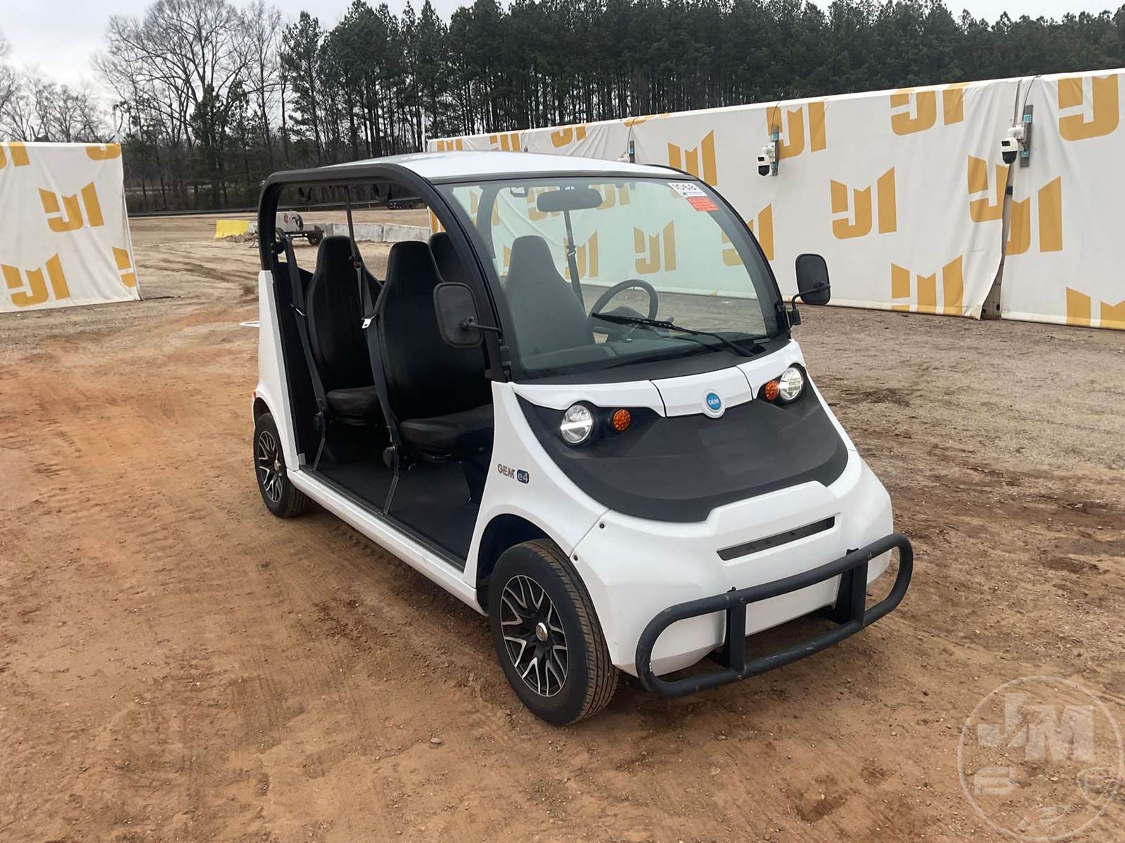 GEM GOLF CART, ELECTRIC, WHITE, 6 SEAT, CANOPY, WINDSHIELD, LIGHTS, ON BOARD CHARGER, DIRECT FWD, 48V AC INDUCTION MOTOR WITH 6.7HP, DELIVERING A TOP SPEED OF 25 MPH, POWER IS SUPPLIED BY A BANK OF EIGHT 6V, 224AH MAINTENANCE-FREE BATTERIES, ALL-ALUMINUM CHASSIS AND SUPERSTRUCTURE, SAFETY FEATURES INCLUDE A CERTIFIED OCCUPANT PROTECTION SYSTEM, 3-POINT SEAT BELTS, & AN AUTOMOTIVE GLASS WS, ***CHARGER LOCATED AT CHECKOUT***