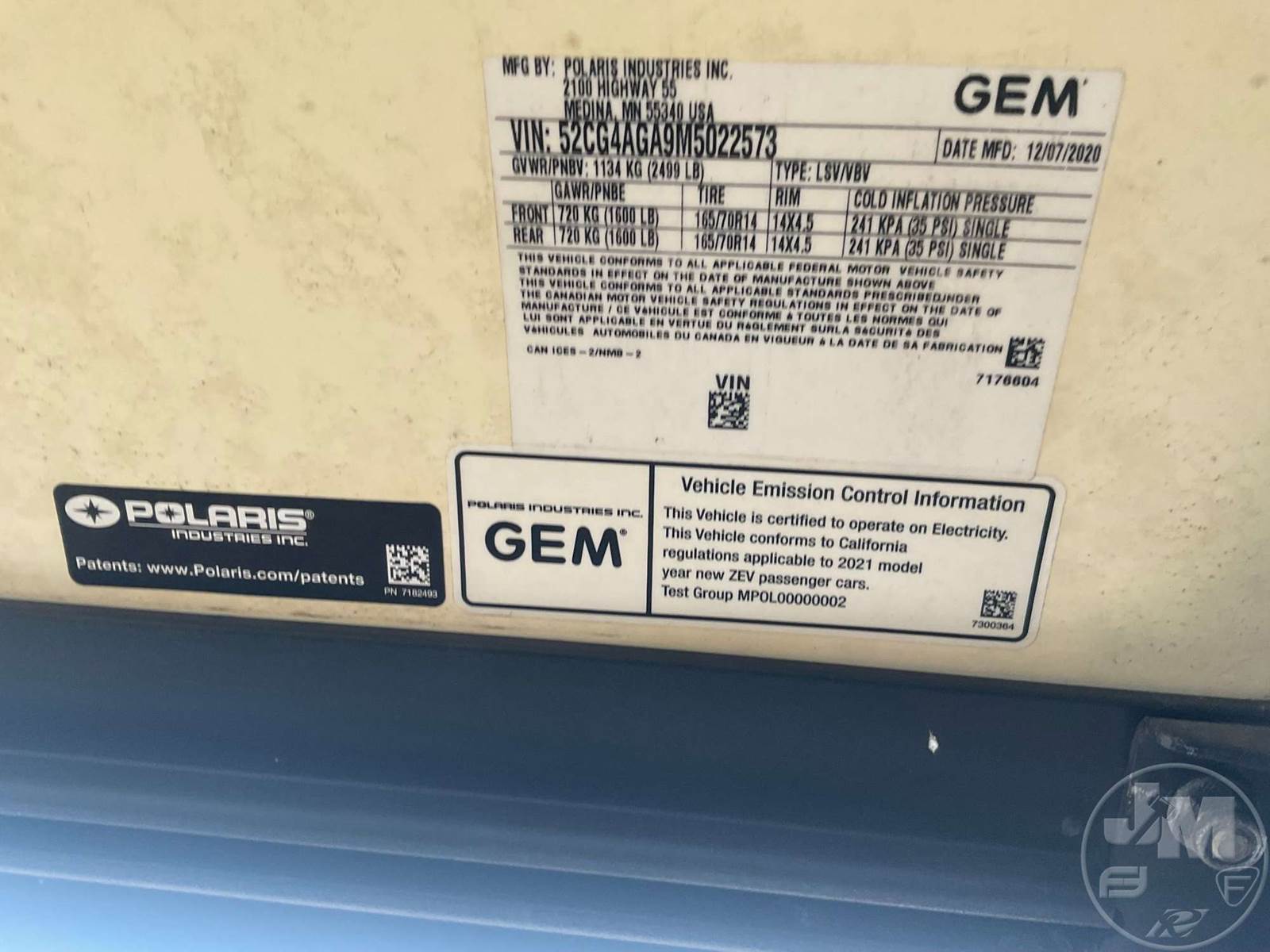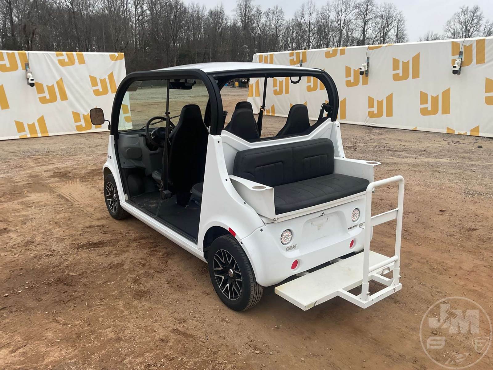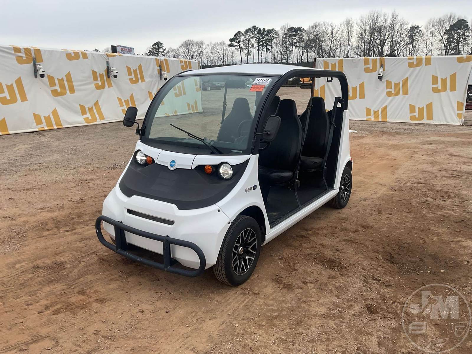 GEM GOLF CART, ELECTRIC, WHITE, 6 SEAT, CANOPY, WINDSHIELD, LIGHTS, ON BOARD CHARGER, DIRECT FWD, 48V AC INDUCTION MOTOR WITH 6.7HP, DELIVERING A TOP SPEED OF 25 MPH, POWER IS SUPPLIED BY A BANK OF EIGHT 6V, 224AH MAINTENANCE-FREE BATTERIES, ALL-ALUMINUM CHASSIS AND SUPERSTRUCTURE, SAFETY FEATURES INCLUDE A CERTIFIED OCCUPANT PROTECTION SYSTEM, 3-POINT SEAT BELTS, & AN AUTOMOTIVE GLASS WS, ***CHARGER LOCATED AT CHECKOUT***