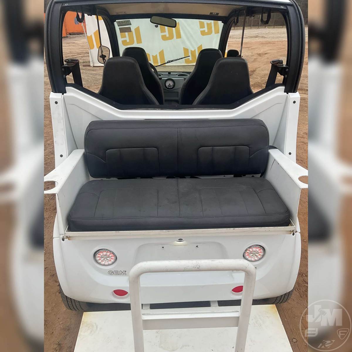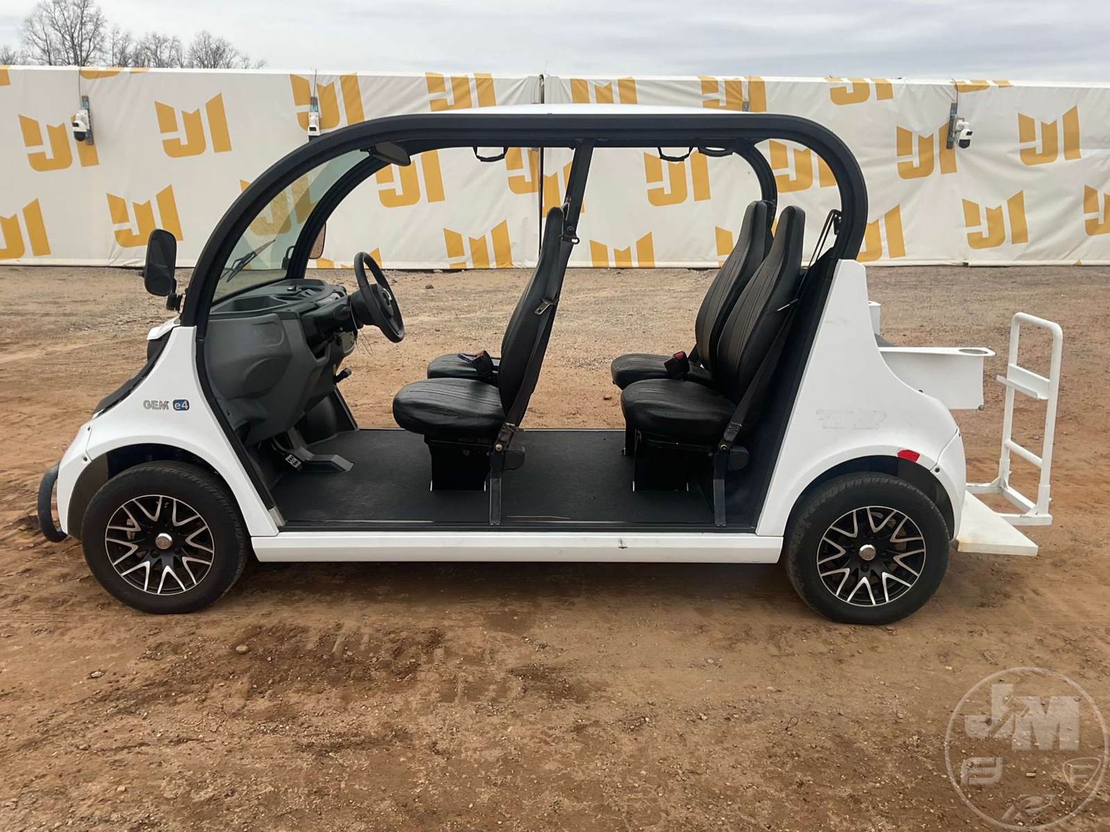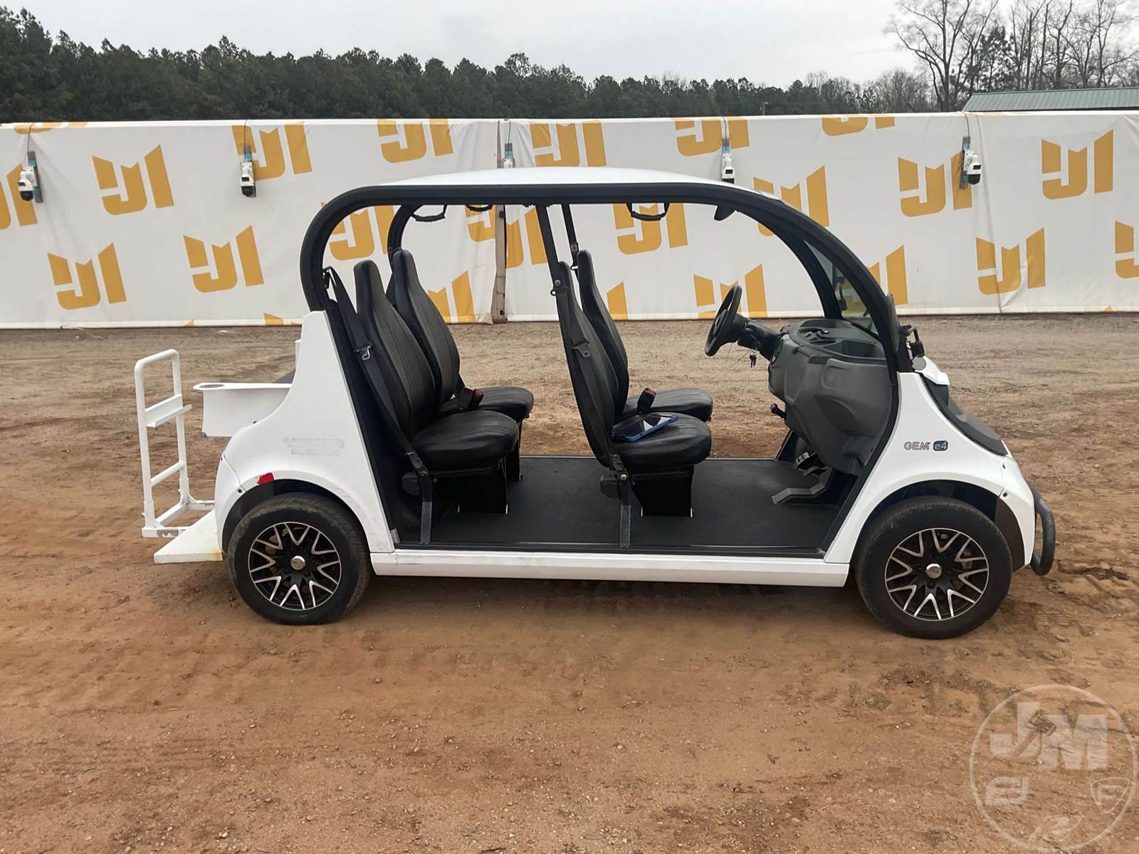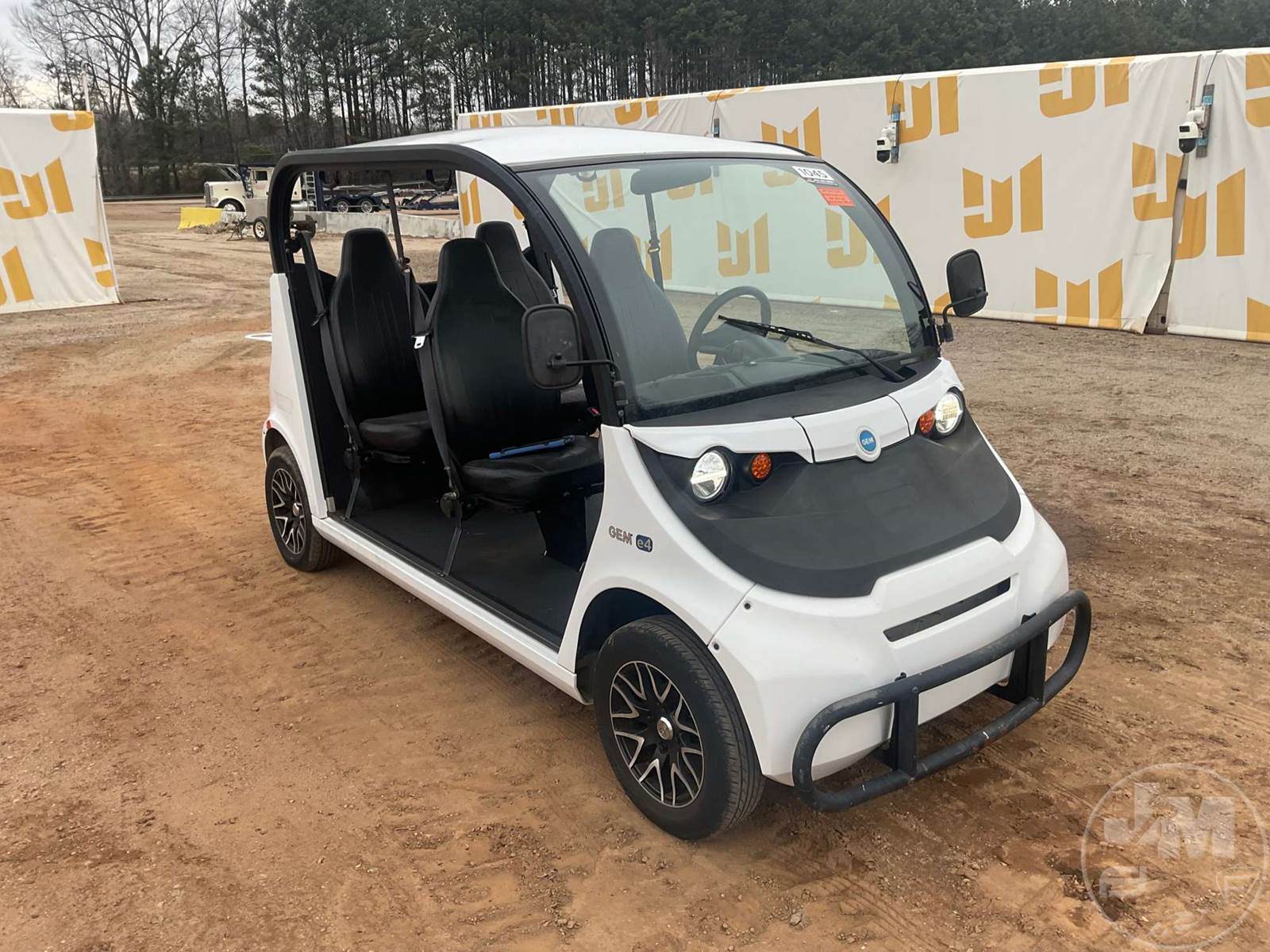 GEM GOLF CART, ELECTRIC, WHITE, 6 SEAT, CANOPY, WINDSHIELD, LIGHTS, ON BOARD CHARGER, DIRECT FWD, 48V AC INDUCTION MOTOR WITH 6.7HP, DELIVERING A TOP SPEED OF 25 MPH, POWER IS SUPPLIED BY A BANK OF EIGHT 6V, 224AH MAINTENANCE-FREE BATTERIES, ALL-ALUMINUM CHASSIS AND SUPERSTRUCTURE, SAFETY FEATURES INCLUDE A CERTIFIED OCCUPANT PROTECTION SYSTEM, 3-POINT SEAT BELTS, & AN AUTOMOTIVE GLASS WS, ***CHARGER LOCATED AT CHECKOUT***