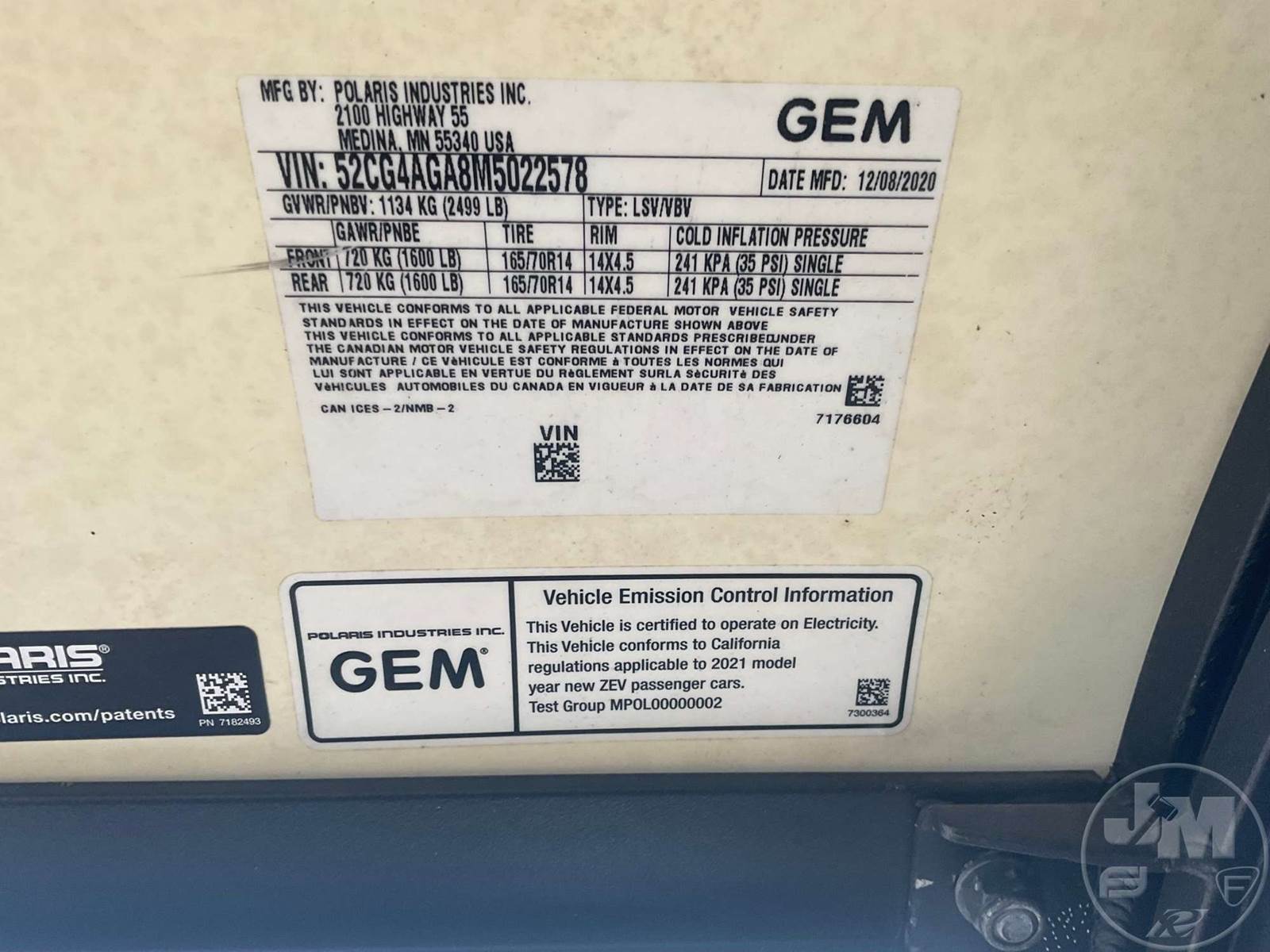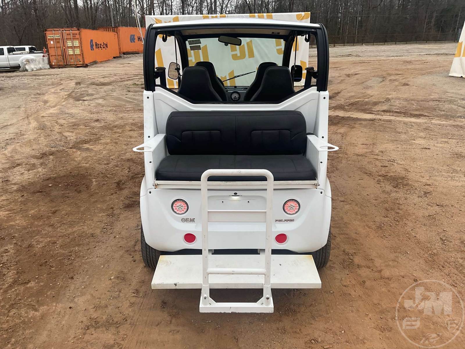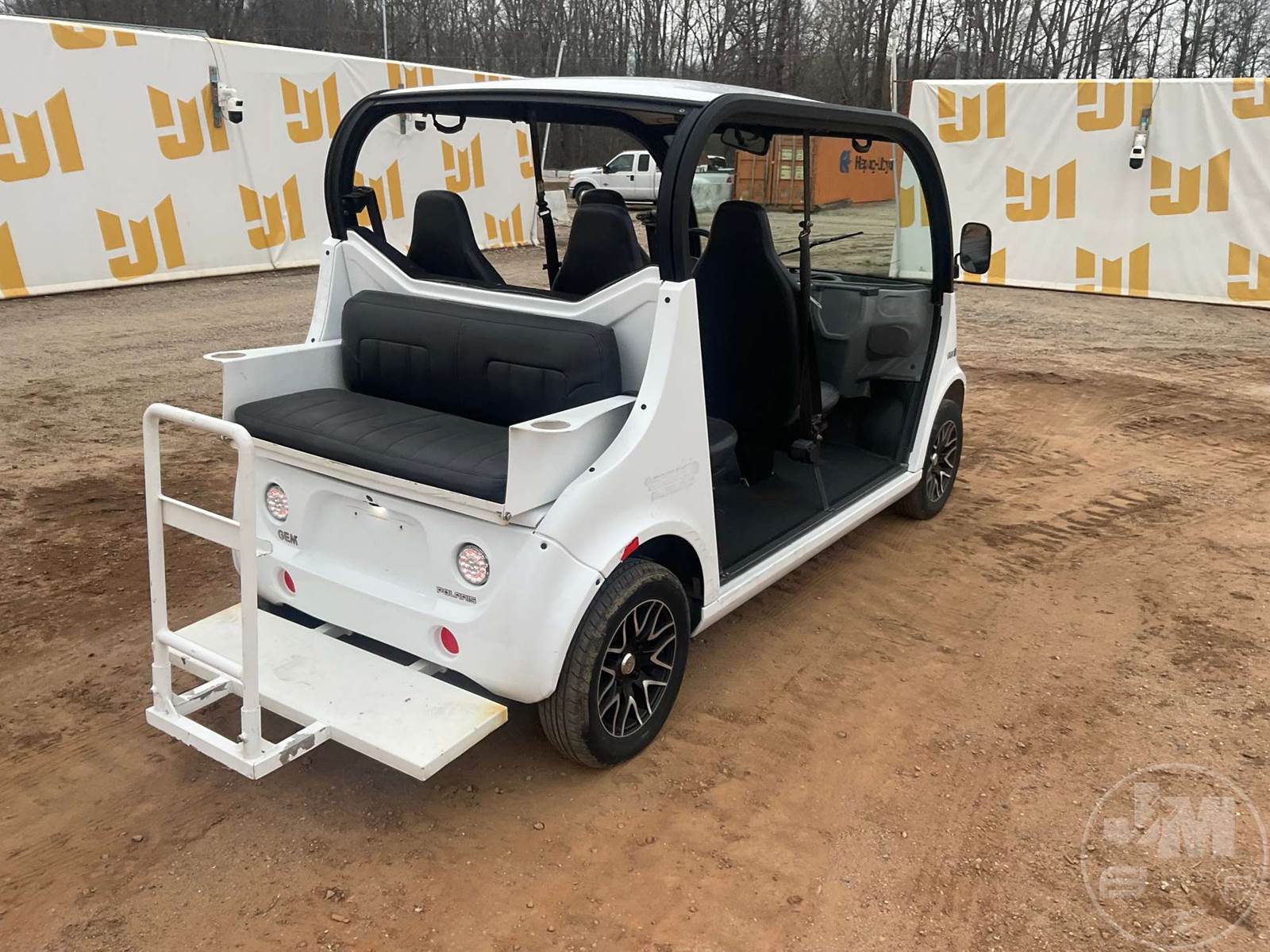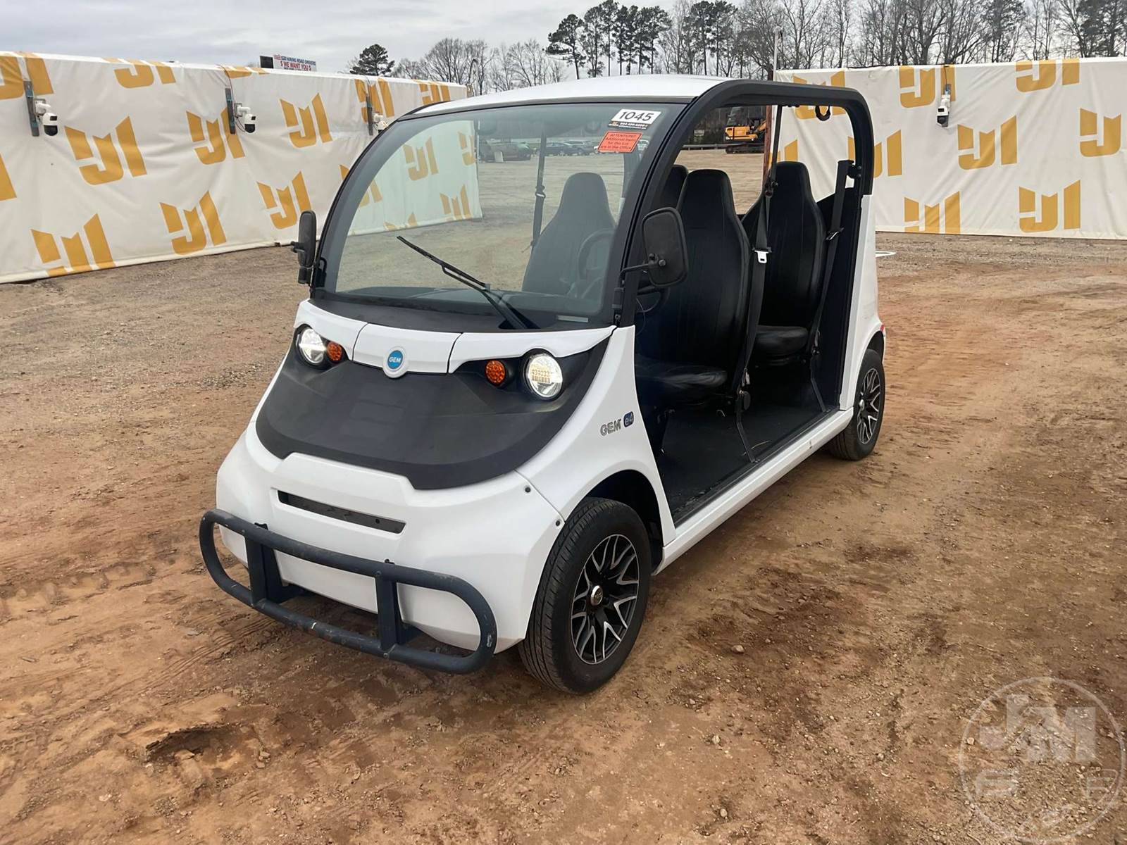 GEM GOLF CART, ELECTRIC, WHITE, 6 SEAT, CANOPY, WINDSHIELD, LIGHTS, ON BOARD CHARGER, DIRECT FWD, 48V AC INDUCTION MOTOR WITH 6.7HP, DELIVERING A TOP SPEED OF 25 MPH, POWER IS SUPPLIED BY A BANK OF EIGHT 6V, 224AH MAINTENANCE-FREE BATTERIES, ALL-ALUMINUM CHASSIS AND SUPERSTRUCTURE, SAFETY FEATURES INCLUDE A CERTIFIED OCCUPANT PROTECTION SYSTEM, 3-POINT SEAT BELTS, & AN AUTOMOTIVE GLASS WS, ***CHARGER LOCATED AT CHECKOUT***