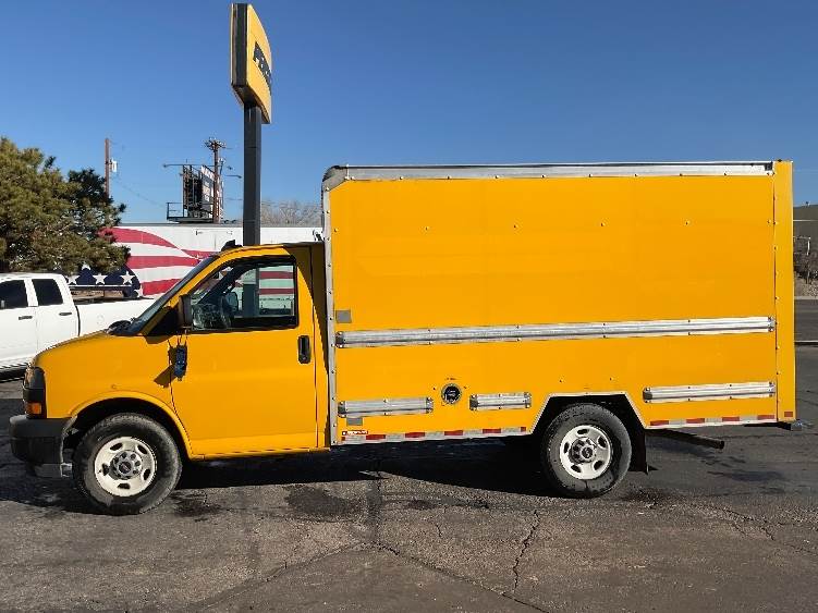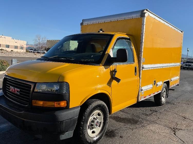 Used 2021 GMC G33503 Box Truck for sale, 107,986 miles, 276HP 4.3LV6 GMC engine, 8-speed automatic transmission, single rear axle, 33-gallon...