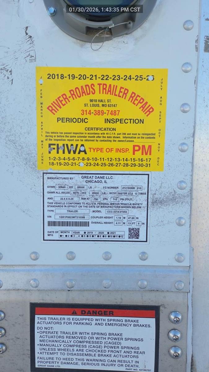 53' Plate, High Base Rail, Air Ride, 48" Logistics, Swing Doors, Alum. Roof, Stainless Steel Rear Frame, Galvanized Steel ICC Bumper & LP22.5 Tires on Steel Wheels.