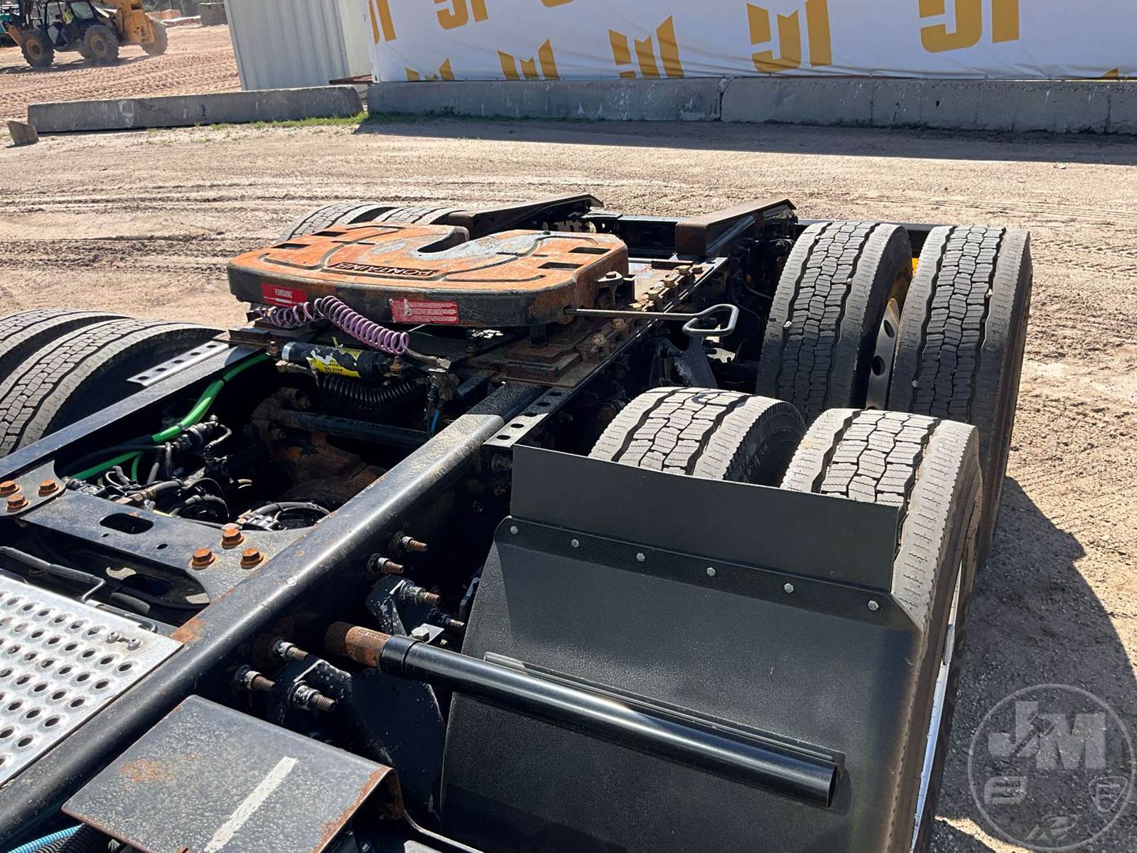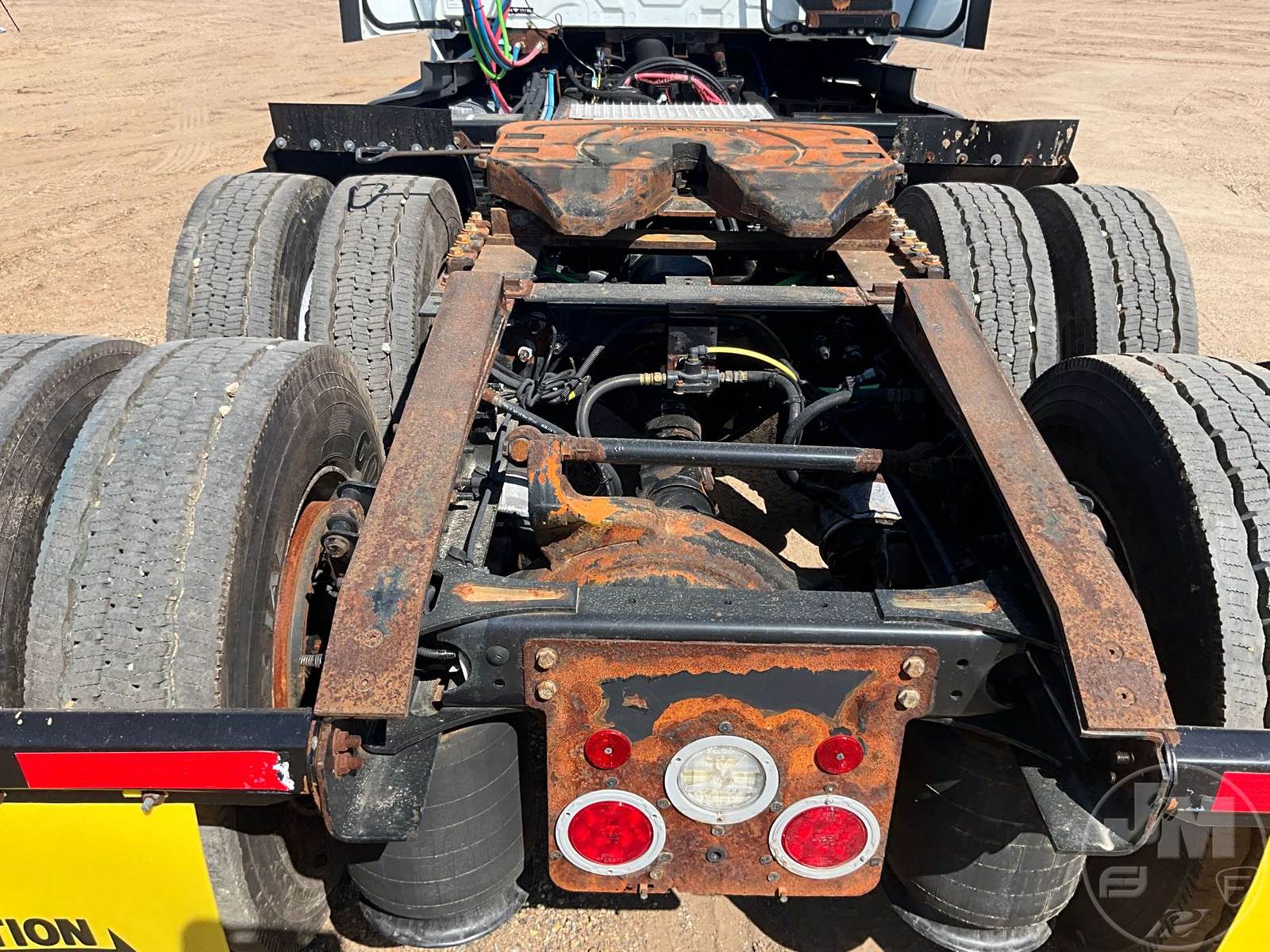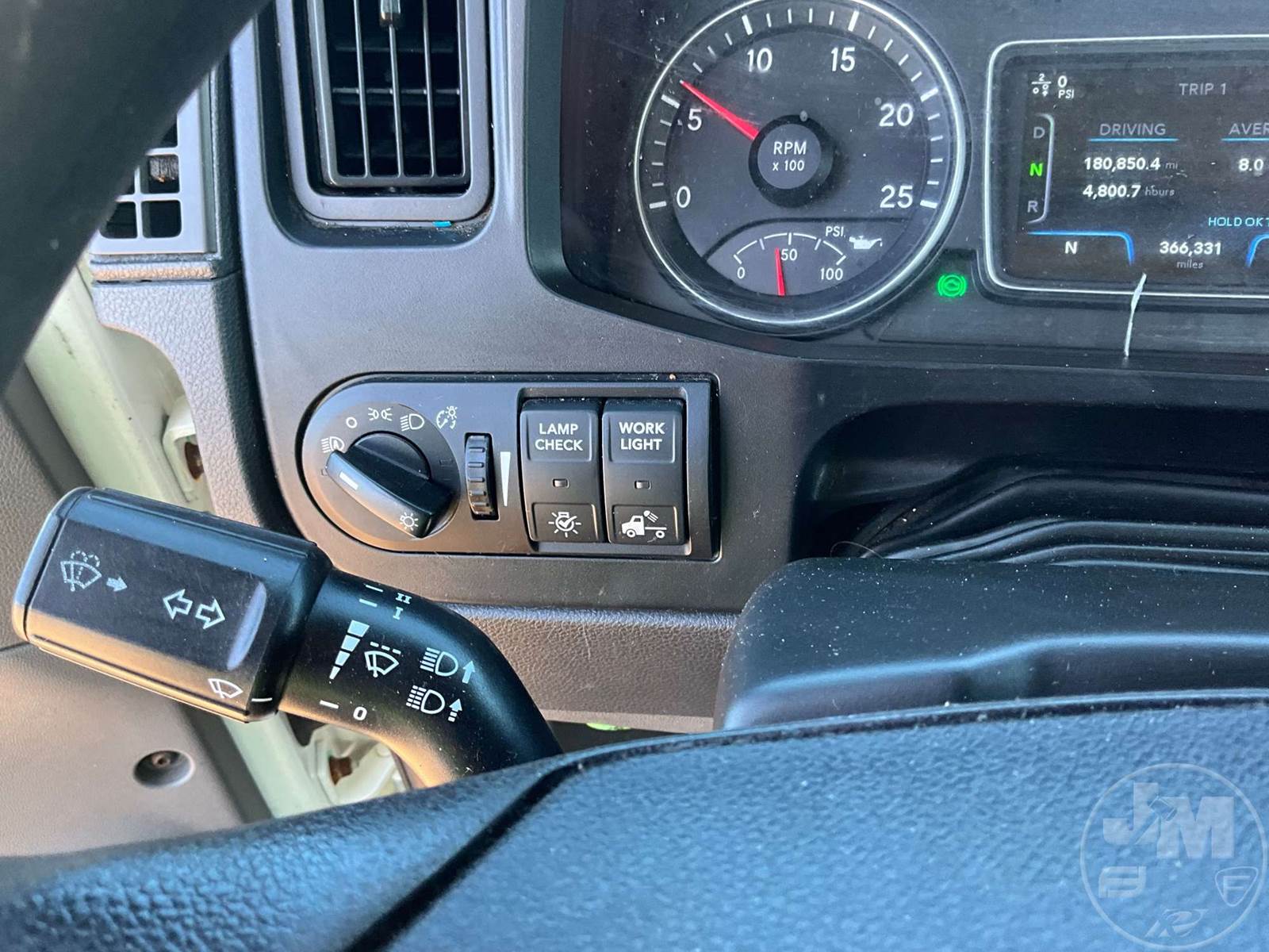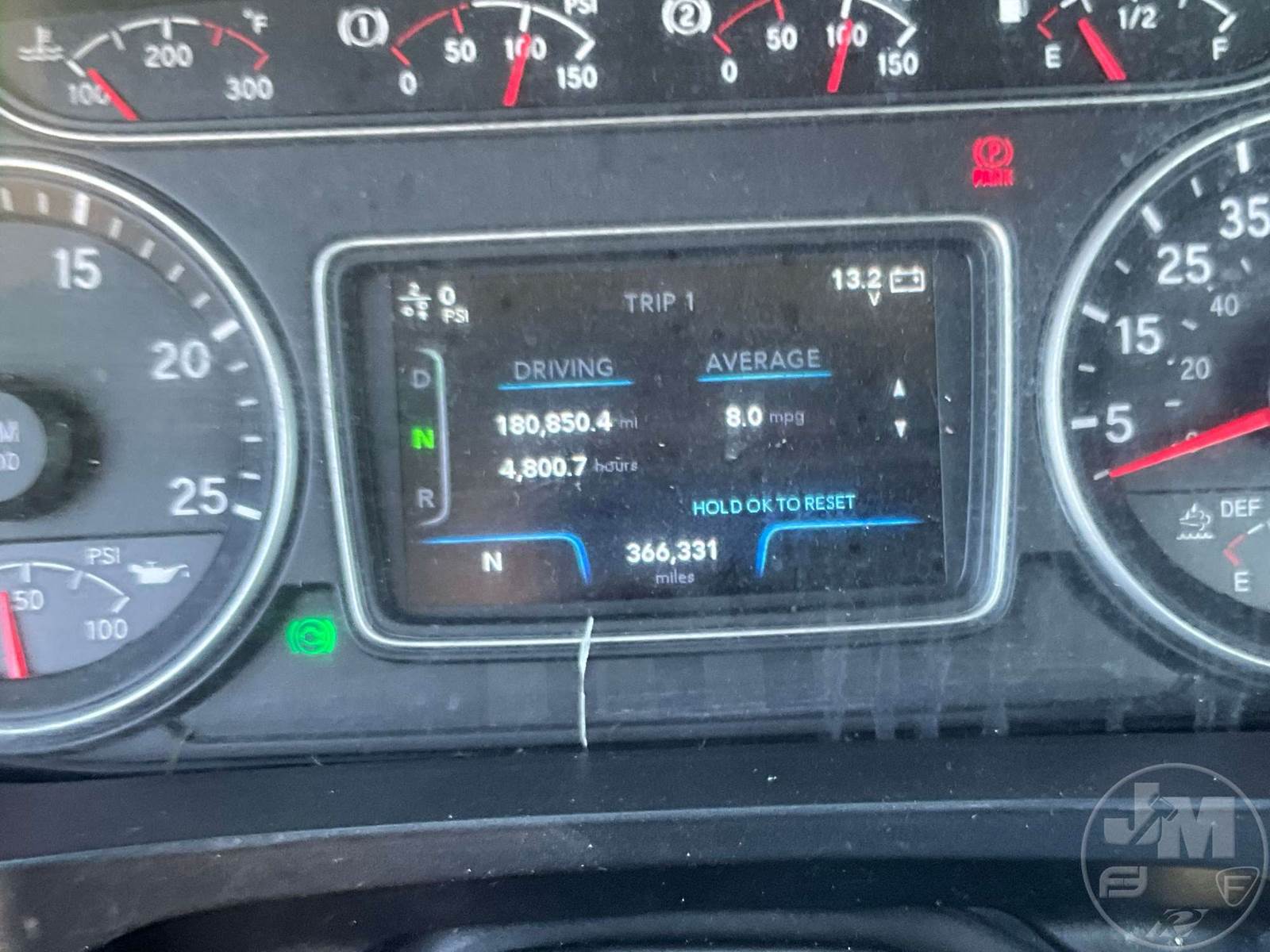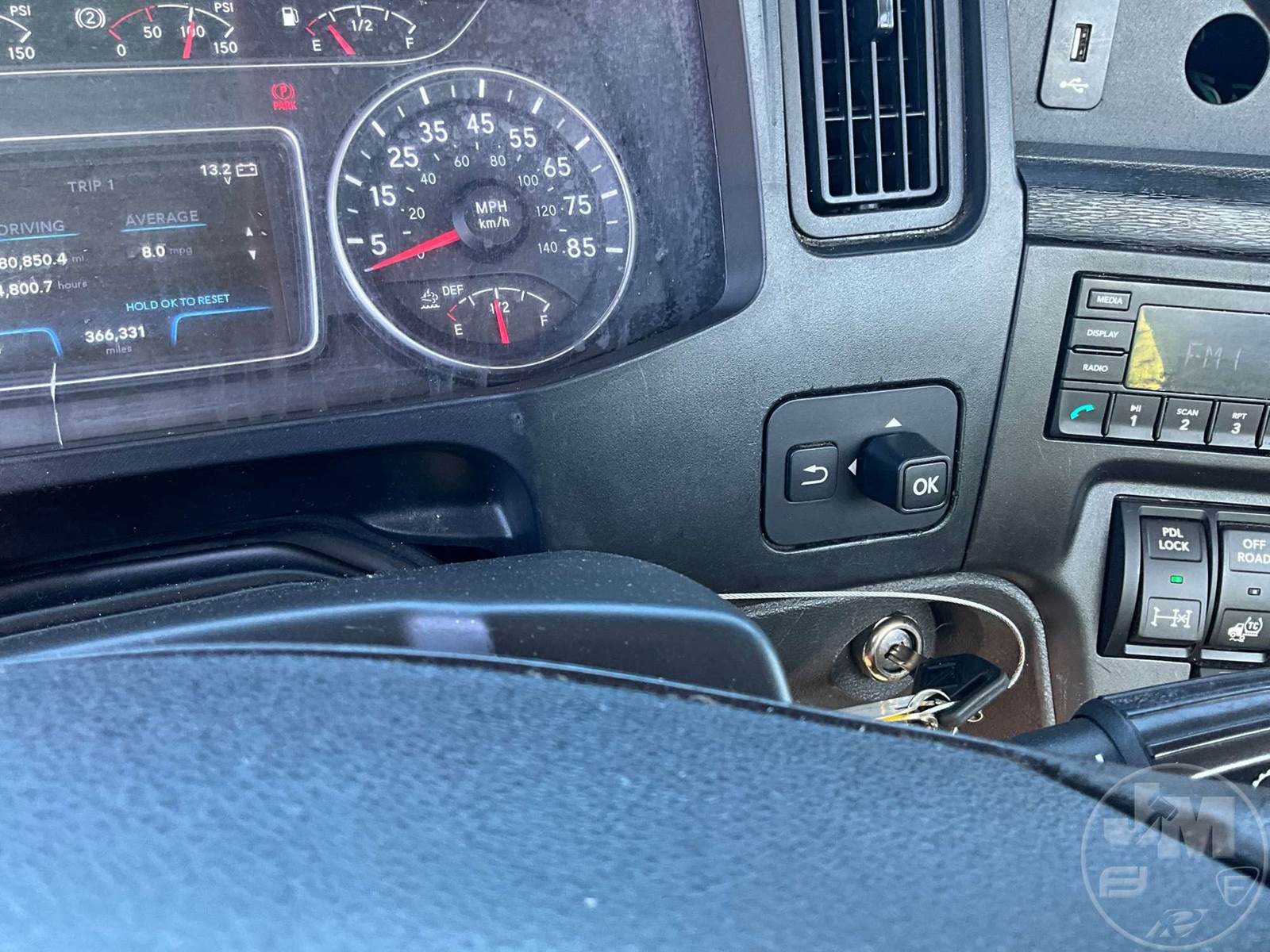 TANDEM AXLE DAY CAB TRUCK TRACTOR, CUMMINS, ISX-15, EATON FULLER, AUTOMATIC, AIR RIDE SUSPENSION, DRUM, 176 " WB, C/A: 102, 12K FRONTS, 40K REARS, AIR SLIDE FIFTH WHEEL, A/C, AIR DRIVERS SEAT, POWER WINDOWS, POWER DOOR LOCKS, POWER MIRRORS, DIFF LOCK, ALUM DISC WHEELS, ODOMETER READS: 366331