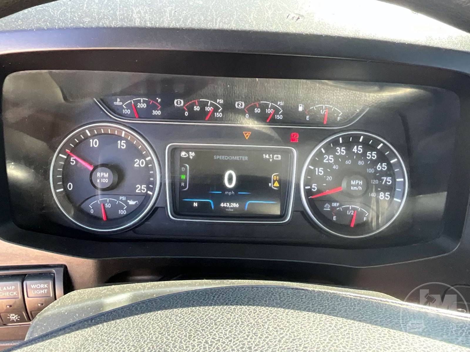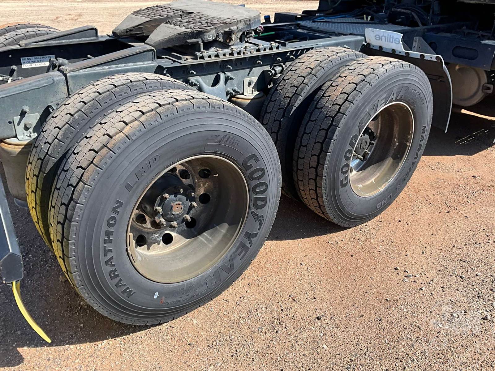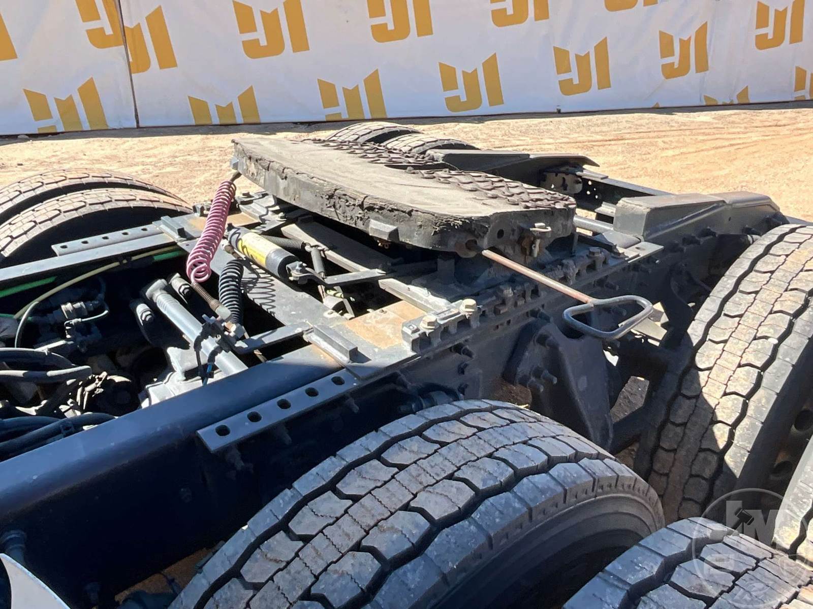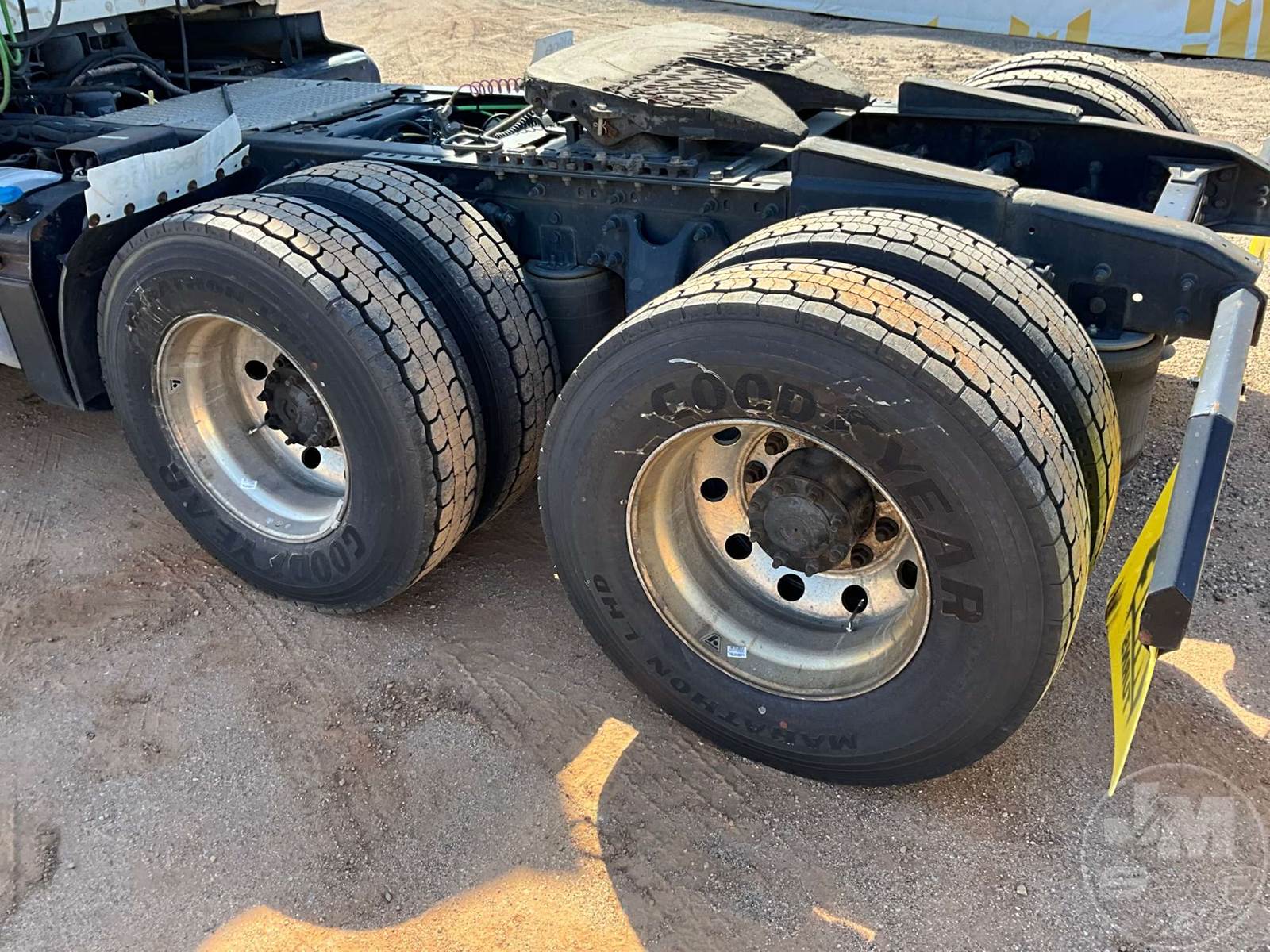 TANDEM AXLE DAY CAB TRUCK TRACTOR, CUMMINS, ISX-15, 400 HP, EATON FULLER, AUTOMATIC, AIR RIDE SUSPENSION, 175 " WB, C/A: 103", 12K FRONTS, 40K REARS, 52350LB GVWR, AIR SLIDE FIFTH WHEEL, A/C, AIR DRIVERS SEAT, CRUISE CONTROL, POWER WINDOWS, POWER DOOR LOCKS, POWER MIRRORS, ENGINE BRAKE, DIFF LOCK, AIR RIDE CAB, ALUM DISC WHEELS, 285/75R24.5 TIRES, HOUR METER READS: 13598, ODOMETER READS: 443286