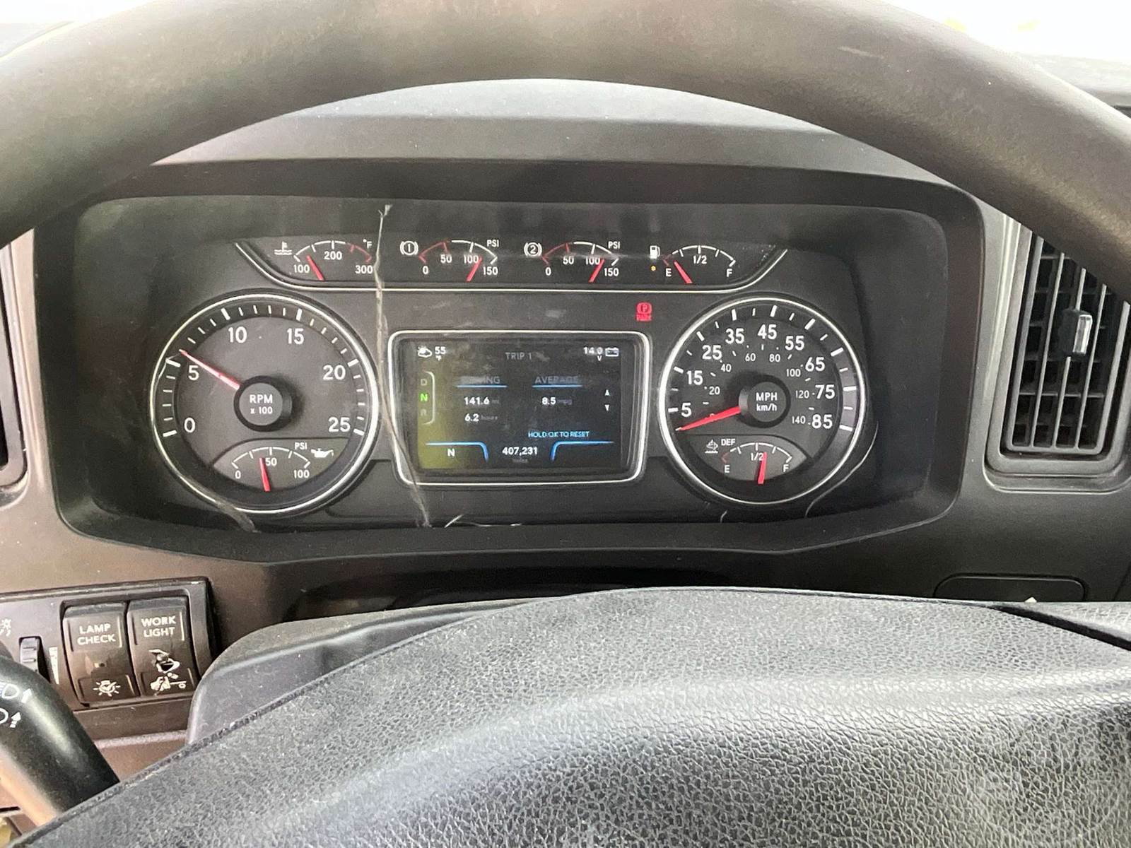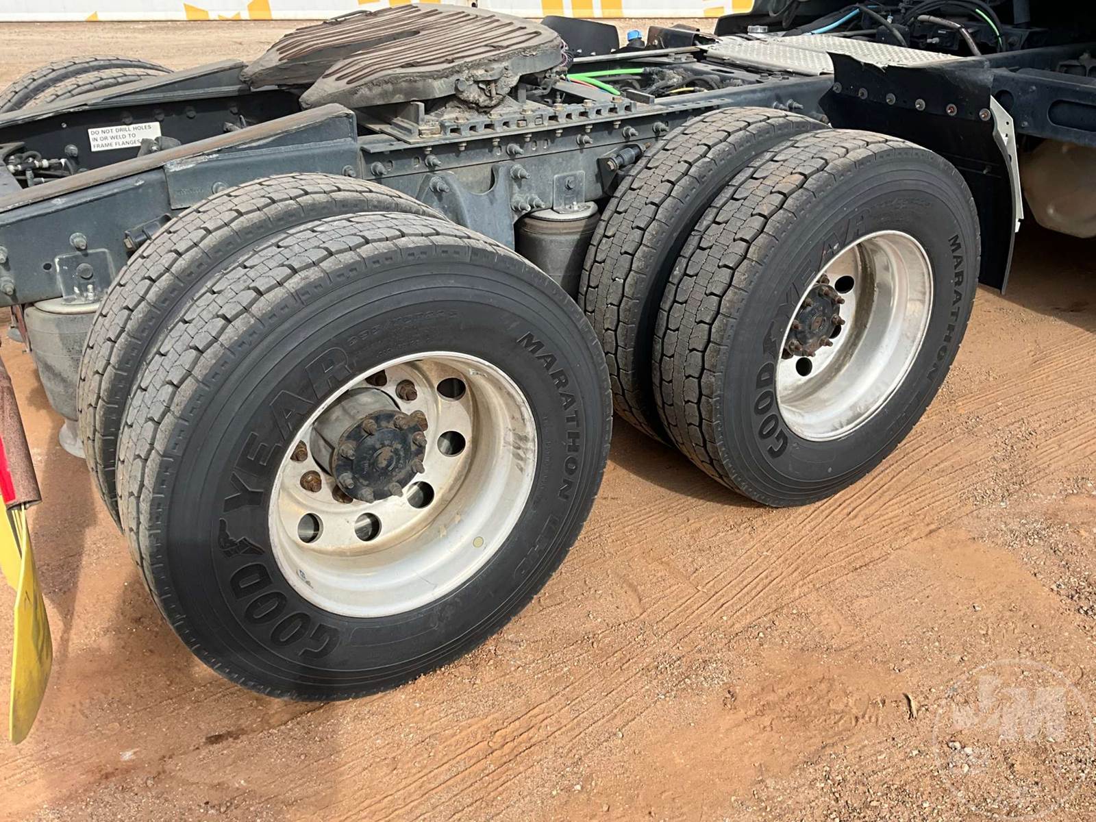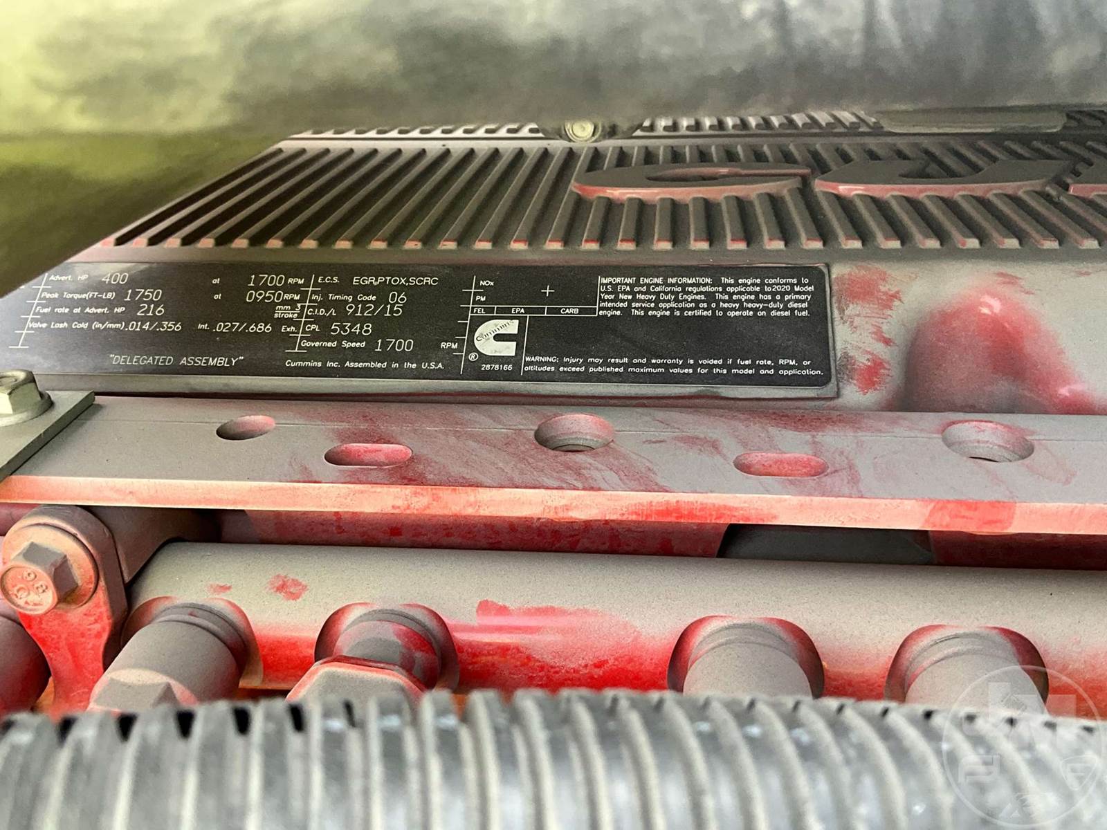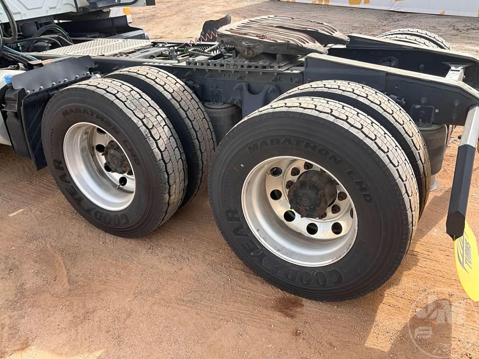 TANDEM AXLE DAY CAB TRUCK TRACTOR, CUMMINS, ISX-15, 400 HP, EATON FULLER, AUTOMATIC, AIR RIDE SUSPENSION, 175 " WB, C/A: 103", 12K FRONTS, 40K REARS, 52350LB GVWR, AIR SLIDE FIFTH WHEEL, A/C, AIR DRIVERS SEAT, CRUISE CONTROL, POWER WINDOWS, POWER DOOR LOCKS, POWER MIRRORS, ENGINE BRAKE, DIFF LOCK, AIR RIDE CAB, ALUM DISC WHEELS, 295/70R22.5 TIRES, HOUR METER READS: 12646, ODOMETER READS: 407231