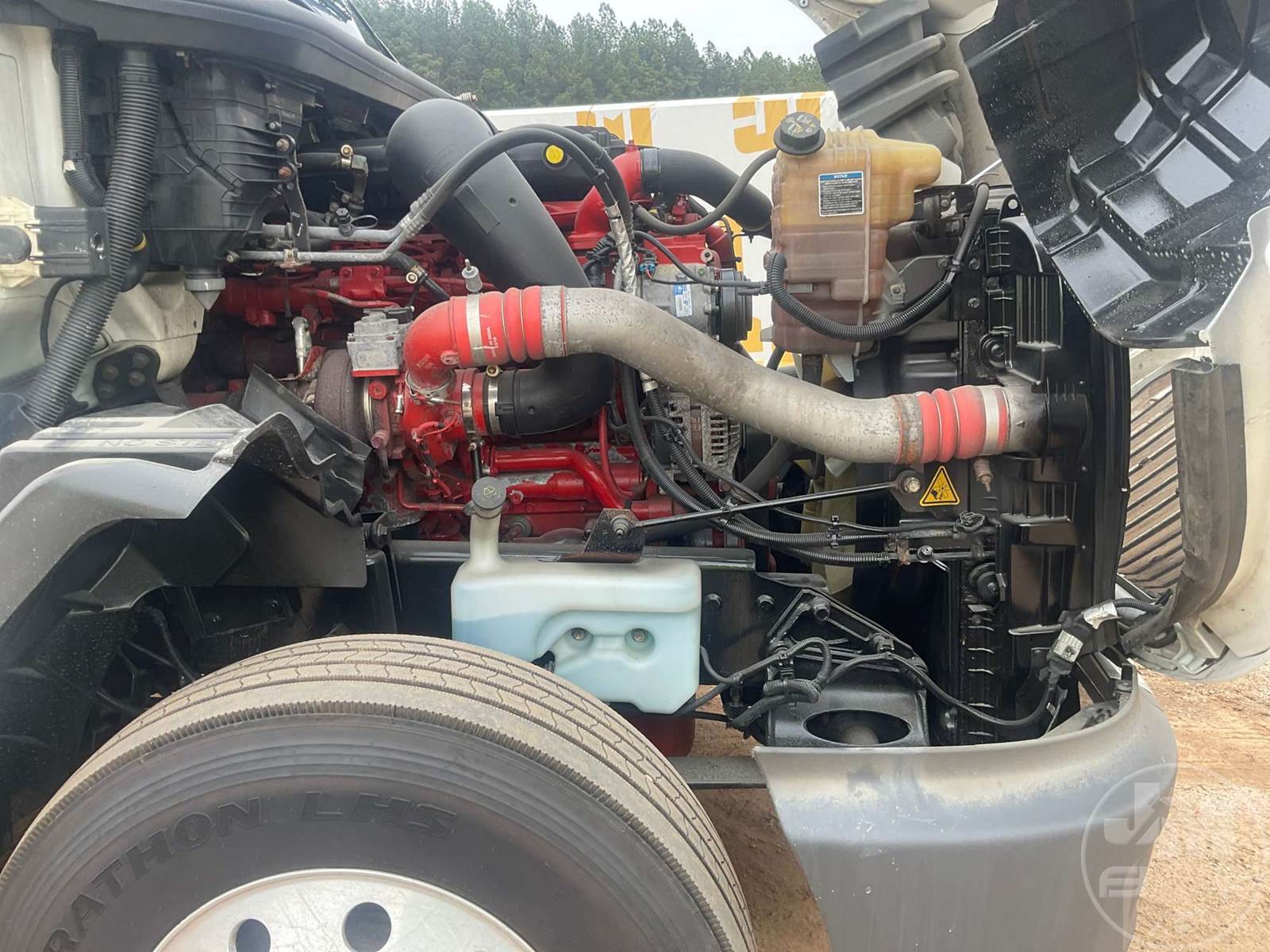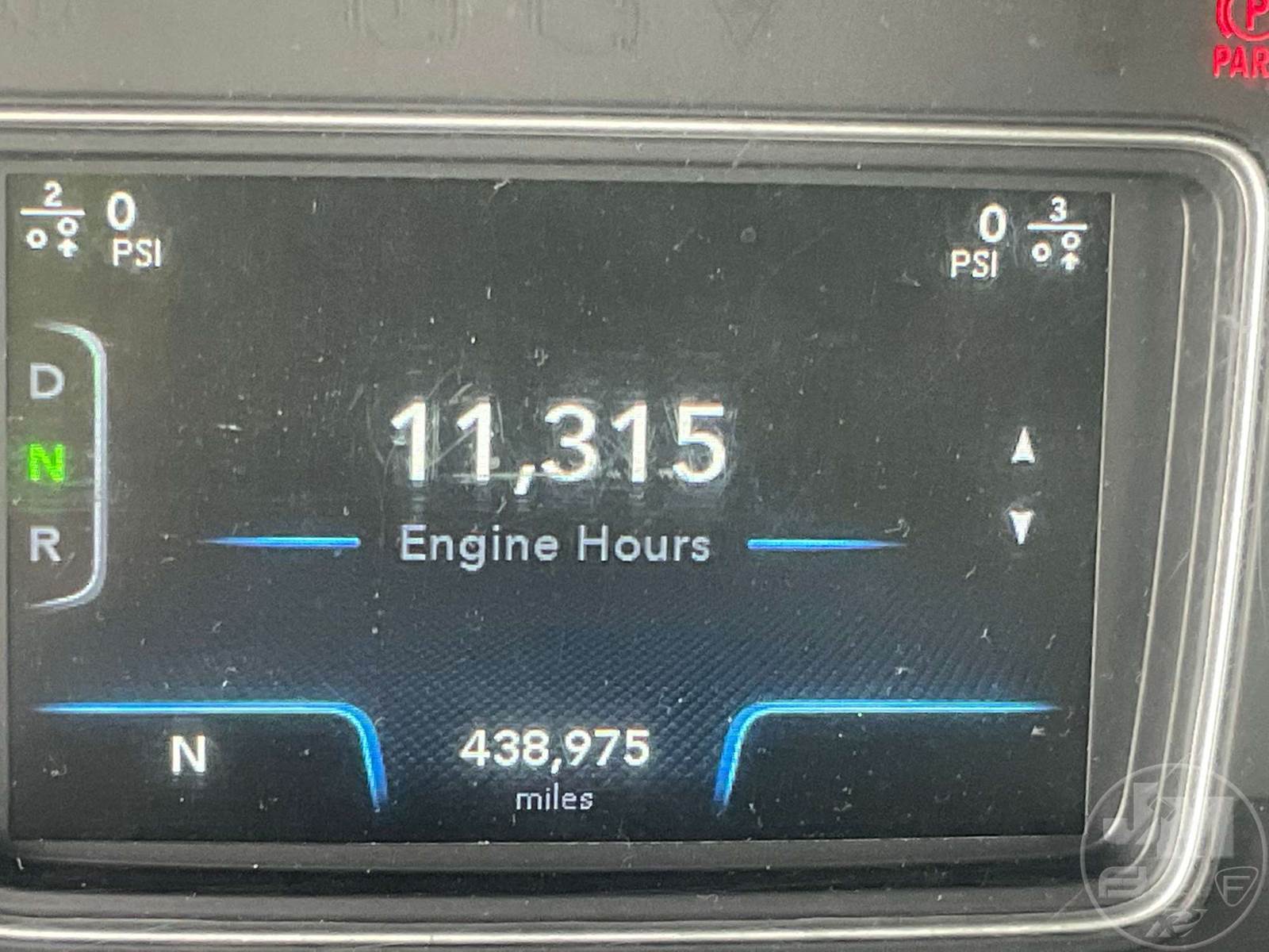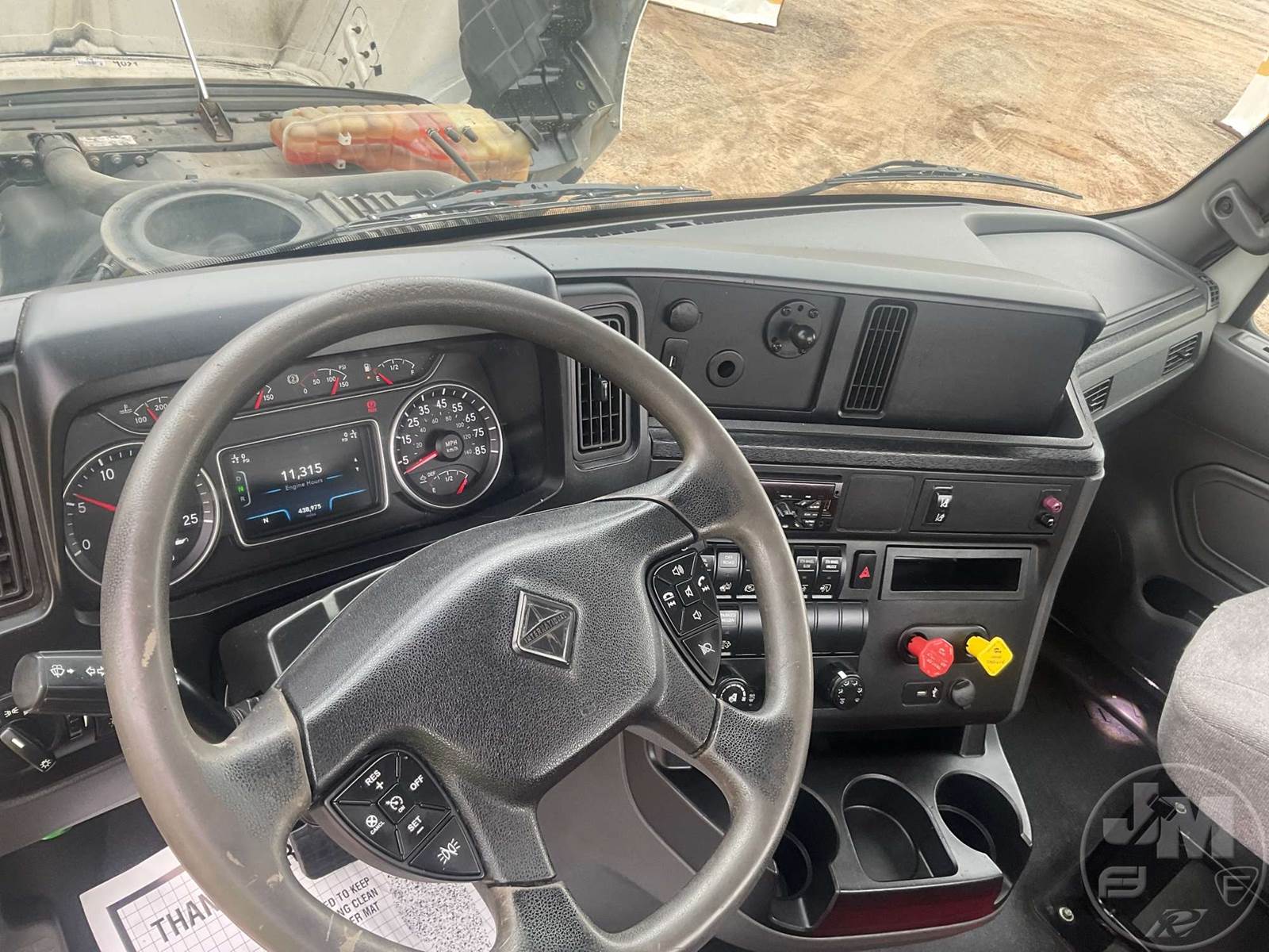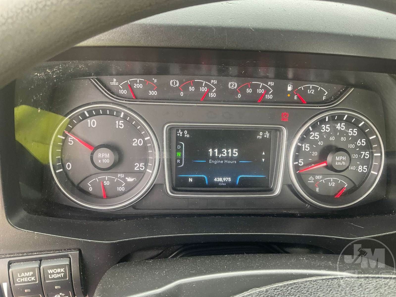 TANDEM AXLE DAY CAB TRUCK TRACTOR, CUMMINS, ISX15, 400 HP, EATON FULLER, AUTOMATIC, AIR RIDE SUSPENSION, 175 " WB, C/A: 103", 12K FRONTS, 40K REARS, 52350LBS GVWR, AIR SLIDE FIFTH WHEEL, AIR DRIVERS SEAT, CRUISE CONTROL, POWER WINDOWS, POWER DOOR LOCKS, POWER MIRRORS, ENGINE BRAKE, DIFF LOCK, AIR RIDE CAB, ALUM DISC WHEELS, 295/75R22.5 TIRES, 12 SPEED TRANSMISSION, ALL ALUMINUM WHEELS, COLLISION MITIGATION SYSTEM, HOUR METER READS: 11314, ODOMETER READS: 438975