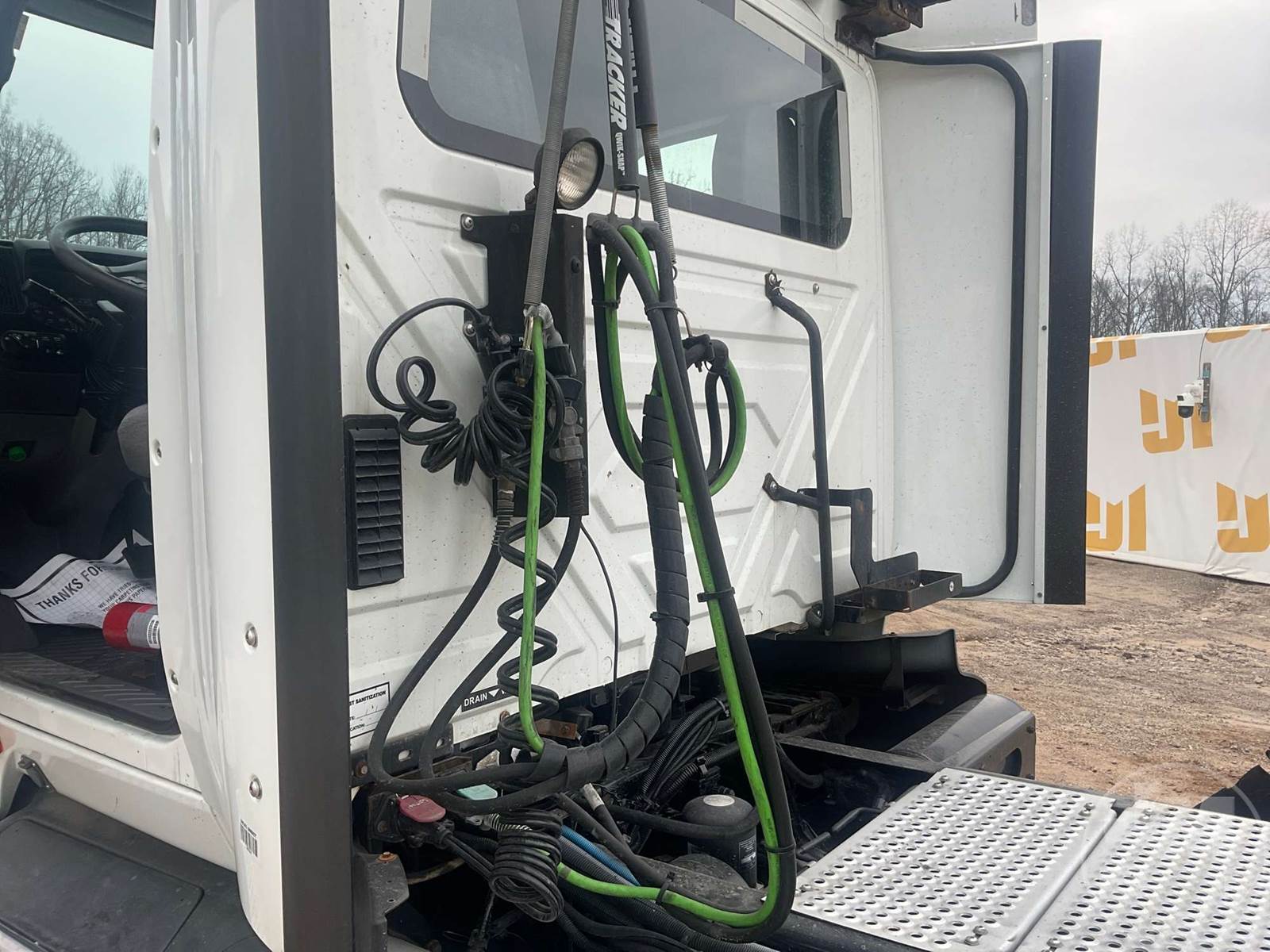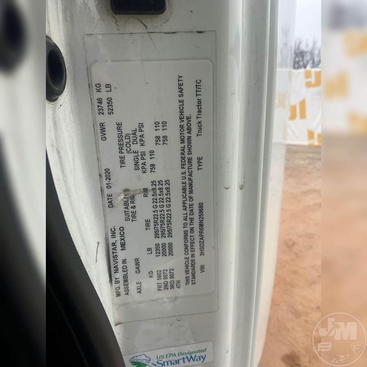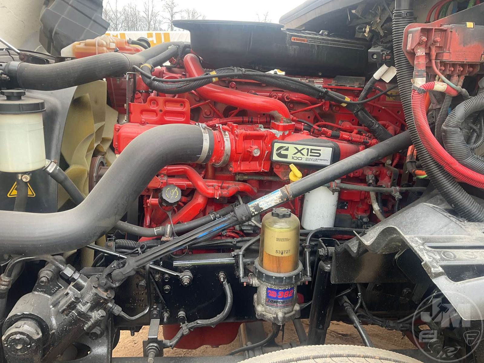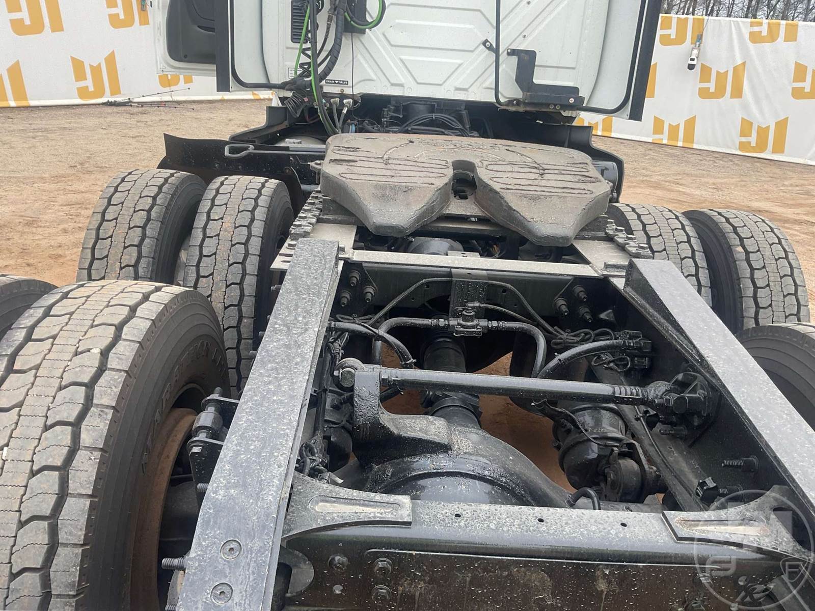 TANDEM AXLE DAY CAB TRUCK TRACTOR, CUMMINS, ISX15, 400 HP, EATON FULLER, AUTOMATIC, AIR RIDE SUSPENSION, 175 " WB, C/A: 103", 12K FRONTS, 40K REARS, 52350LBS GVWR, AIR SLIDE FIFTH WHEEL, AIR DRIVERS SEAT, CRUISE CONTROL, POWER WINDOWS, POWER DOOR LOCKS, POWER MIRRORS, ENGINE BRAKE, DIFF LOCK, AIR RIDE CAB, ALUM DISC WHEELS, 295/75R22.5 TIRES, 12 SPEED TRANSMISSION, ALL ALUMINUM WHEELS, COLLISION MITIGATION SYSTEM, HOUR METER READS: 11314, ODOMETER READS: 438975