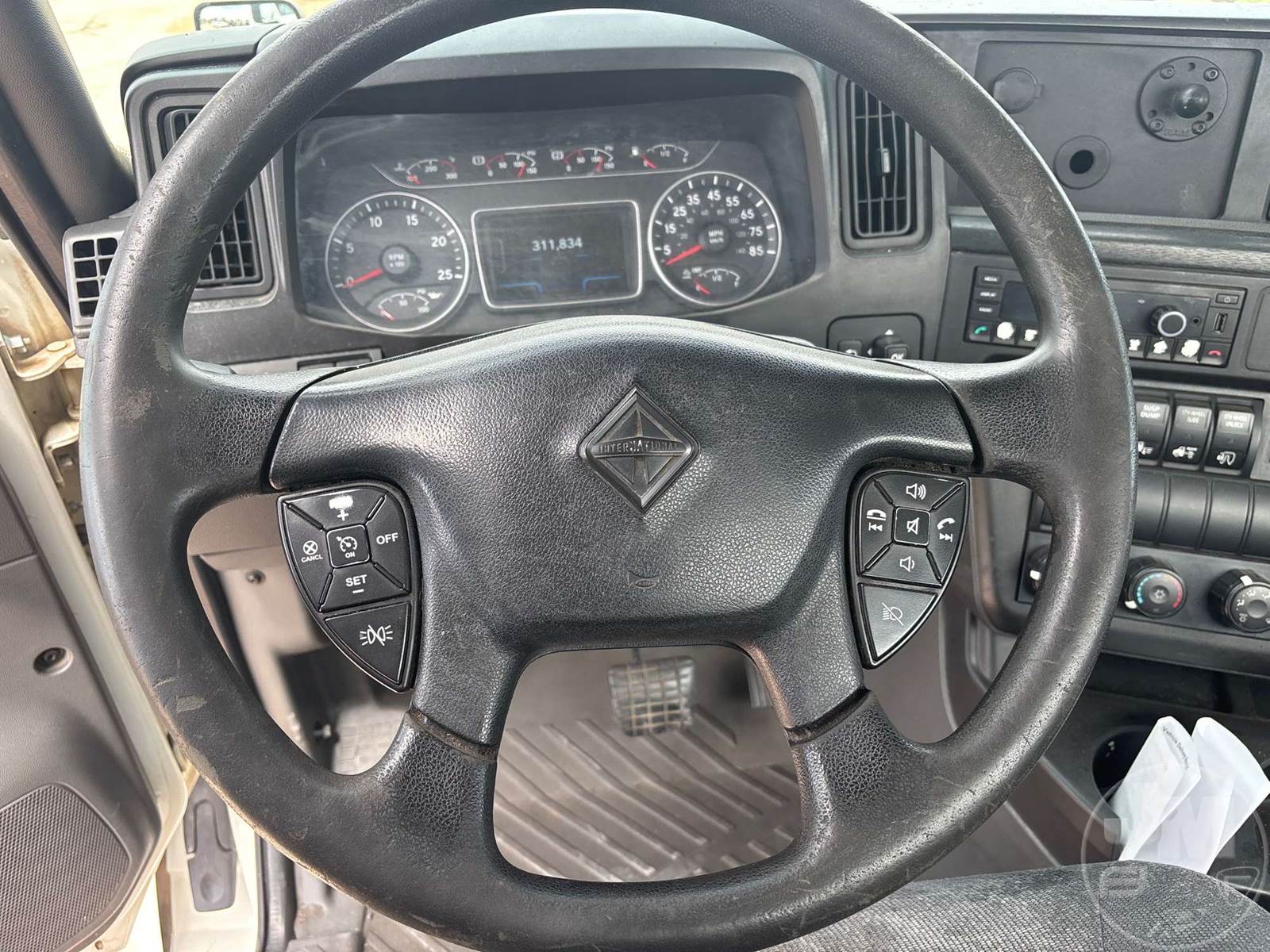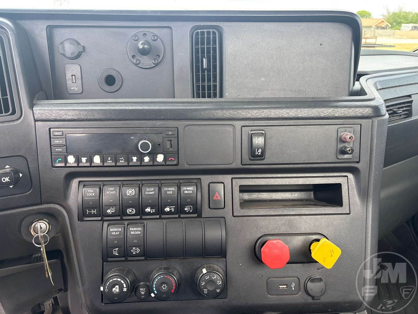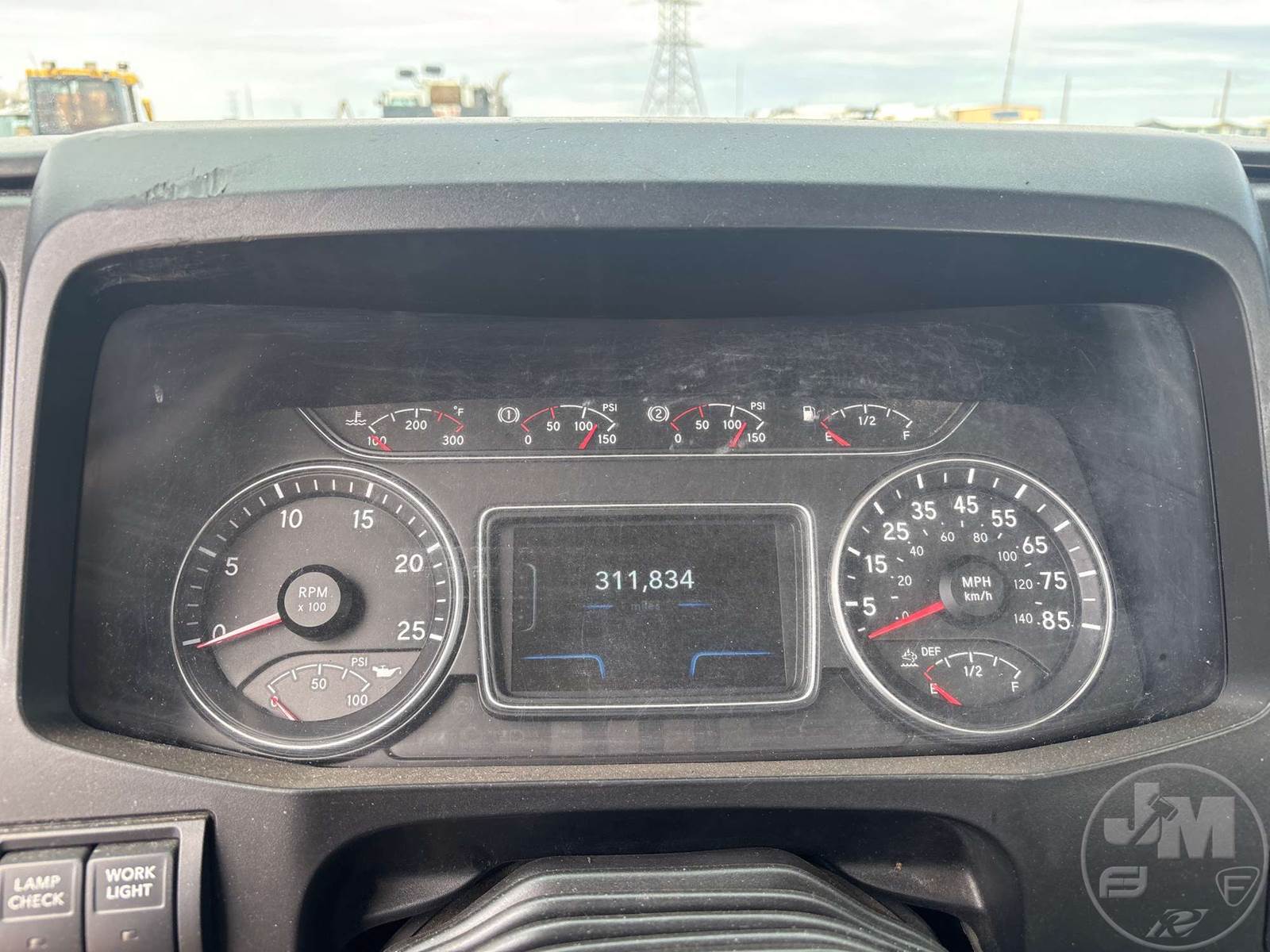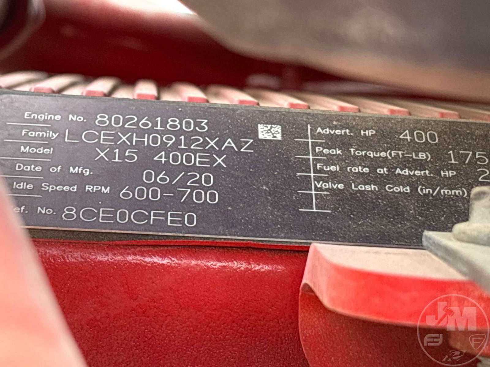 TANDEM AXLE DAY CAB TRUCK TRACTOR, CUMMINS, ISX15, EATON FULLER, AIR RIDE SUSPENSION, 175 " WB, C/A: 87 IN., 12K FRONTS, 40K REARS, 52350 LBS GVWR, AIR SLIDE FIFTH WHEEL, A/C, AIR DRIVERS SEAT, CRUISE CONTROL, POWER WINDOWS, POWER DOOR LOCKS, POWER MIRRORS, DIFF LOCK, AIR RIDE CAB, ALUM DISC WHEELS, 295/75R22.5 STEER TIRES, 295/75R22.5 TIRES, 12 SPEED, ALL ALUMINUM WHEELS, COLLISION MITIGATION SYSTEM, HOUR METER READS: 8803, ODOMETER READS: 311834