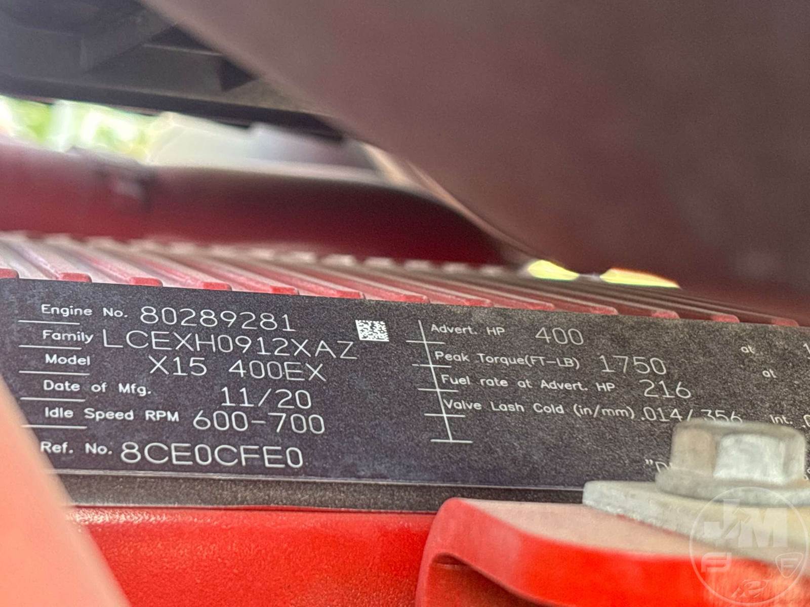 TANDEM AXLE DAY CAB TRUCK TRACTOR, CUMMINS, ISX15, EATON FULLER, AUTOMATIC, AIR RIDE SUSPENSION, COMBINATION, 175 " WB, C/A: 87 IN., 12K FRONTS, 40K REARS, 52350 LBS GVWR, AIR SLIDE FIFTH WHEEL, A/C, AIR DRIVERS SEAT, CRUISE CONTROL, POWER WINDOWS, POWER DOOR LOCKS, POWER MIRRORS, DIFF LOCK, AIR RIDE CAB, ALUM DISC WHEELS, 295/75R22.5 STEER TIRES, 295/75R22.5 TIRES, 12 SPEED TRANSMISSION, ALL ALUMINUM WHEELS, COLLISION MITIGATION SYSTEMÂ , HOUR METER READS: 9914, ODOMETER READS: 430133