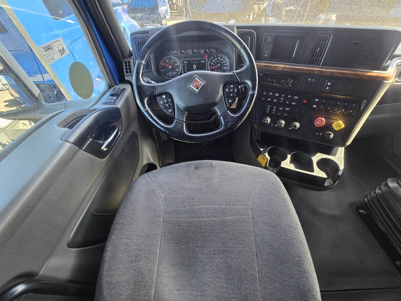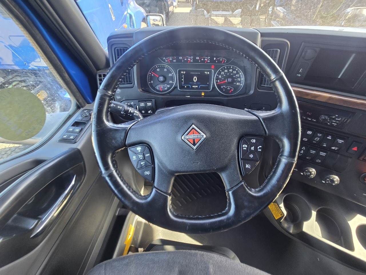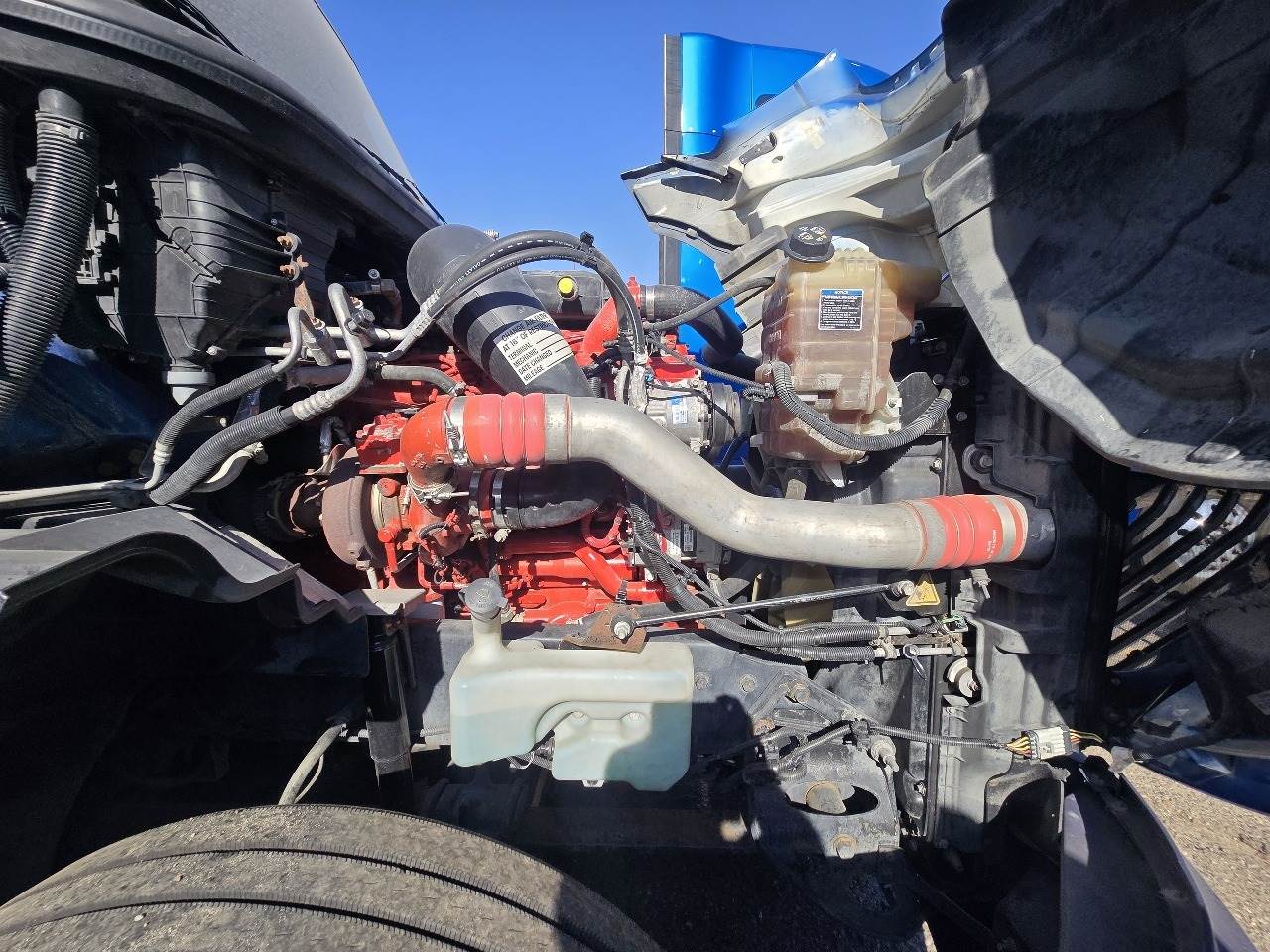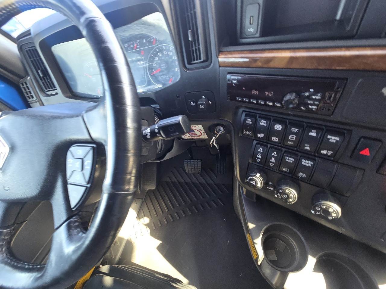Phoenix, AZ - 2021 International LT625 with 425,532 miles. Powered by a Cummins X15 14.9L engine rated at 400 HP, paired with an Eaton 12-speed automatic transmission. Equipped with engine brake, power steering, cruise control, overdrive, and dual 100-gallon aluminum fuel tanks. Features include Meritor 2.64 rear end, tandem axles rated F 12,350 lb / R 40,000 lb, steel frame, air ride suspension, GVWR 52,350 lbs, and a 226" wheelbase. Tires are 295/75R22.5 on aluminum wheels with an air slide fifth wheel. The truck has a 73" sleeper with dual bunks, dual high-back seats, an air ride passenger seat, gray interior, air conditioning, AM/FM Bluetooth radio, and dual power mirrors. Exterior is blue with heated mirrors, full fairings, and collision avoidance system.