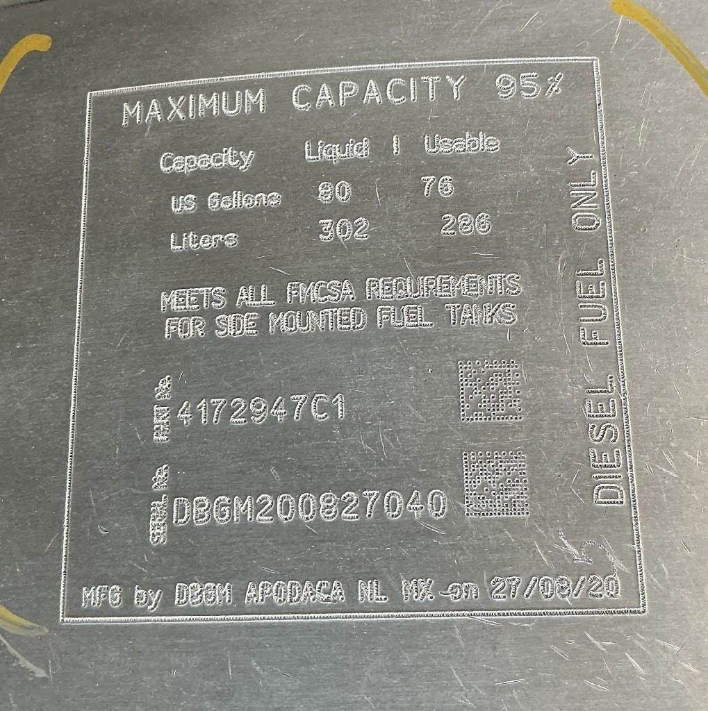 2021 International RH613 Passenger Side Fuel Tank, 37"x 26", 80 Gallon Capacity, w/ Straps & Brackets. P/N 4172947C1