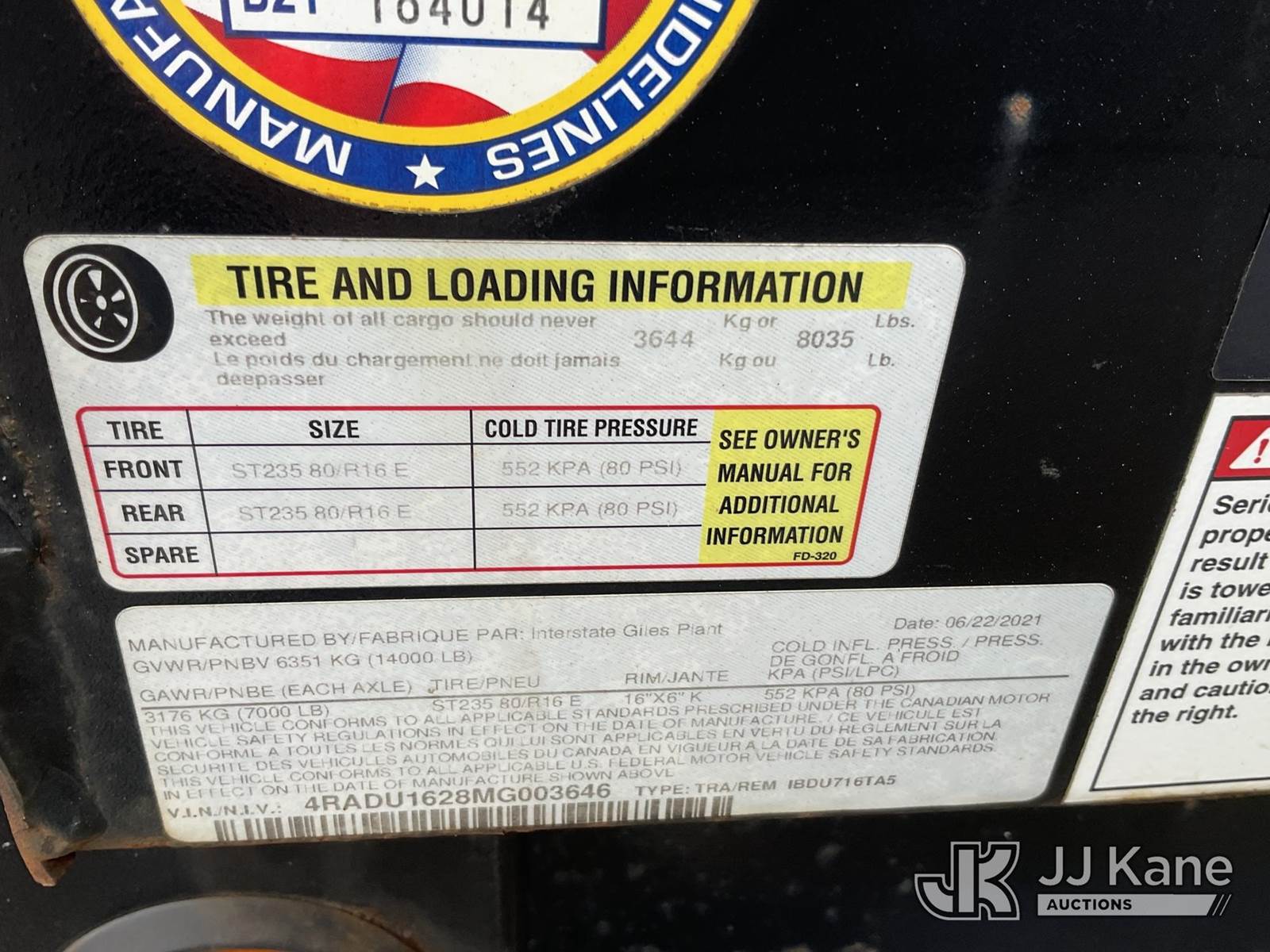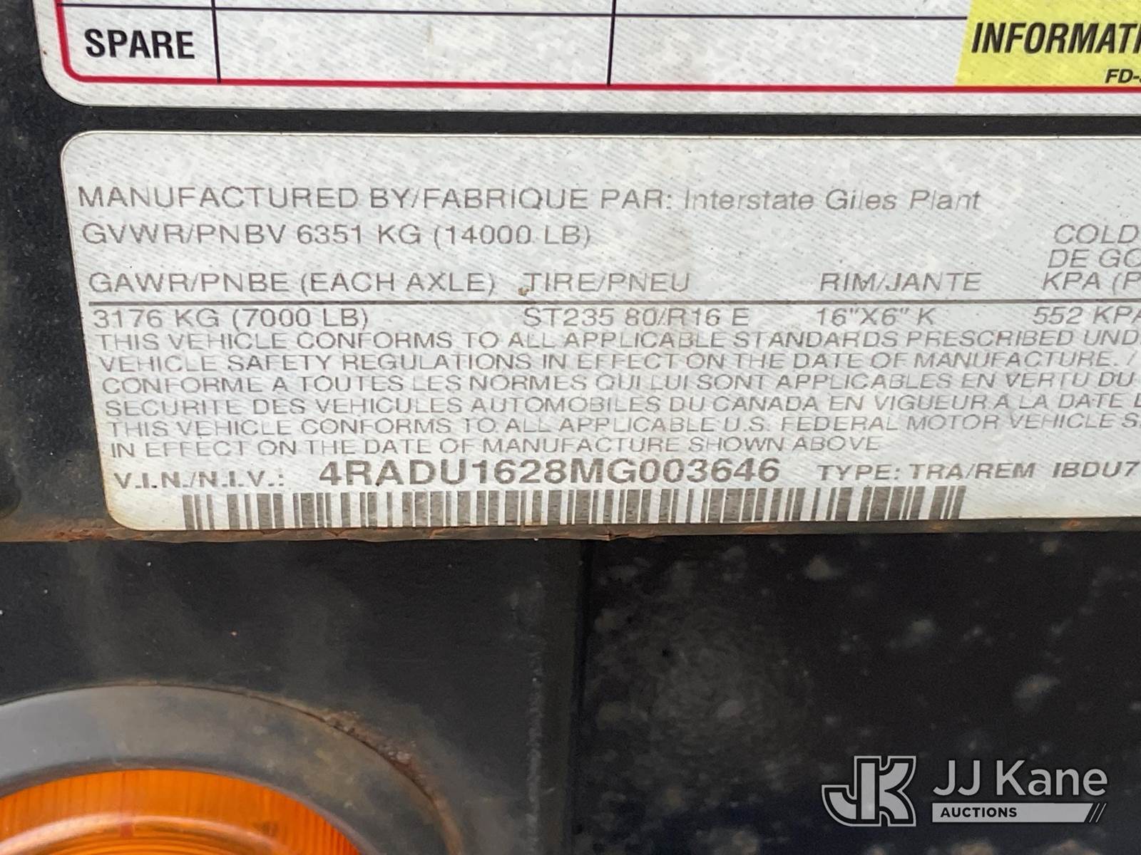 2021 Interstate T/A Dump Trailer, with ramps, (Operates) (Bad Jack) This is a Titled Item NOTE: This unit is being sold AS IS/WHERE IS via Timed Auction and is located in Verona, KY. Inspection & preview days for this unit are the 2 business days prior to the first day of items closing for this auction, item is located at 2841 Verona-Mudlick Rd Ste B Verona, KY 41092 and hours of operations are 8a-4p. For pre-sale questions, please contact Office Staff @ (502) 612-5080. Auctioneer Michael Whitebread / License # 256617. (Buyer is responsible for removal. Assistance by consignor or JJ Kane Auctions is not assured.)