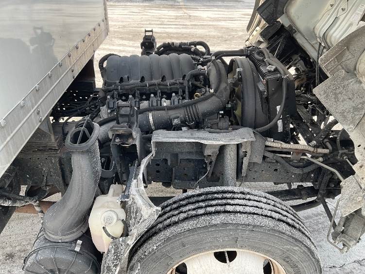 Used 2023 Isuzu NPR EFI box truck for sale, 140,941 miles, 350HP GMC 6.6L V8 gasoline engine, 6-speed automatic transmission, roll-up door,...