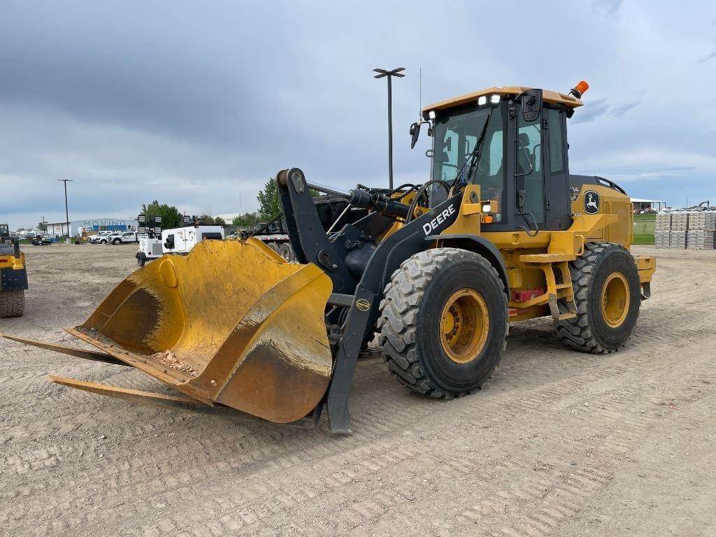 JD POWERTECH ENGINE | STANDARD WHEEL LOADER | 5 SP TRANSMISSION W/ LOCK UP | 140 AMP ALTERNATOR | FLAT BLACK CURVED STACK | AIR INTAKE WITH PRECLEANER | AUTOMATIC REVERSING HYD FAN | FUEL TANK W STD FILTER | JDLINK ULT 5 YEAR SERVICE | PREMIUM CAB | 7 INCH DISPLAY MONITOR | HYDRAU XR HYDRAULIC FLUID | STANDARD Z-BAR | STEERING WHEEL ONLY | PREMIUM SEAT | JOYSTICK CONTROLS | THREE FUNCTION HYDRAULICS | RIDE CONTROL | ENGLISH DECALS & MANUALS | 15 AMP CONVERTER | NO PAYLOAD SCALE NO COUNTER | AXLE,W/ HYD FRONT & REAR | AUTOMATIC DIFFERENTIAL LOCK | 20.5R25 L3 1STAR MI-3PC RADI | STANDARD FRONT FENDERS | LEFT SIDE STEPS ONLY | NO FORK FRAME | NO TINES | PREMIUM LED LIGHT PACKAGE | REAR HITCH & COUNTERWEIGHT | REAR CAMERA ONLY | LEFT BEACON BRACKET ONLY | EXTERIOR MIRRORS-HEAT&POWER | RADIO - PREMIUM | AC CHARGE | PIN-ON ATTCH READY PINS ONLY | NO BUCKET EDGE OR TEETH | NO BUCKET | ENGINE BLOCK HEATER | ENVIRONTMENTAL DRAIN & PORTS | AXLE OIL COOLER AND FILTER | ENGINE COMPARTMENT LIGHT | GUARDS-TRANSMISSION & BOTTOM | DISCOUNT | MKT DEV FUND