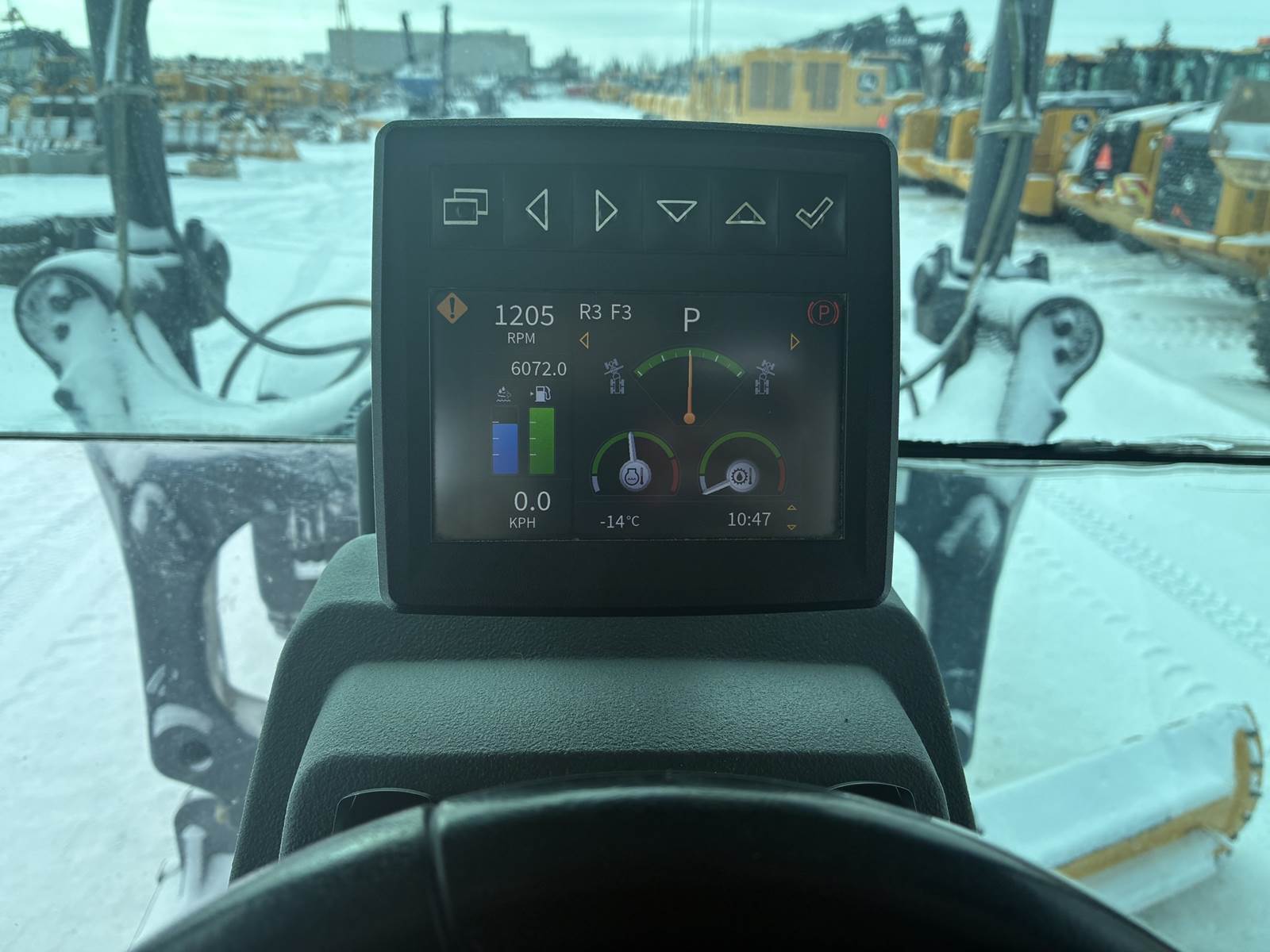 6100 Hours, Cab w/ AC, EH Joystick Controls; 4.27 m (14 ft.) Blade, Blade Extension; 17.50 Tires; All Wheel Drive; Ripper, Snow Wing