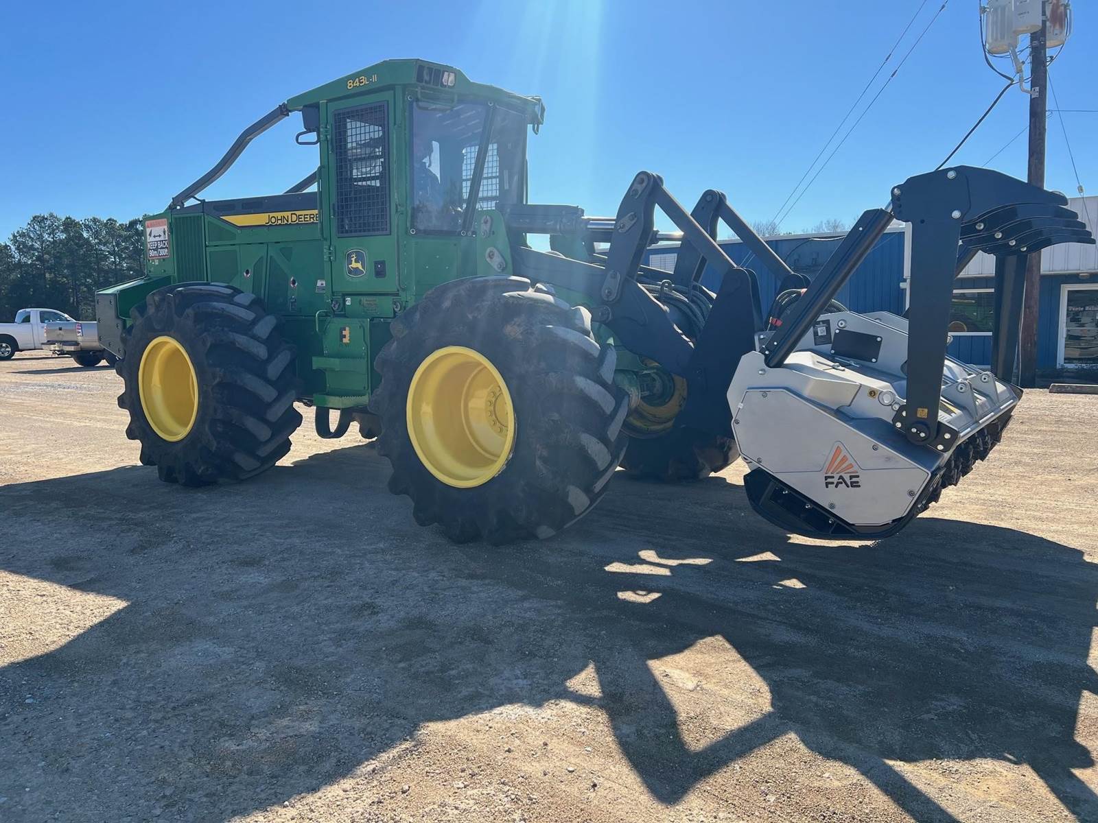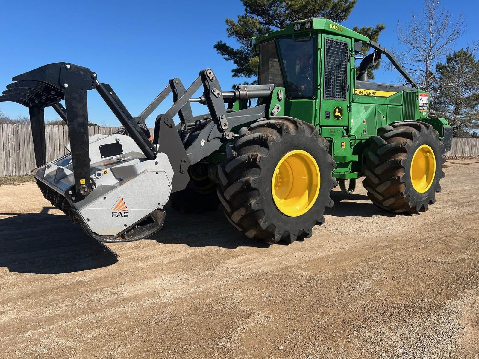 2021 John Deere 843L-II Mulcher - Equipped with custom high flow pump system for mulching head (60 GPM pump), New FAE 200/U-225 mulching head, 30.5 x 32 tires, Cab with air, 6.8L engine (270 HP). $269,000