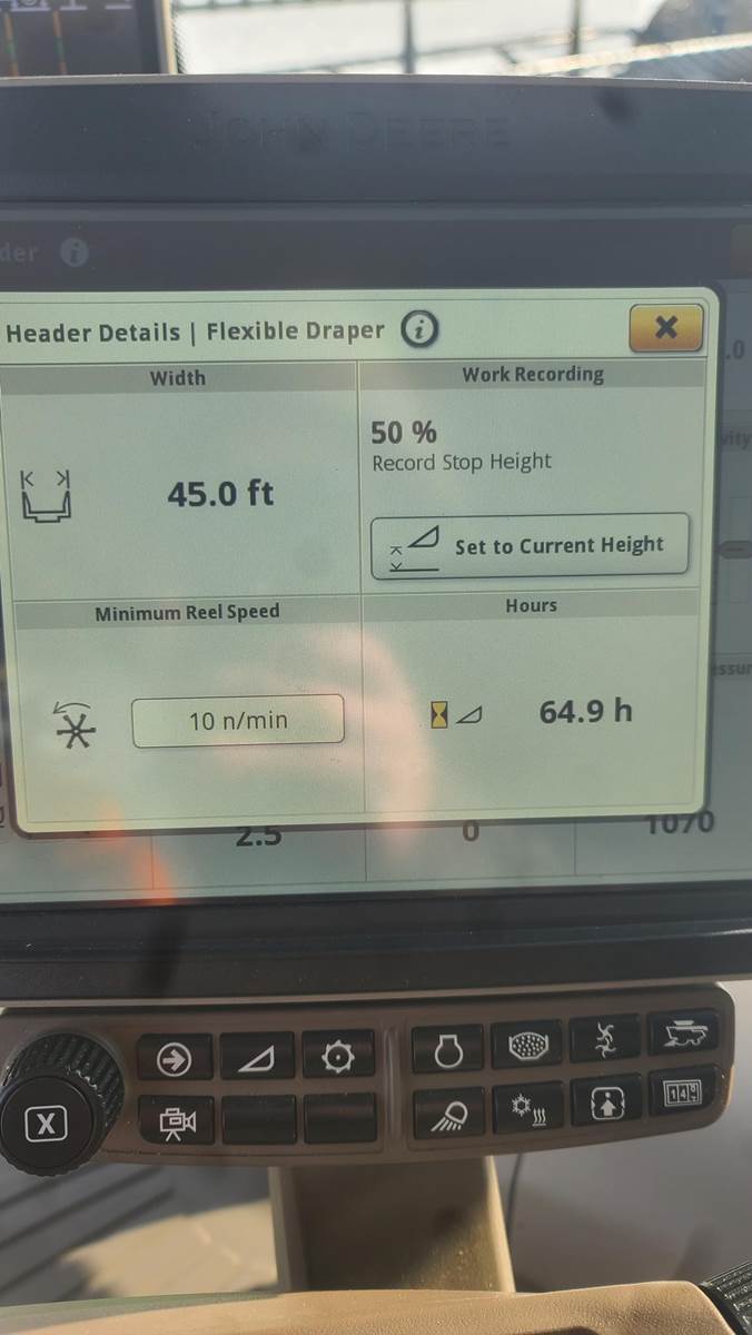 2021 John Deere RD45F Hydraflex Draper Head, 45 Ft working width, single point hookup, 45 hours on head, SN#1H0RD45FHM0815276