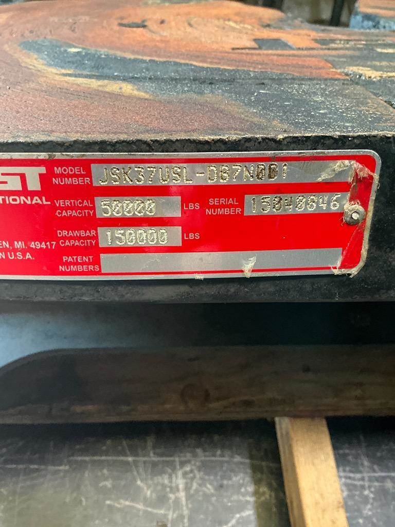 Jost JSK37USL Stationary Fifth Wheel, 34" Frame Width, 57" Rail Length, 6.5" Deck Height, Driver Side Release. P/N JSK37USL-DB7N001, S/N 15040846