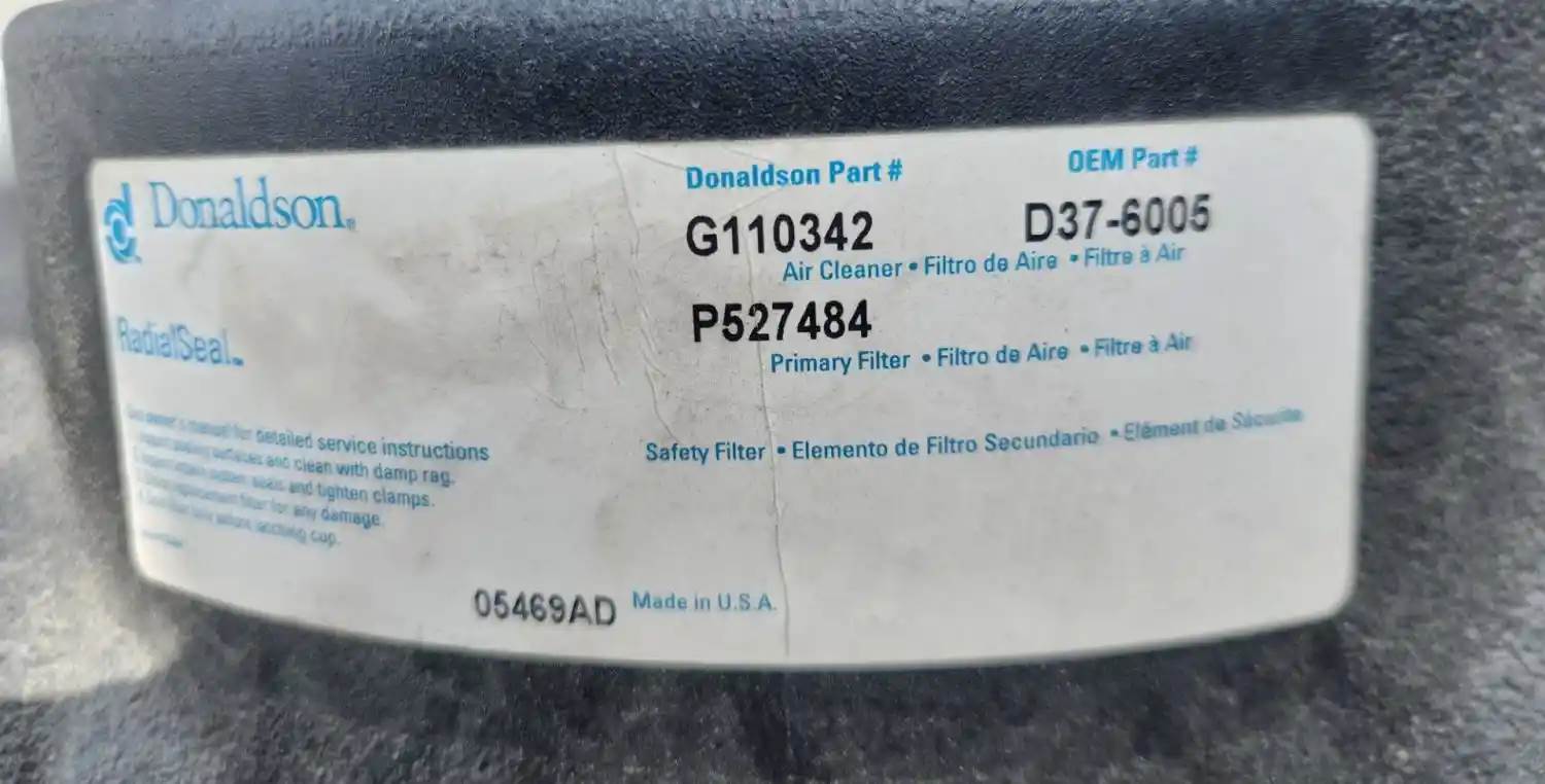 (Used) 2021 Kenworth T370, AIR CLEANER- Part Number: G110342, Side: Passenger Right Side, Color: Black, Material: Plastic, Engine: PACCAR PX-9, Dimensions: L=13", D=9", Reference images for condition, For more information about this item, give us a call. We ship Worldwide! (CRG HEAVY TRUCK PARTS) 929 W PULASKI HWY ELKTON, MD 21921, Dimensions: L=13", D=9", Material: Plastic, Shape: Cylinder