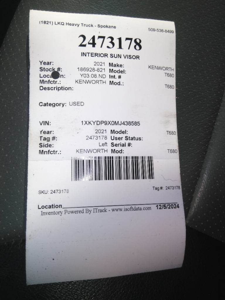 2021 Kenworth T680 Right Interior Sun Visor