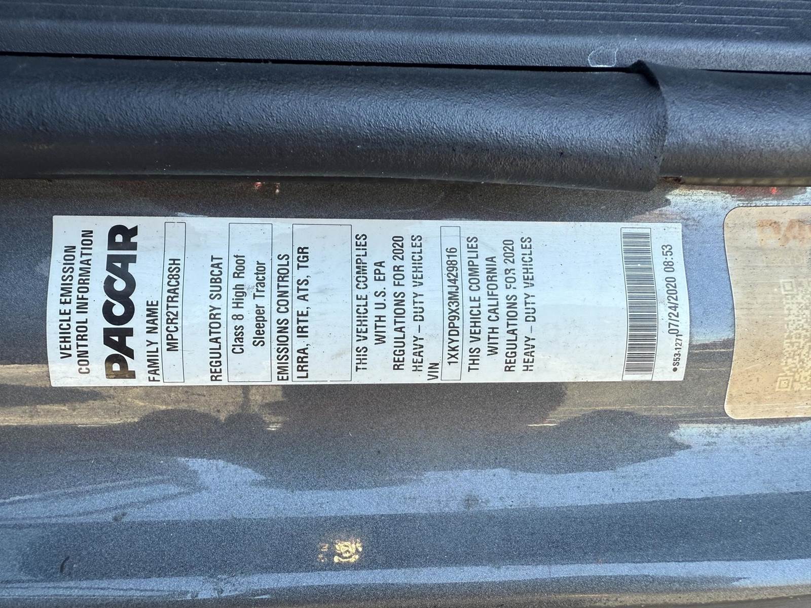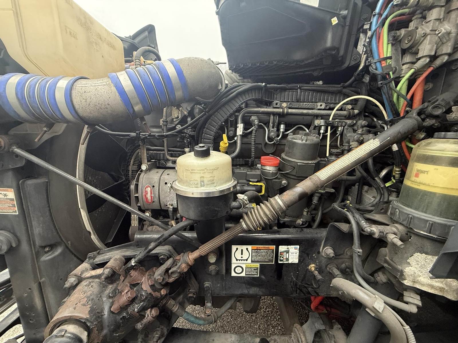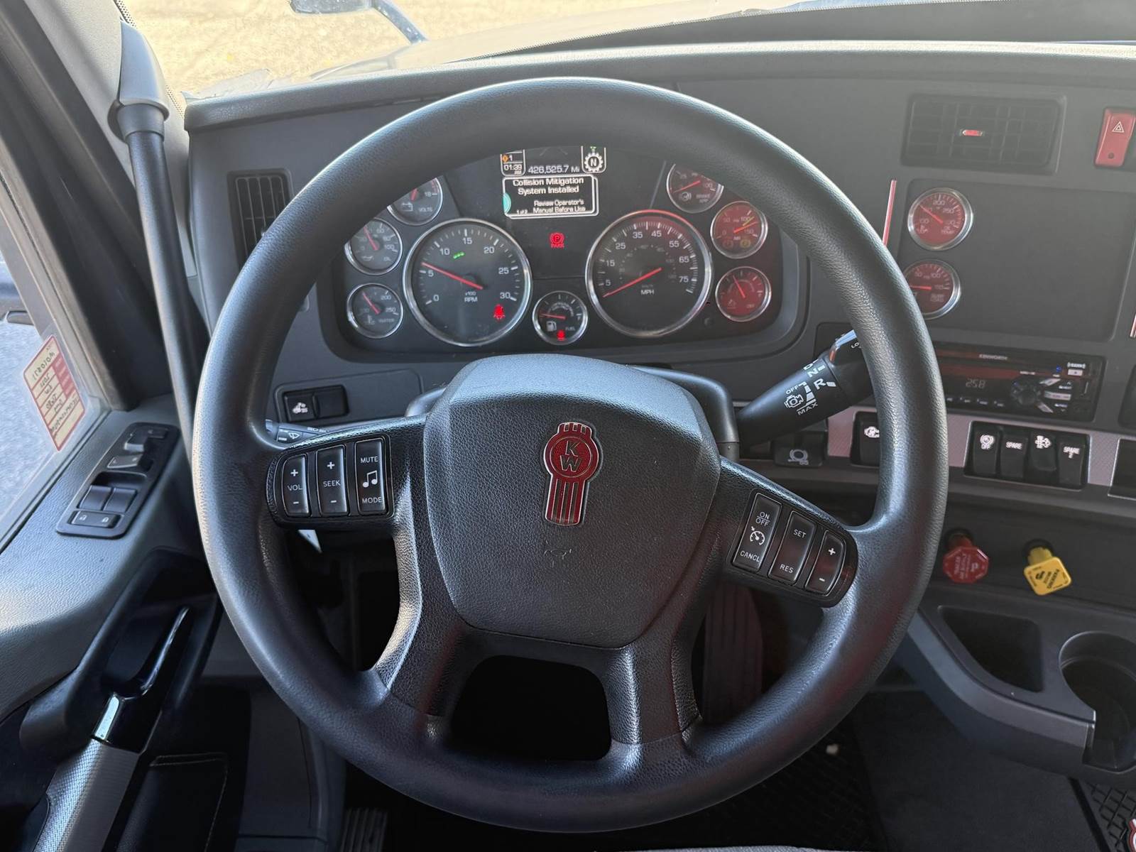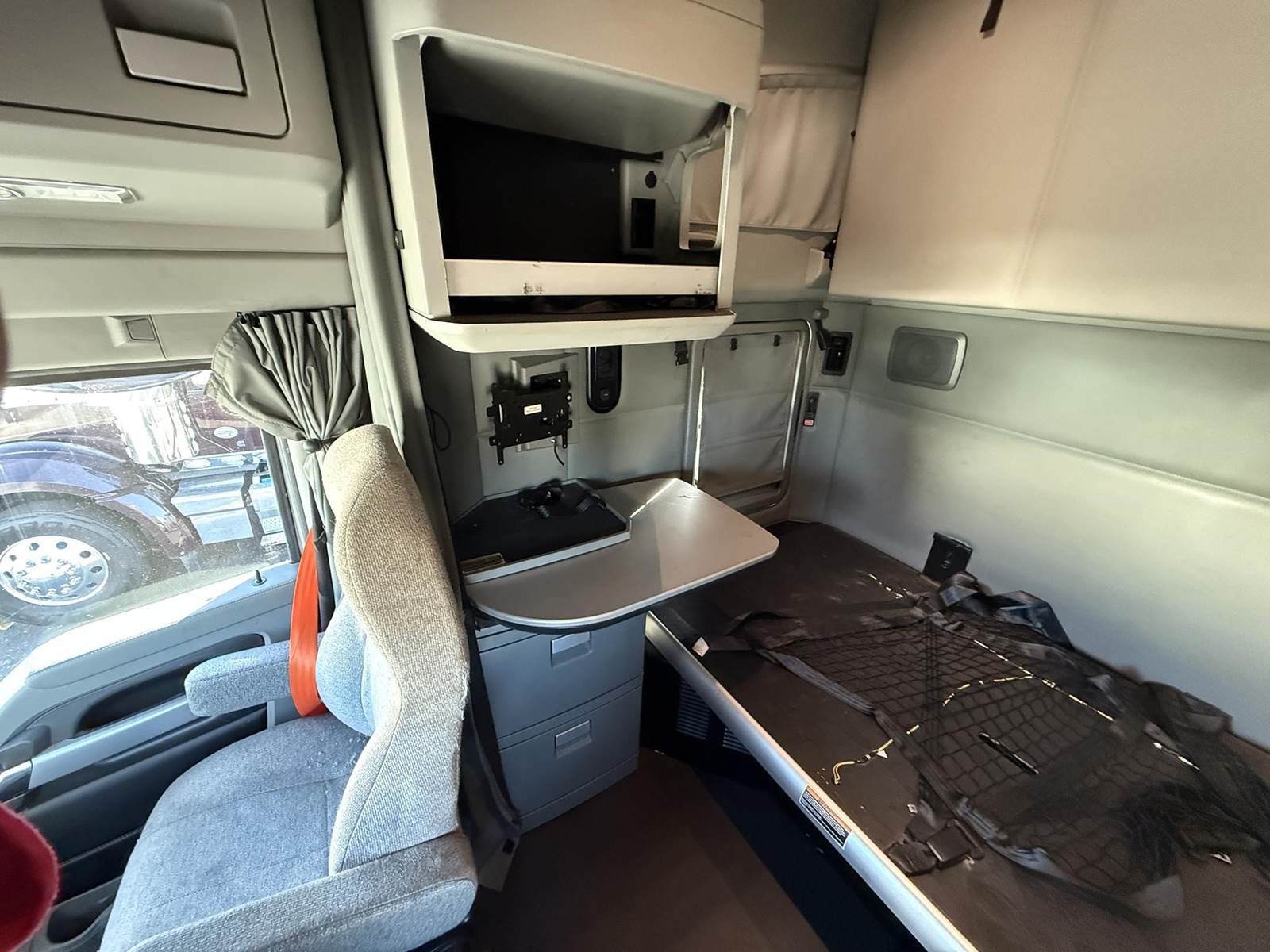 Equipped with a Paccar MX-13 12.9L 455 HP, Automatic 12 speed Endurant transmission, engine brake, 2 aluminum tanks of 200 diesel fuel capacity total, horizontal exhaust, power steering, overdrive, cruise control, Meritor 2.79 ratio, Tandem axle, front 12,000 lbs. and rear 40,000 lbs., steel frame, air ride suspension, Tire Size F 275/80R22.5 / R 445/50R22.5, All aluminum wheels, Fixed 5th wheel, Excellent A/C, 76'' sleeper size, dual bunk, radio AM/FM, bluetooth, dual power mirrors, dual high back seats, air ride passenger seat, plastic bumper, collision avoidance, heated mirrors, full fairings, disc brakes and TRIPAC APU!!!