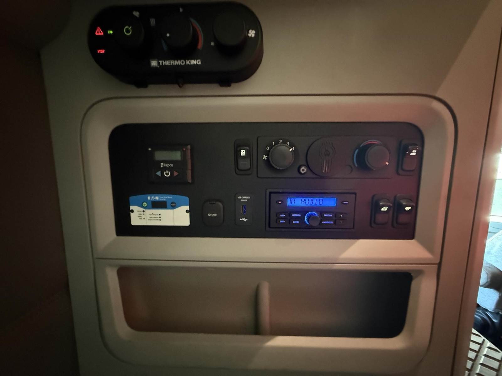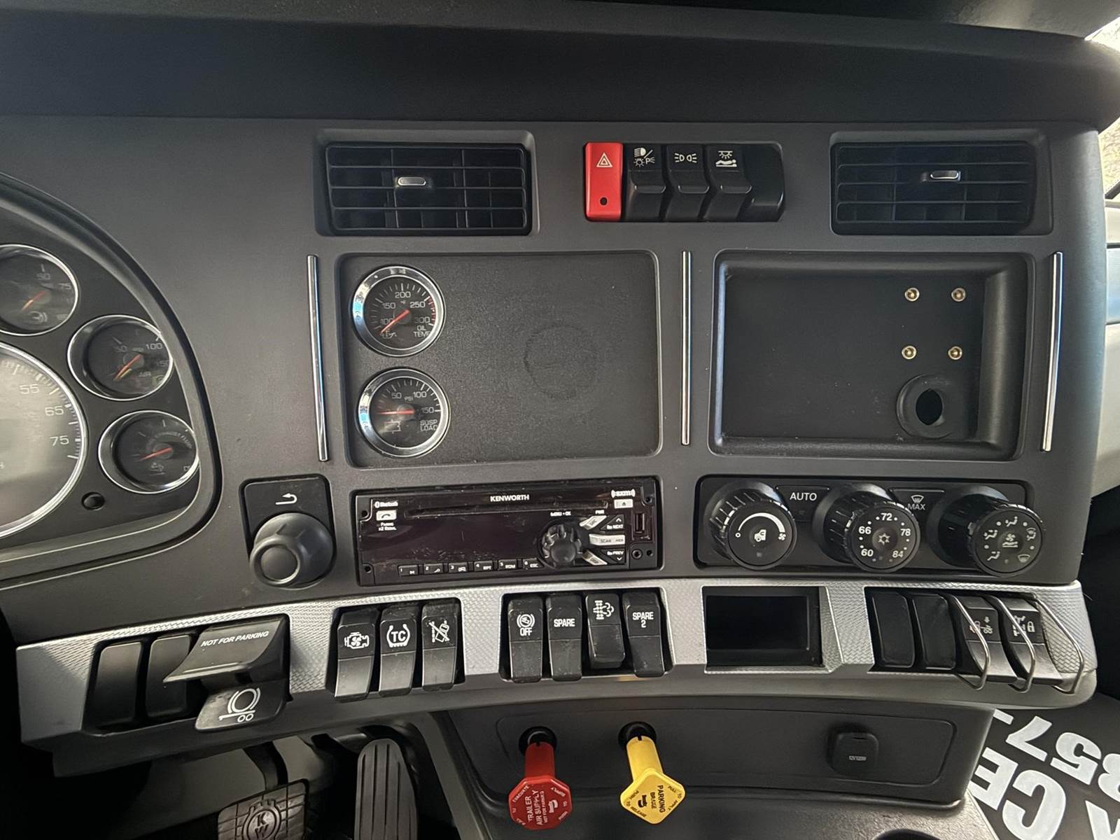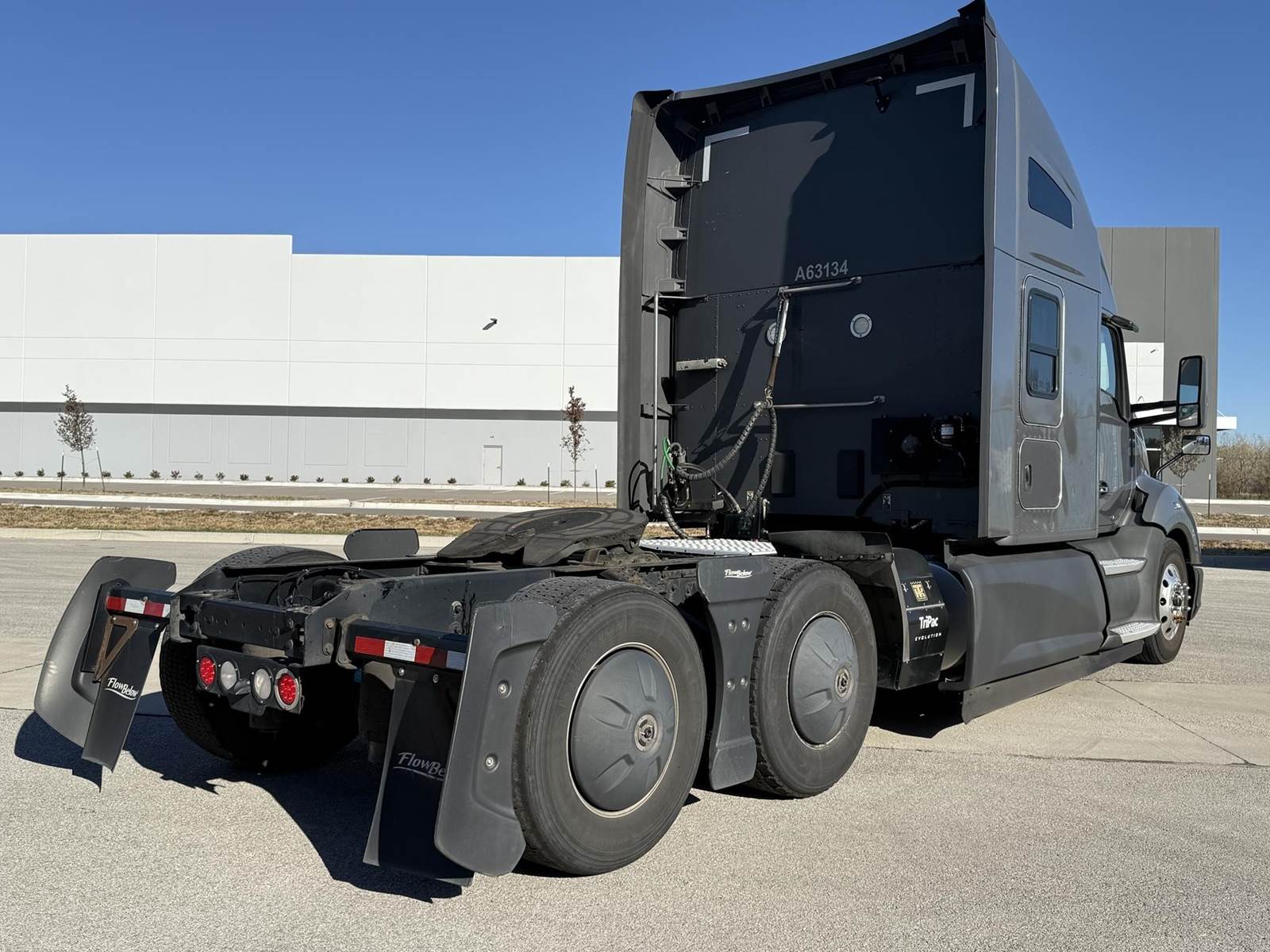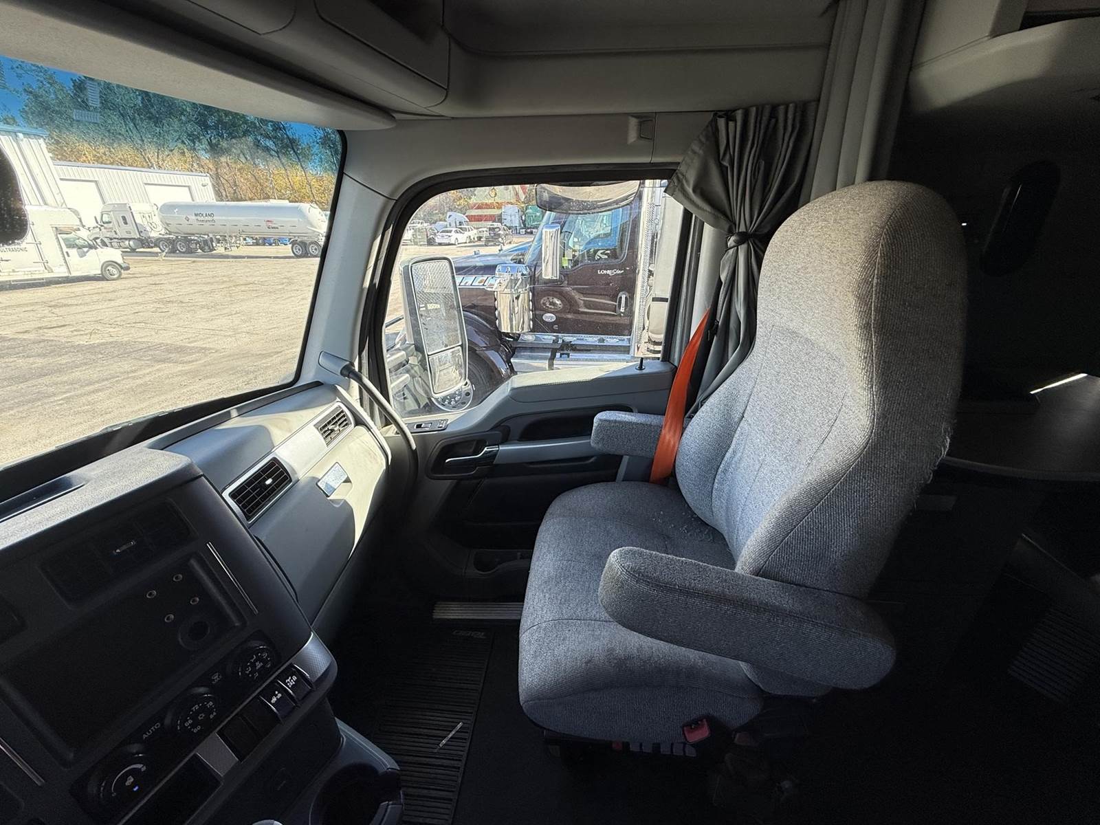 Equipped with a Paccar MX-13 12.9L 455 HP, Automatic 12 speed Endurant transmission, engine brake, 2 aluminum tanks of 200 diesel fuel capacity total, horizontal exhaust, power steering, overdrive, cruise control, Meritor 2.79 ratio, Tandem axle, front 12,000 lbs. and rear 40,000 lbs., steel frame, air ride suspension, Tire Size F 275/80R22.5 / R 445/50R22.5, All aluminum wheels, Fixed 5th wheel, Excellent A/C, 76'' sleeper size, dual bunk, radio AM/FM, bluetooth, dual power mirrors, dual high back seats, air ride passenger seat, plastic bumper, collision avoidance, heated mirrors, full fairings, disc brakes and TRIPAC APU!!!