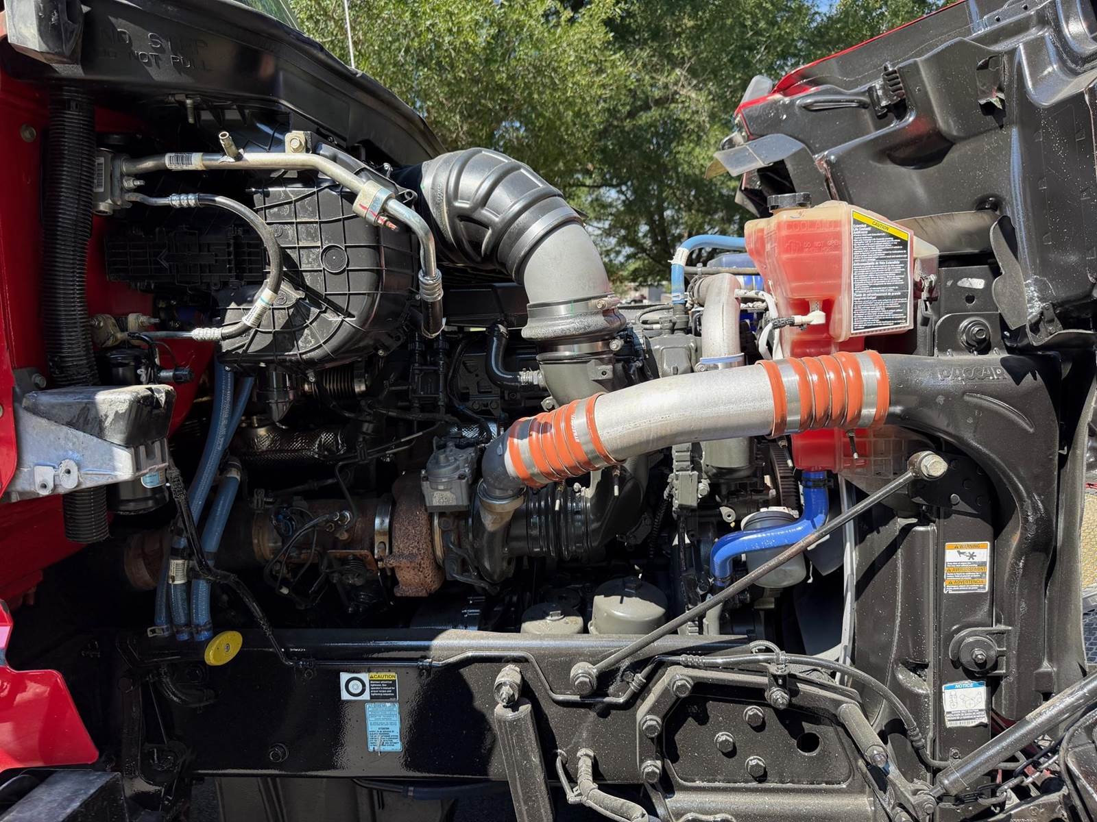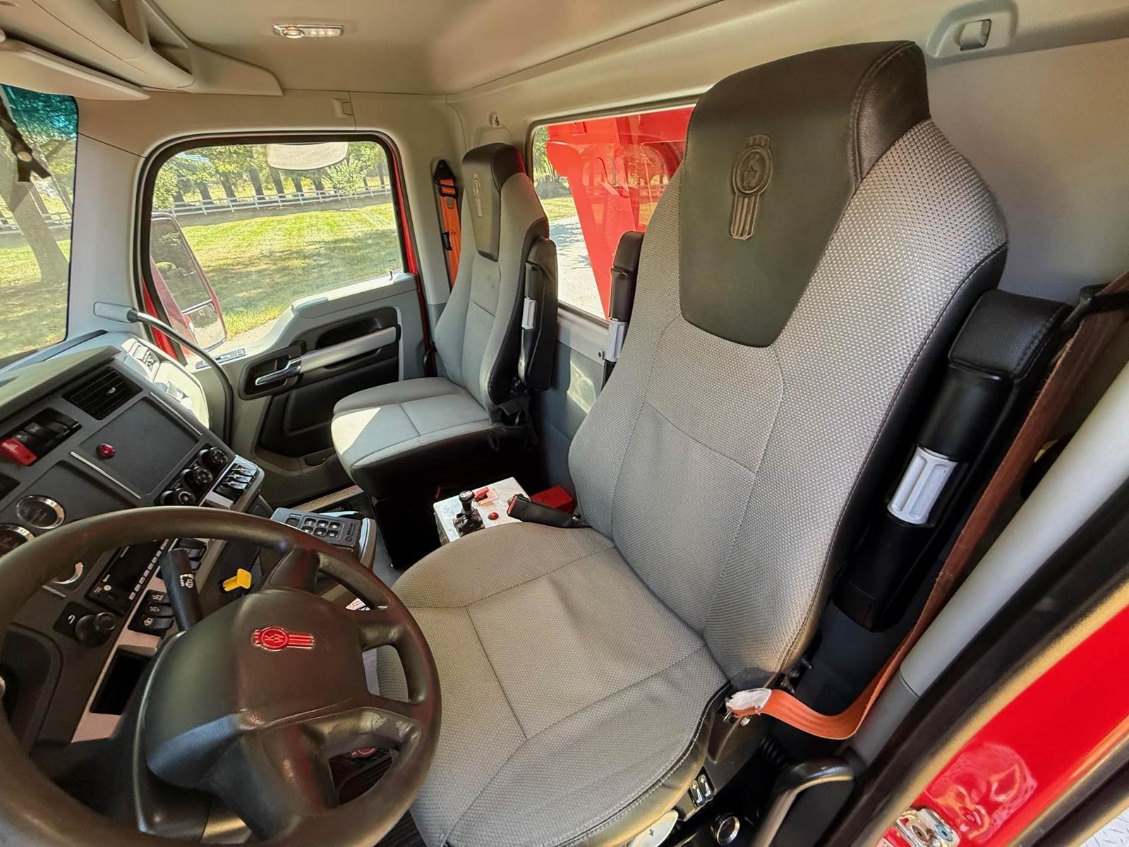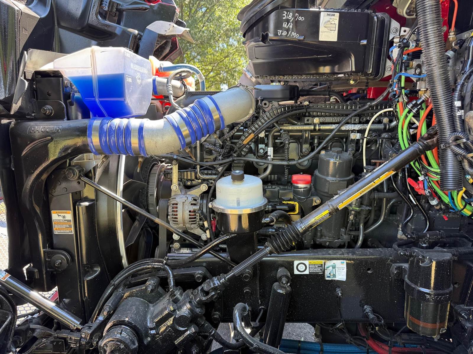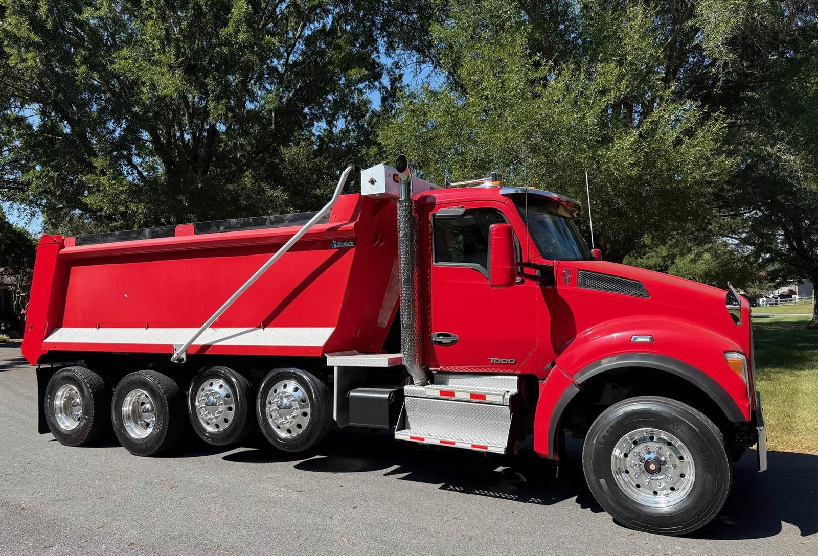 Quad Axle, 17' R/S Steel Dump w/54" Sides, MX13 Paccar 455 HP, Allison Automatic 6 Speed, 3 Stage Engine Brake, 4.10 Ratio, Double Frame, Chalmers, 20K FA, 46K RA, (2) 13,500 Steerable L/A, 256" WB, 23'7" Bridge, Diff Lock, Electric Tarp, Air Tailgate, P/S, A/C, AM/FM Bluetooth, Heated Mirrors, Cruise, Tilt/Tele Wheel, Power Windows, Locks, and Mirrors, Dual High Back Seats, 110 Gallon Aluminum Fuel Tank, 385/65R22.5 Steer Tires on Aluminum Wheels, 11R22.5 Drive Tires on Aluminum Wheels Outside, Chrome Bumper