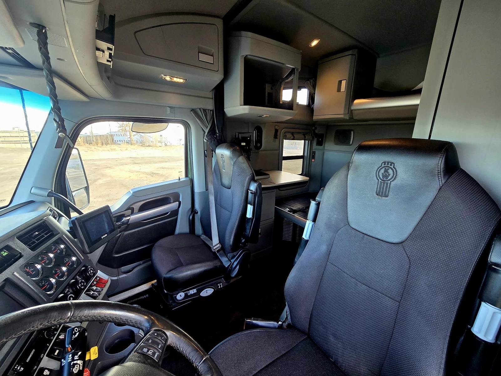 Just in this nice 2022 Kenworth T680 Sleeper, Diamond Interior, Dual Sleeper Doors with Slide Windows, Full Cabinets with Doors and Fridge,...