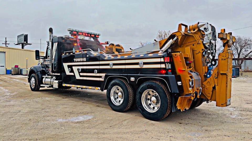 Original owner - Very good condition -custom painted black with gold metallic stripes are paint on it’s not a wrap. Has the Vulcan V70 wrecker unit. New tires all the way around 6 speed auto transmission 575 hp Cummins Splatter painted boxs fully equipped ready to work.