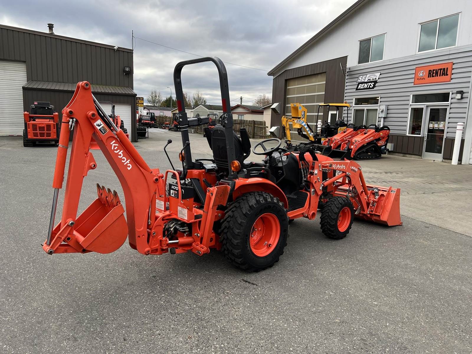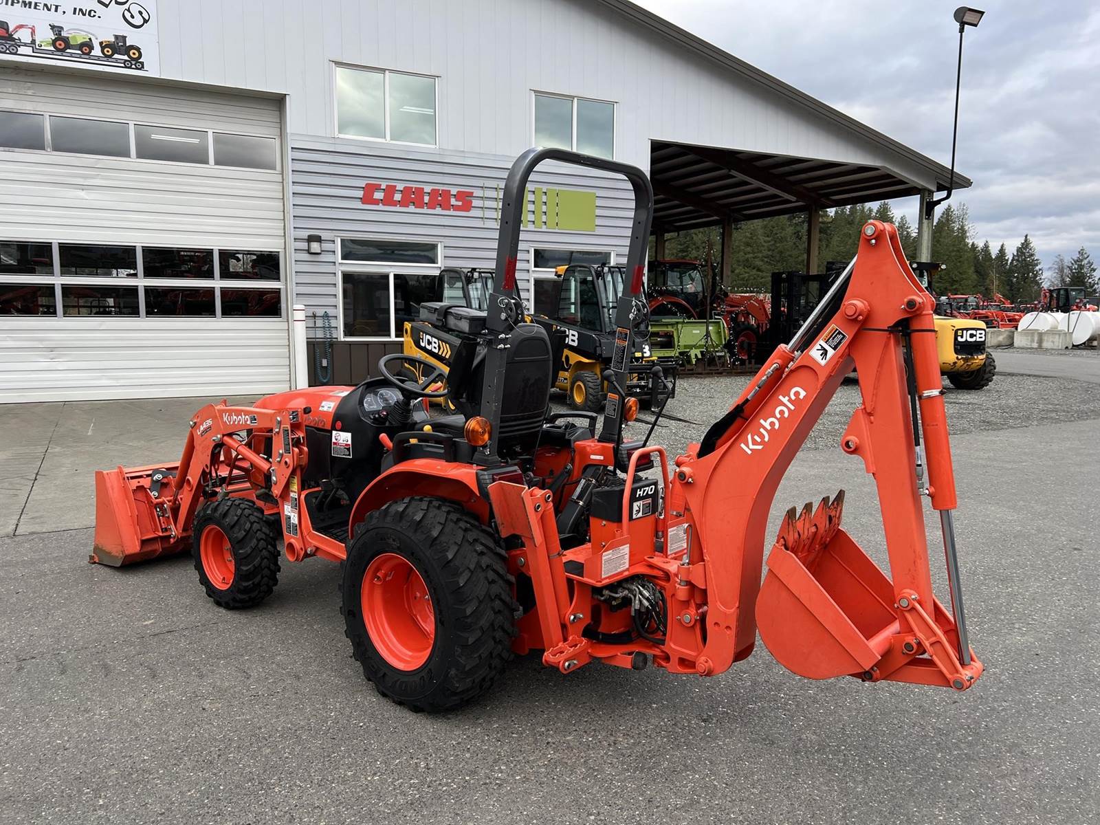 2021 KUBOTA B2301HSD-1 Compact Utility Tractor - Kubota diesel engine, three range hydrostatic transmission, LA435 Swift-Tach loader with quick attach bucket, H70 backhoe with 16" trenching bucket, rear stabilizers, rear and mid PTO, rear 3Pt., two-post foldable ROPS. Warranty until September 2027