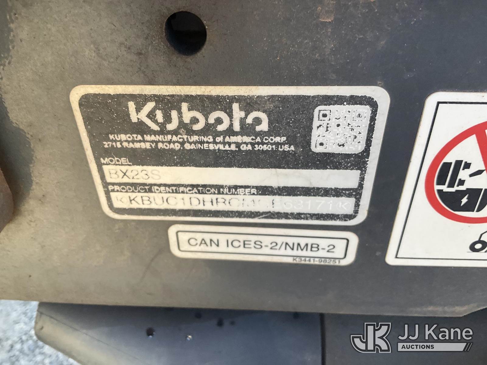 2021 Kubota BX23S 4x4 Mini Tractor Loader Backhoe, s/n KBUC1DHRCMGEC3171, Kubota Hydrostatic, diesel, with 12in Digging Bucket, GP Loader Bucket, ROPS Post, (Runs Moves & Operates, Hood Damage) (Reads 782 hours) NOTE: This unit is being sold AS IS/WHERE IS via Timed Auction and is located in Plymouth Meeting, PA. Inspection & preview days for this unit are the 2 business days prior to the first day of items closing for this auction, item is located at 1402 Conshohocken Rd Plymouth Meeting, PA 19462 and hours of operations are 8a-4p. For pre-sale questions, please contact Bruce Thomas @ (267) 887-0392 or bruce.thomas.jr@jjkane.com. (Buyer is responsible for removal. Assistance by consignor or JJ Kane Auctioneers is not assured.)