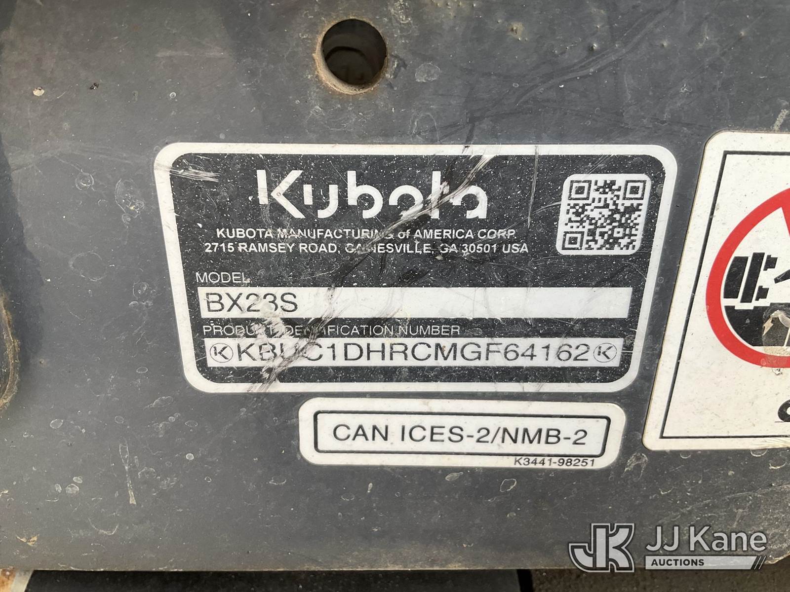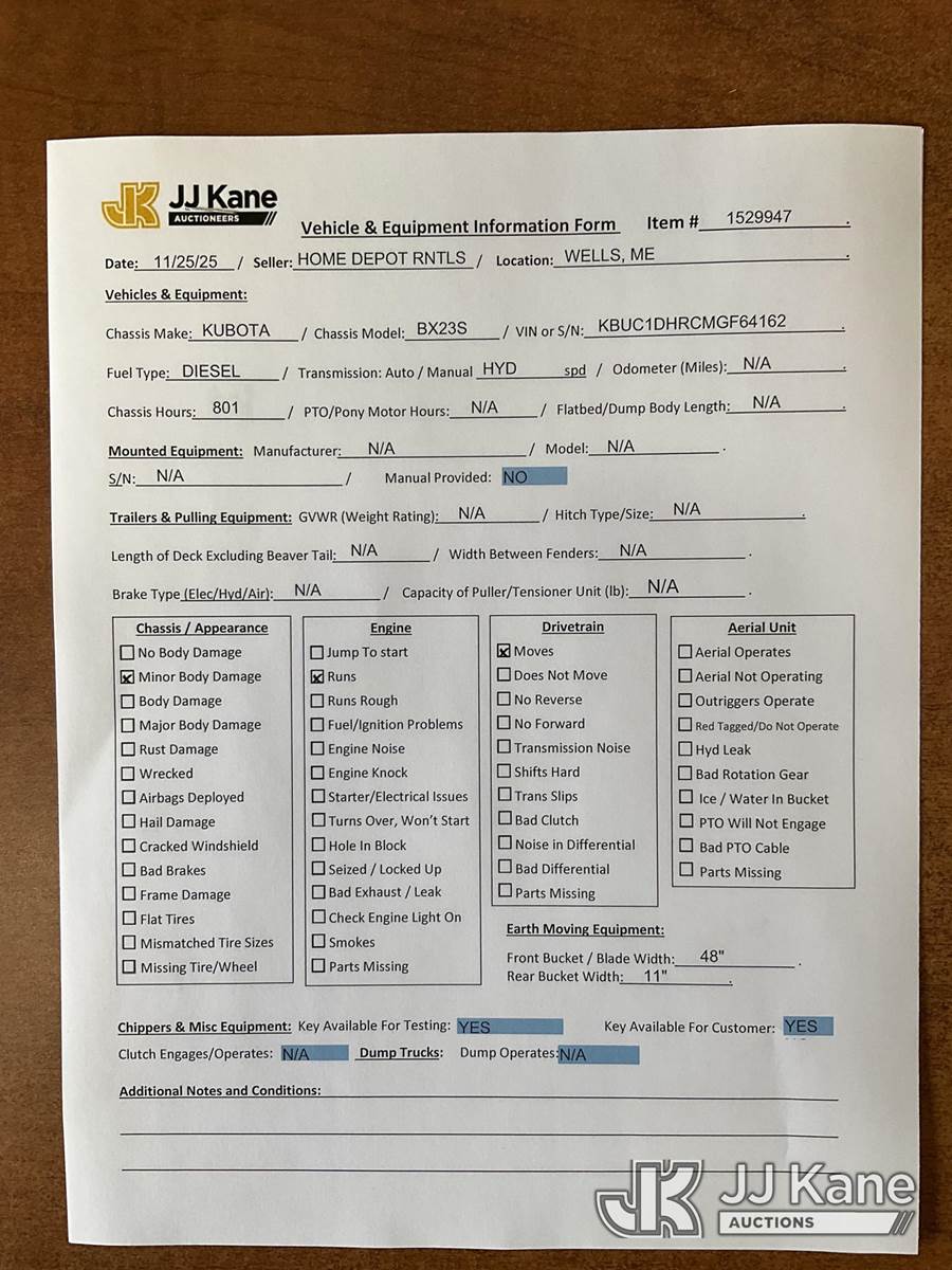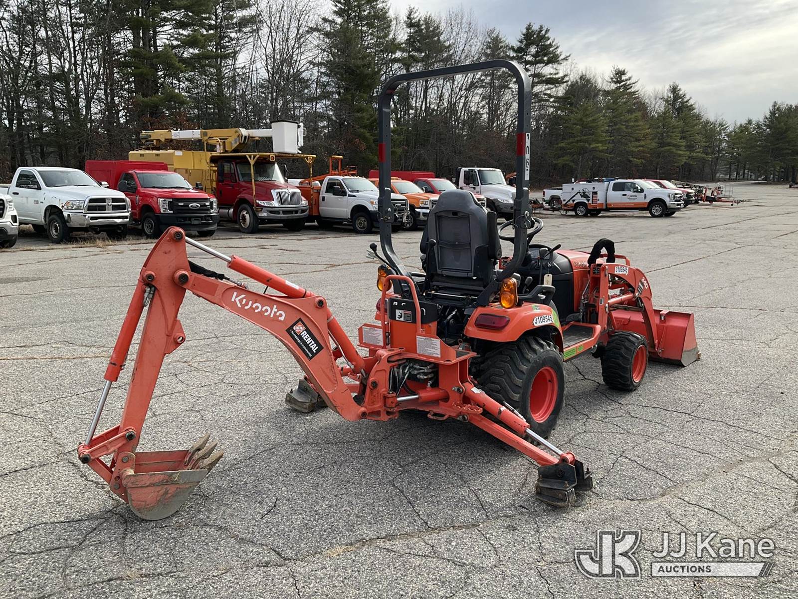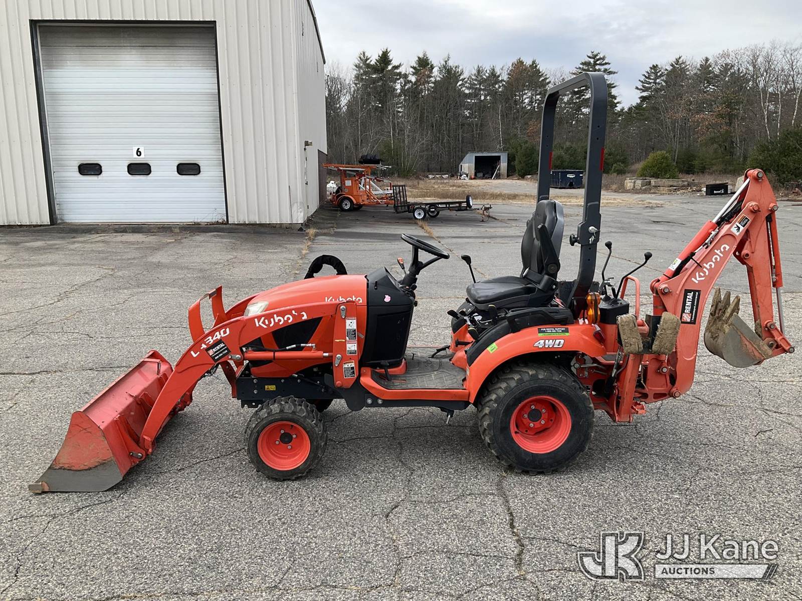 2021 Kubota BX23S 4x4 Mini Tractor Loader Backhoe, s/n 64162, Kubota Hydrostatic, diesel, with GP Loader Bucket, 12 inch Digging Bucket & ROPS Post, (Runs, Moves & Operates) (Removal is by Appointment Only, Buyer MUST make a appointment prior to picking up, Buyer/Transporter Must have PAID IN FULL RELEASE. No onsite assistance available, Please Come prepared.) NOTE: This unit is being sold AS IS/WHERE IS via Timed Auction and is located in Wells, ME. Inspection days are the Tuesday through Thursday prior to the auction. (Buyer is responsible for removal. Assistance by consignor or JJ Kane Auctioneers is not assured.)