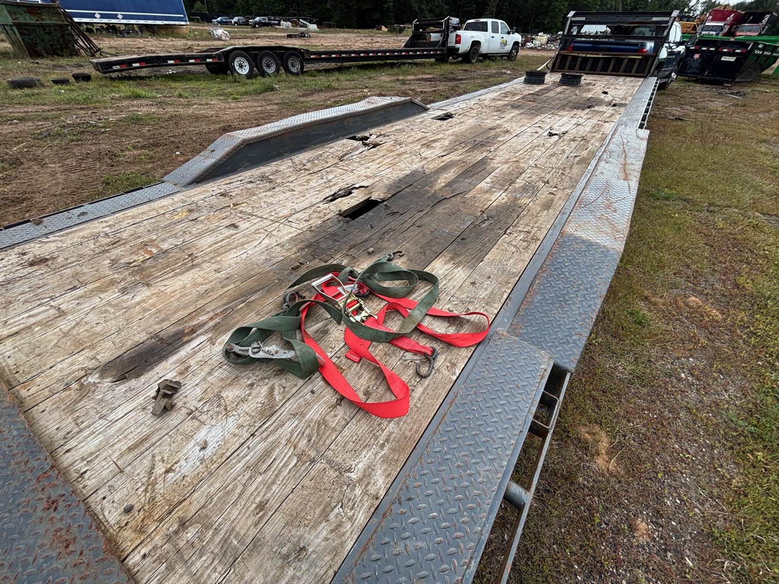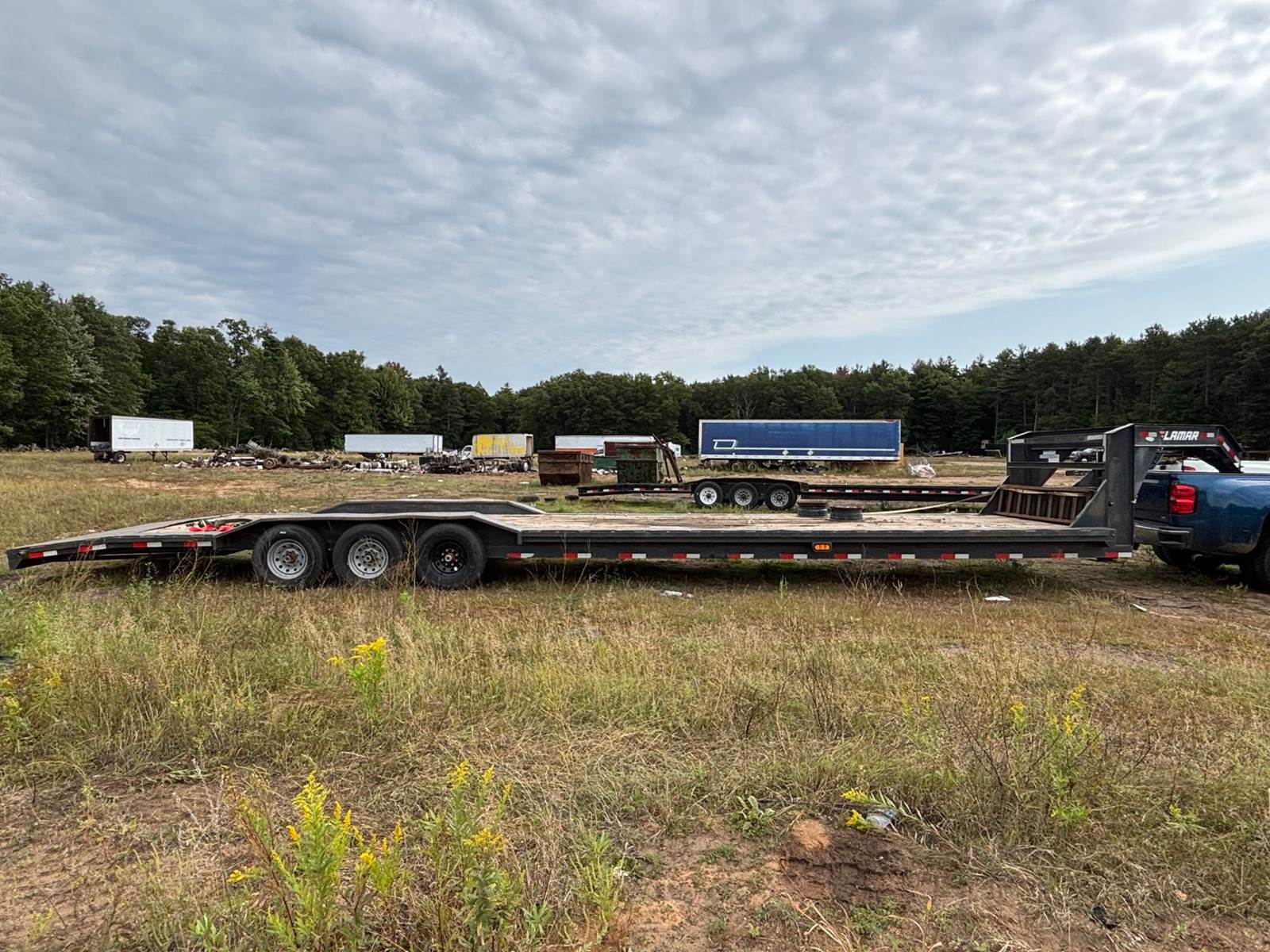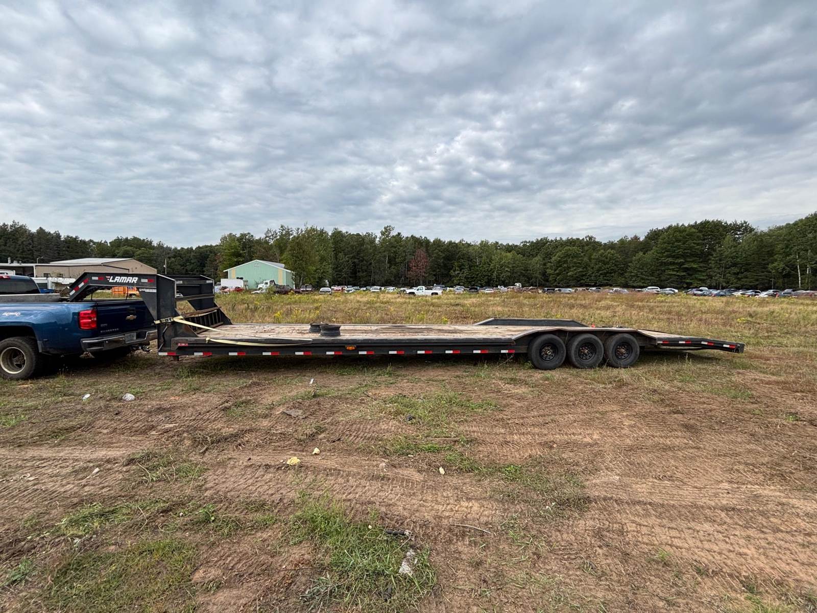 2021 Lamar Tri-axle Flatbed Trailer, GVWR 21,000 lbs., 35' deck, 5' beavertail, 8' width, 47' overall length, ST235/80R16(E) tires. Deck needs a little attention, overall in good working order.