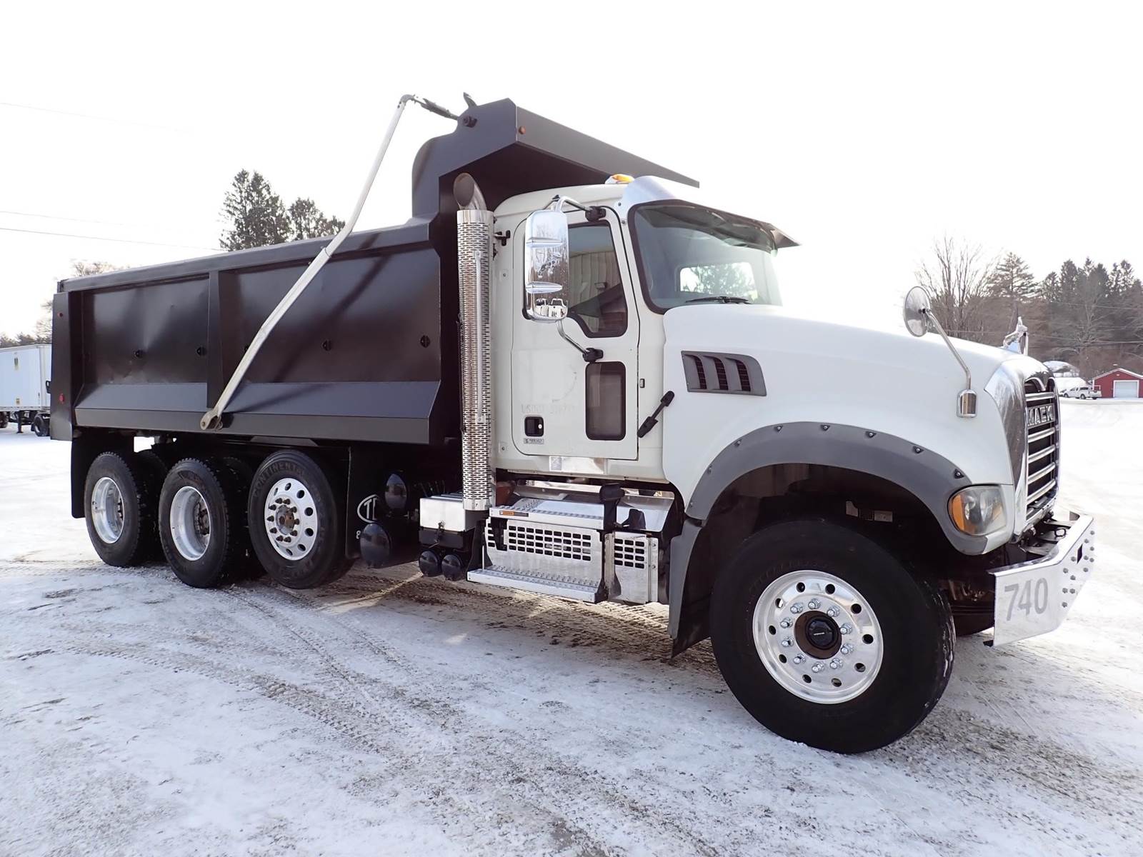 triaxle, 17 ft steel body, Mack MP7-425M, 425 hp, Allison automatic, 18k f, 13k p, 46k r, Haulmaax rubber block suspension, a/c