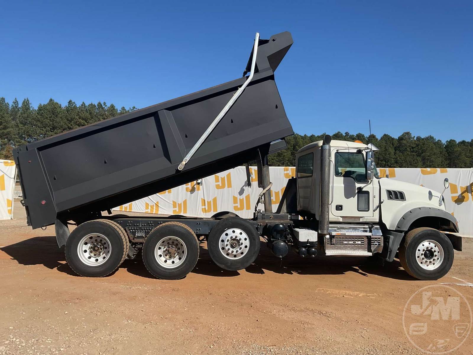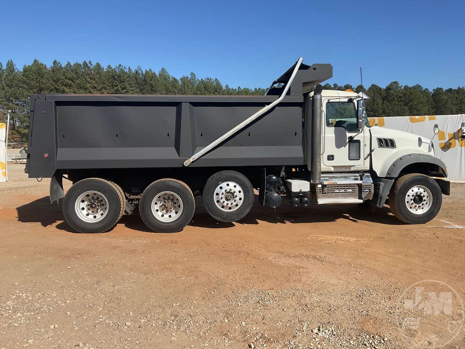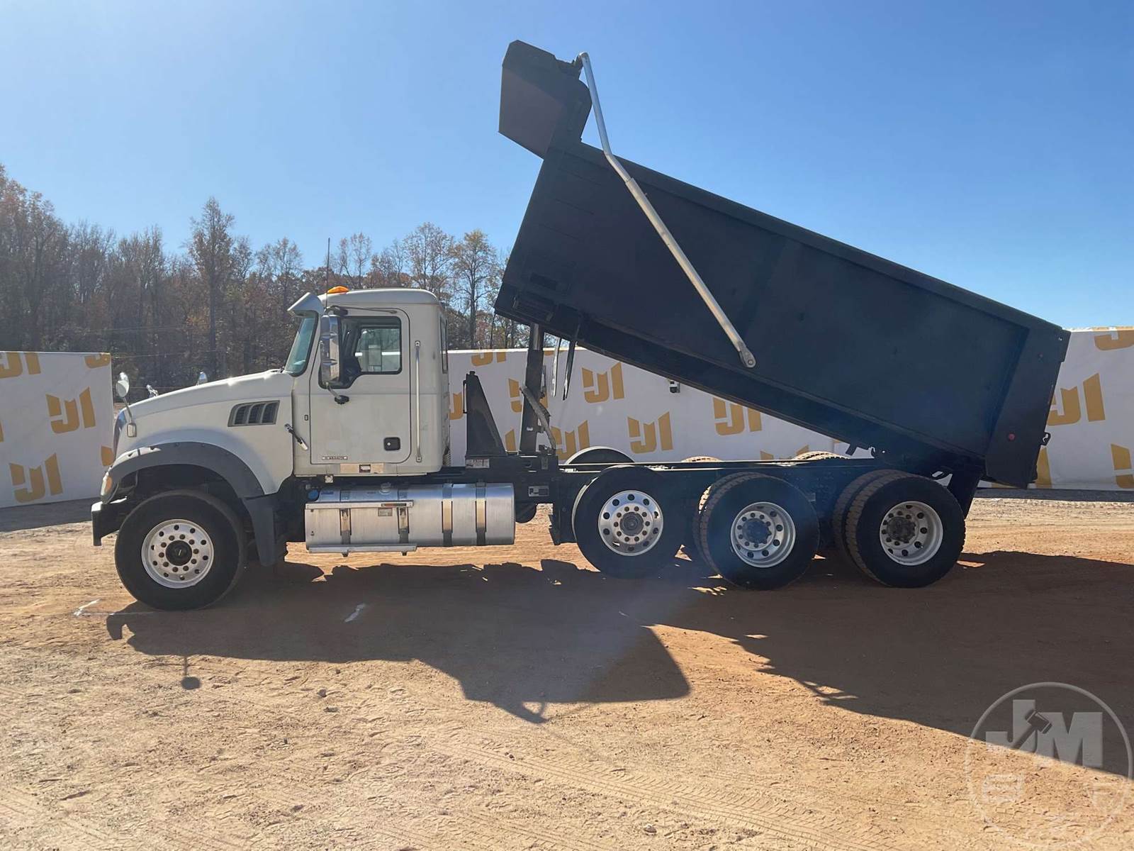 TRI-AXLE DUMP TRUCK, MACK, MP7, HP 425, ALLISON, AUTOMATIC, AIR BRAKES, RUBBER BLOCK SUSPENSION, STEERABLE LIFT AXLE, 228 " WB, 18K FRONTS, 46K REARS, DOUBLE FRAME, ENGINE BRAKE, DIFF LOCK, CRUISE CONTROL, A/C, POWER WINDOWS, POWER DOOR LOCKS, TEBCO, 17', STEEL, DUMP BODY, TARP, AIR GATE, 77000 GVWR, ALUMINUM DISC WHEELS, 315/80R22.5 STEER TIRES, 11R22.5 TIRES, HOUR METER READS: 12132, ODOMETER READS: 329497