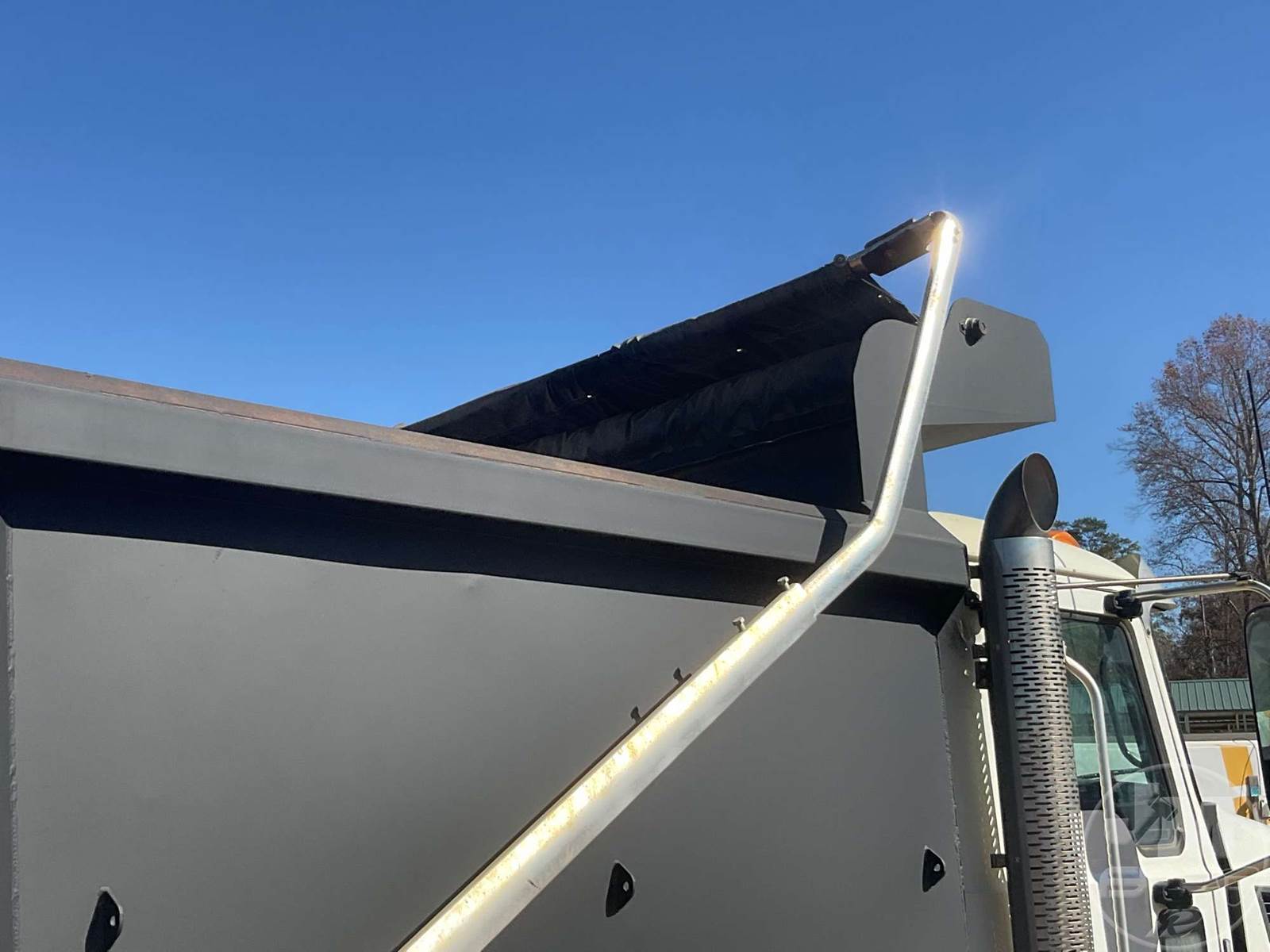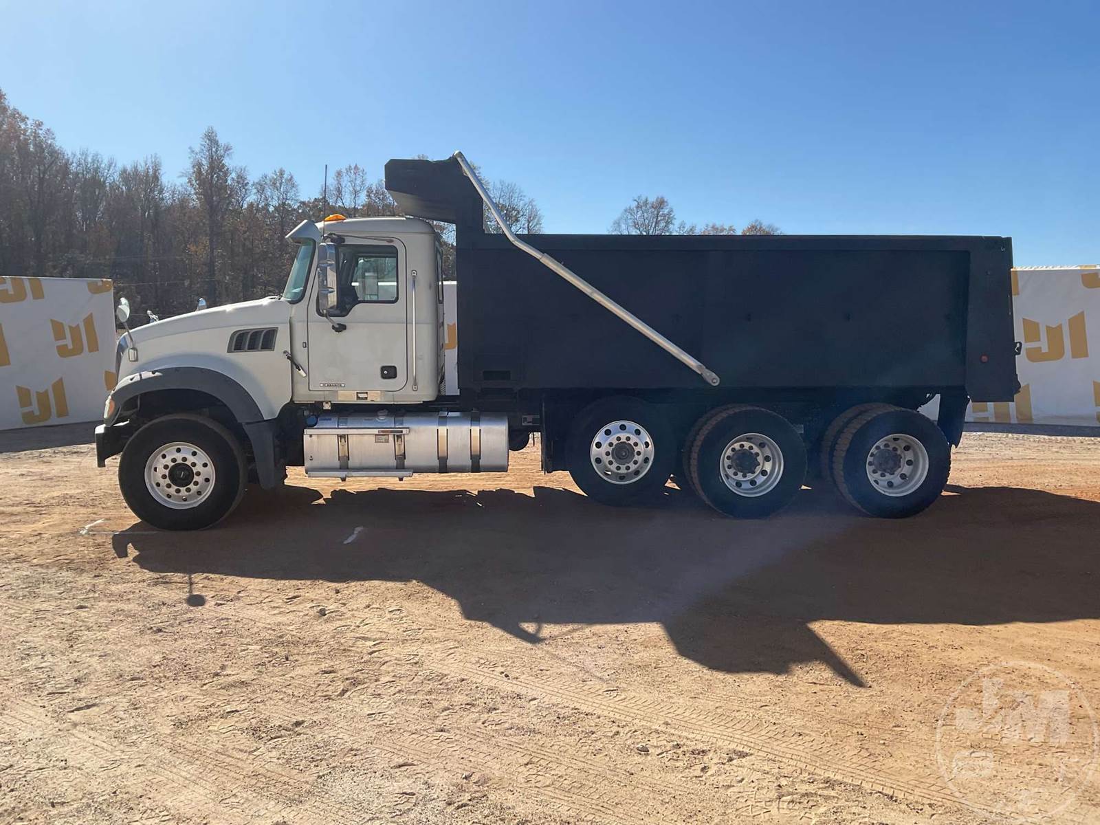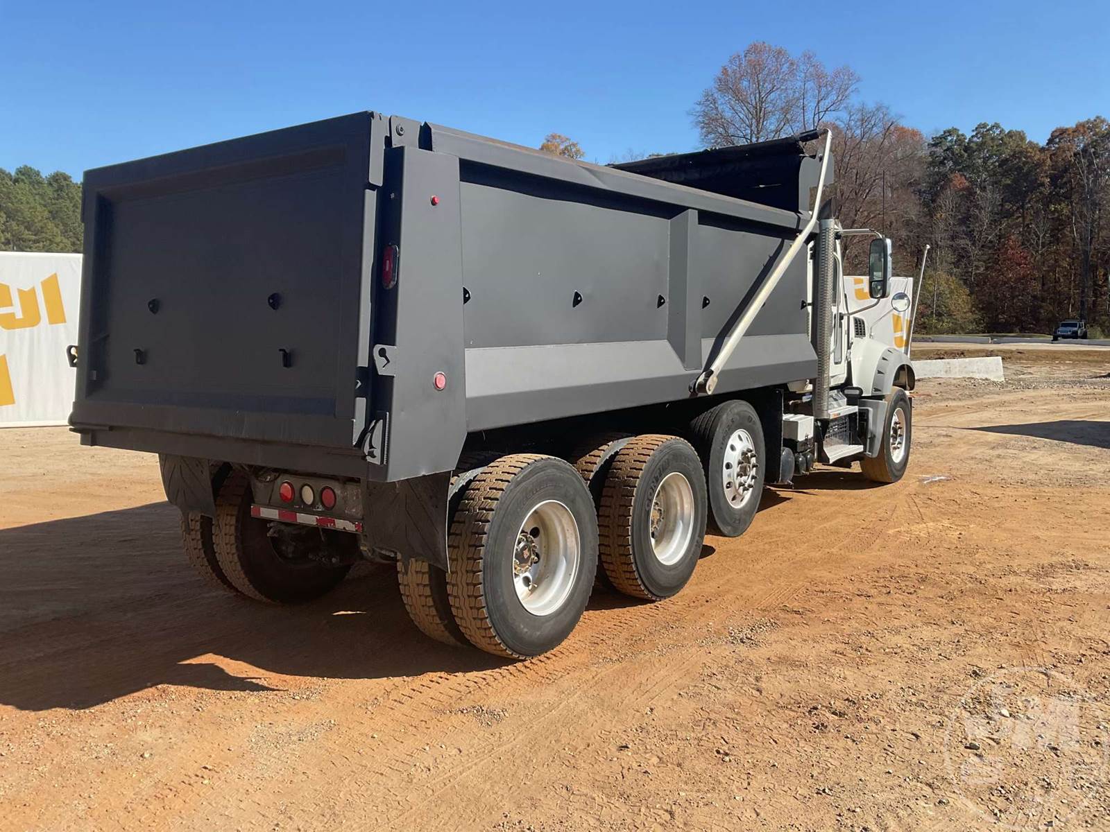 TRI-AXLE DUMP TRUCK, MACK, MP7, HP 425, ALLISON, AUTOMATIC, AIR BRAKES, RUBBER BLOCK SUSPENSION, STEERABLE LIFT AXLE, 228 " WB, 18K FRONTS, 46K REARS, DOUBLE FRAME, ENGINE BRAKE, DIFF LOCK, CRUISE CONTROL, A/C, POWER WINDOWS, POWER DOOR LOCKS, TEBCO, 17', STEEL, DUMP BODY, TARP, AIR GATE, 77000 GVWR, ALUMINUM DISC WHEELS, 315/80R22.5 STEER TIRES, 11R22.5 TIRES, HOUR METER READS: 12132, ODOMETER READS: 329497