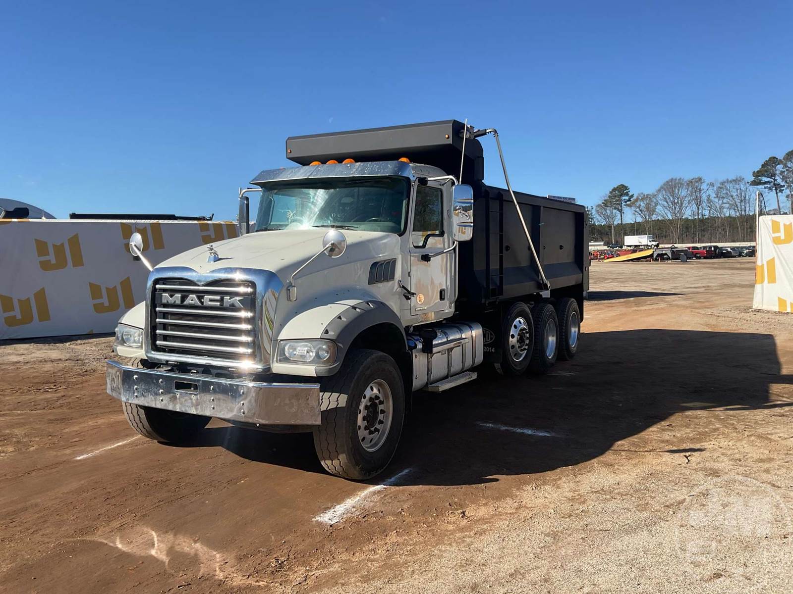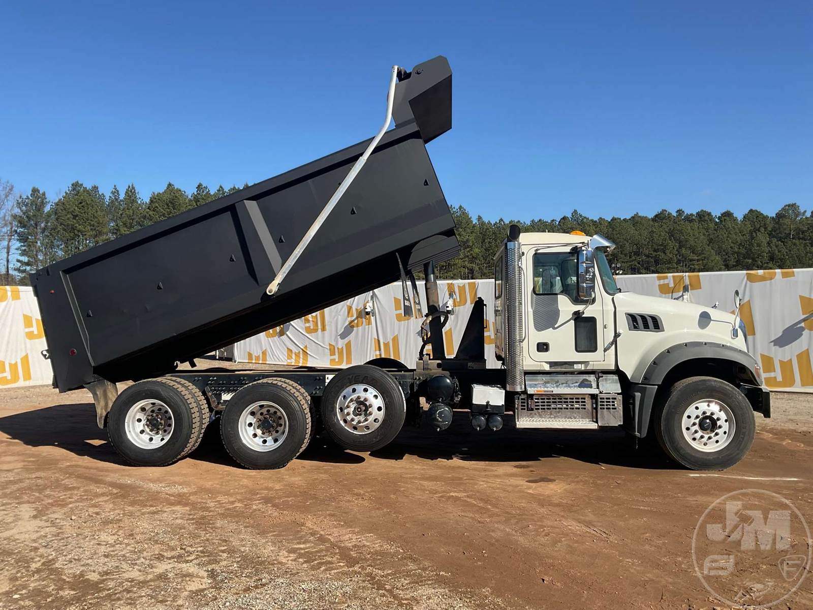 TRI-AXLE DUMP TRUCK, MACK, MP7, HP 425, ALLISON, AUTOMATIC, AIR BRAKES, RUBBER BLOCK SUSPENSION, STEERABLE LIFT AXLE, 231 " WB, 18K FRONTS, 46K REARS, DOUBLE FRAME, ENGINE BRAKE, DIFF LOCK, CRUISE CONTROL, A/C, POWER WINDOWS, POWER DOOR LOCKS, POWER MIRRORS, TEBCO, 17', STEEL, DUMP BODY, VIBRATOR, TARP, AIR GATE, 34928 GVWR, ALUMINUM DISC WHEELS, 315/80R22.5 STEER TIRES, 11R22.5 TIRES, HOUR METER READS: 11367, ODOMETER READS: 222220