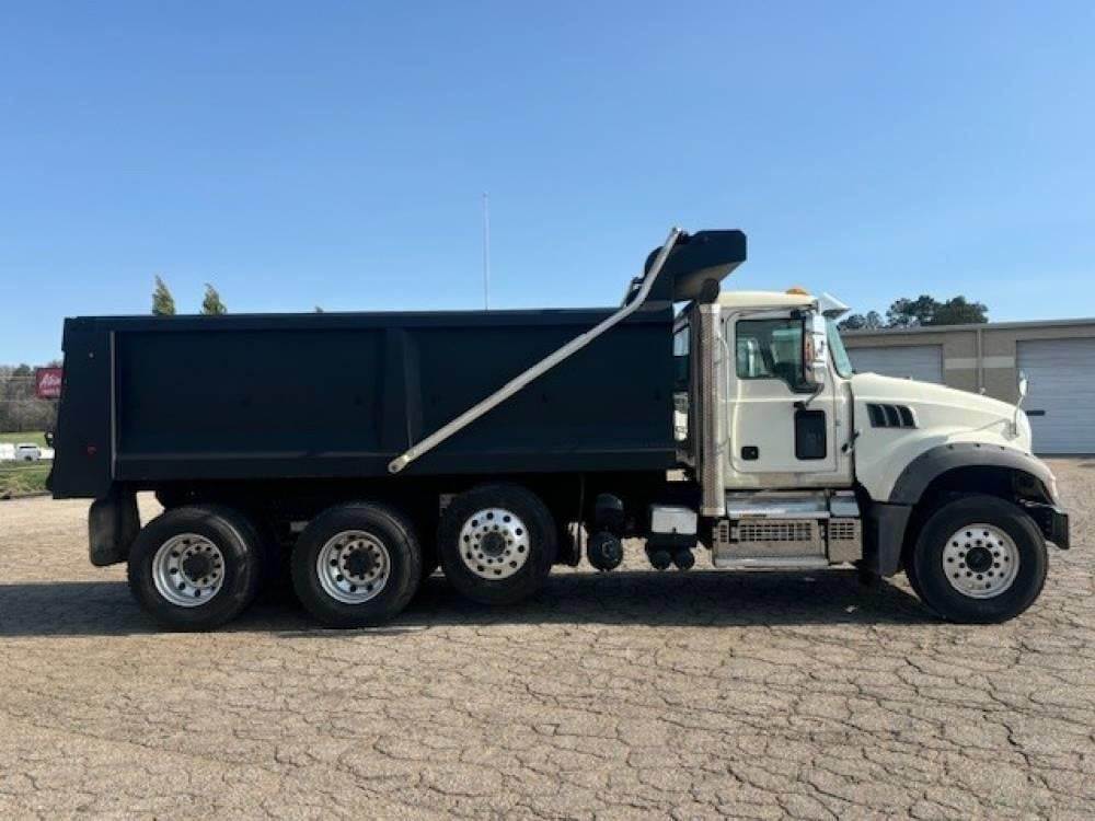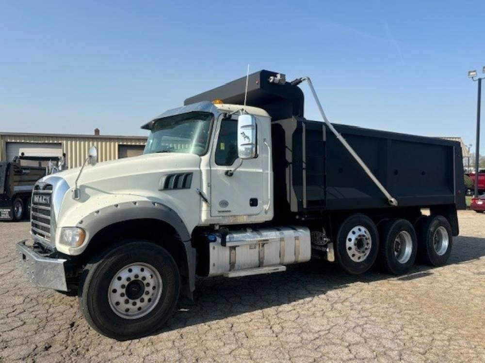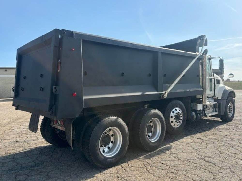 Tri Axle, MP7 Mack 425 HP, Allison Automatic 6 Speed, 18,000 Front Axle, 46,000 Rear Axle, 228" Wheelbase, 21' 2" Bridge, Hendrickson Haulmaax, 3 Stage Engine Brake, Air Brake, Differential Lock, 17' Steel TEBCO Dump Body, 54" Sides, Air Gate, Electric Tarp, 1 Steerable Lift Axle, Aluminum Front Wheels, Aluminum Rear Wheels, Single Stack, Aluminum Fuel Tank, Daylite Doors, Peep Window, Air Ride Cab, Dual High Back Seats, High Level Interior, Heated Mirrors, Cruise Control, Tilt & Telescopic Steering Wheel, AM/FM CD, Power Windows, P/L, P/S, A/C