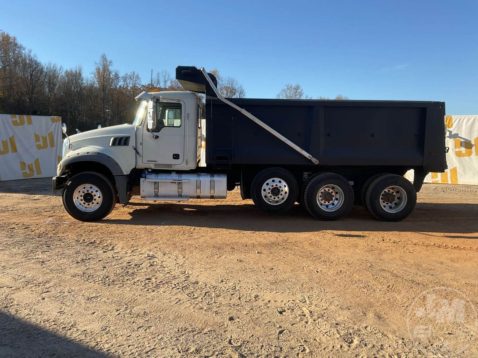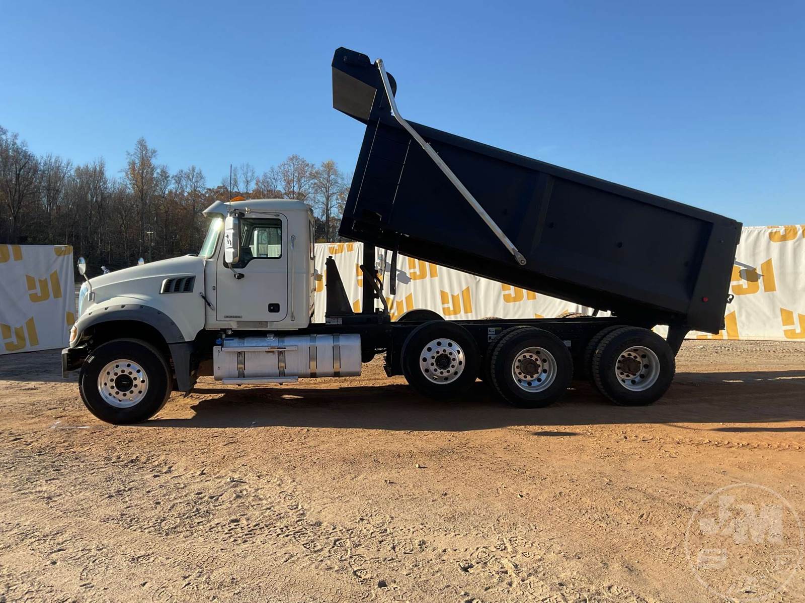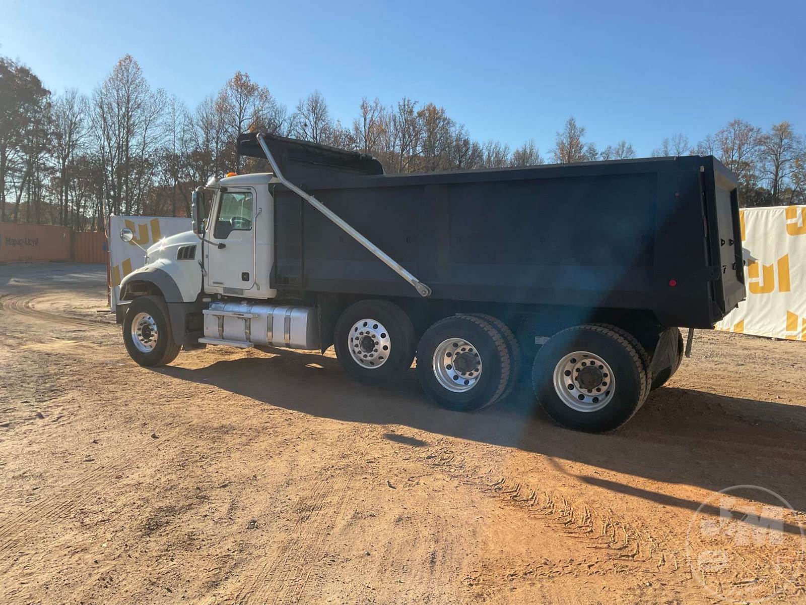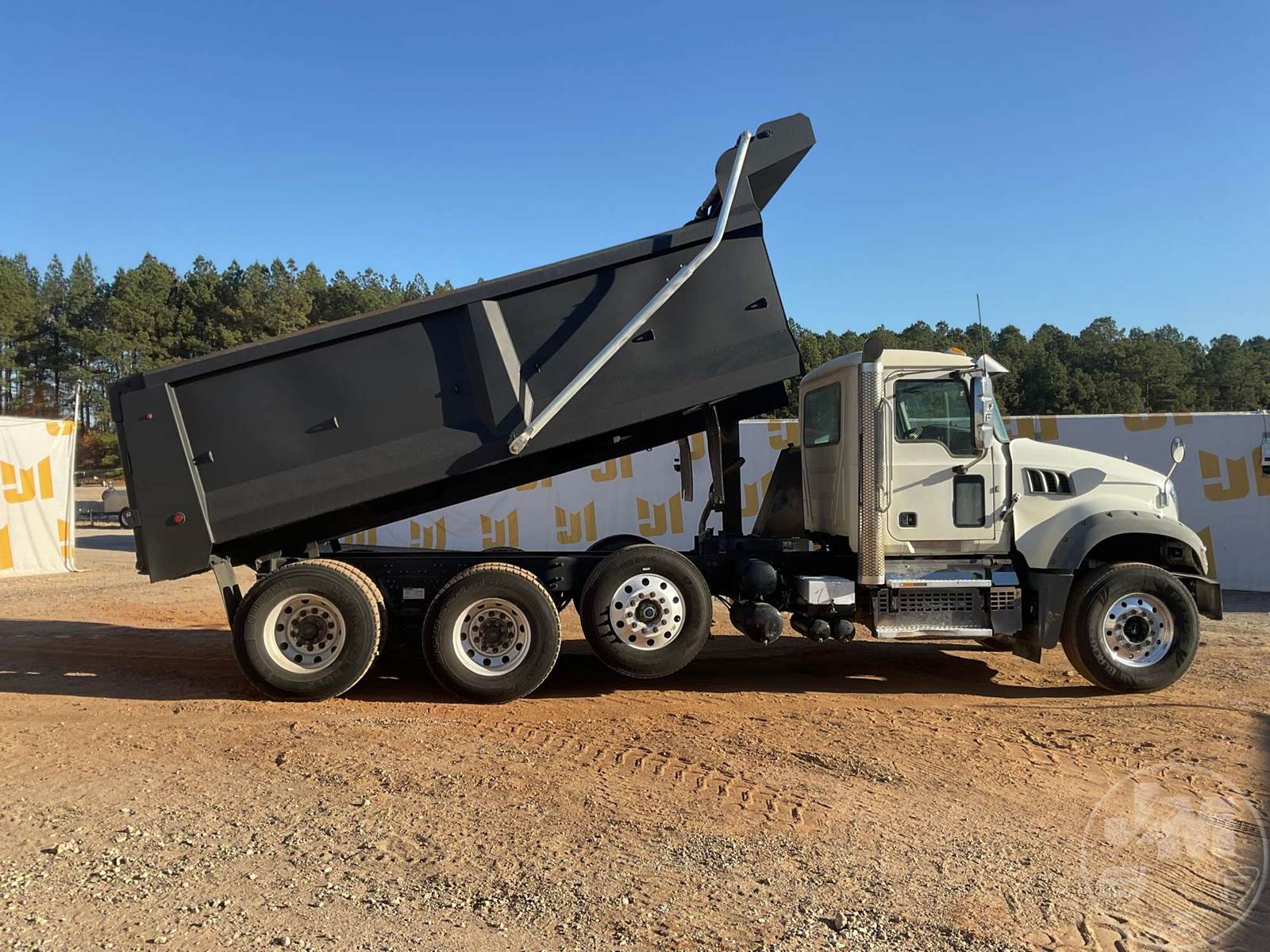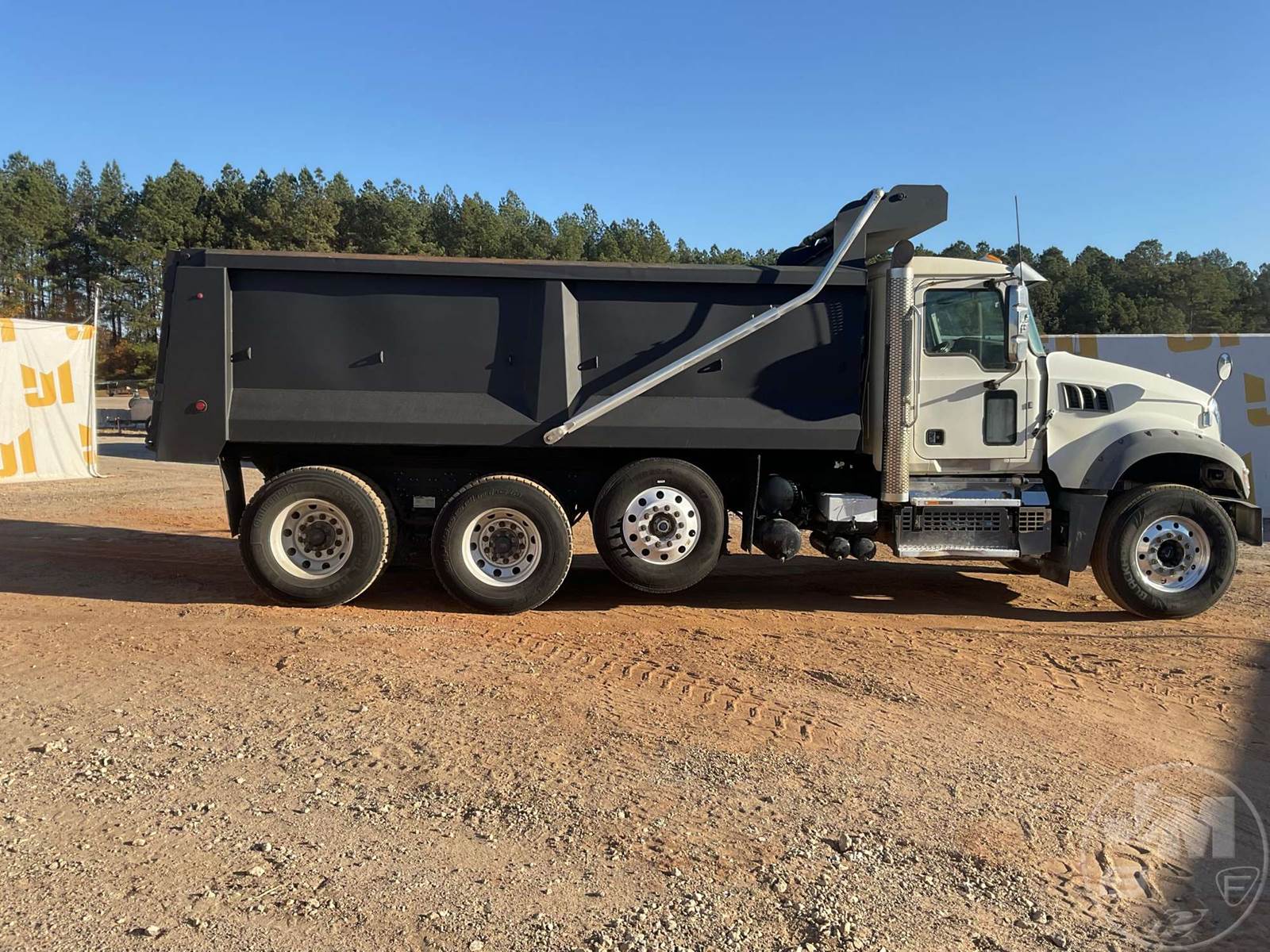 TRI-AXLE DUMP TRUCK, MACK, MP7, HP 425, ALLISON, AUTOMATIC, AIR BRAKES, RUBBER BLOCK SUSPENSION, STEERABLE LIFT AXLE, 230 " WB, 18K FRONTS, 46K REARS, ENGINE BRAKE, DIFF LOCK, CRUISE CONTROL, A/C, POWER WINDOWS, POWER DOOR LOCKS, POWER MIRRORS, TEBCO, 17', STEEL, DUMP BODY, VIBRATOR, TARP, AIR GATE, 77000 GVWR, ALL ALUMINUM WHEELS, 315/80R22.5 STEER TIRES, 11R22.5 TIRES, HOUR METER READS: 11513, ODOMETER READS: 300581