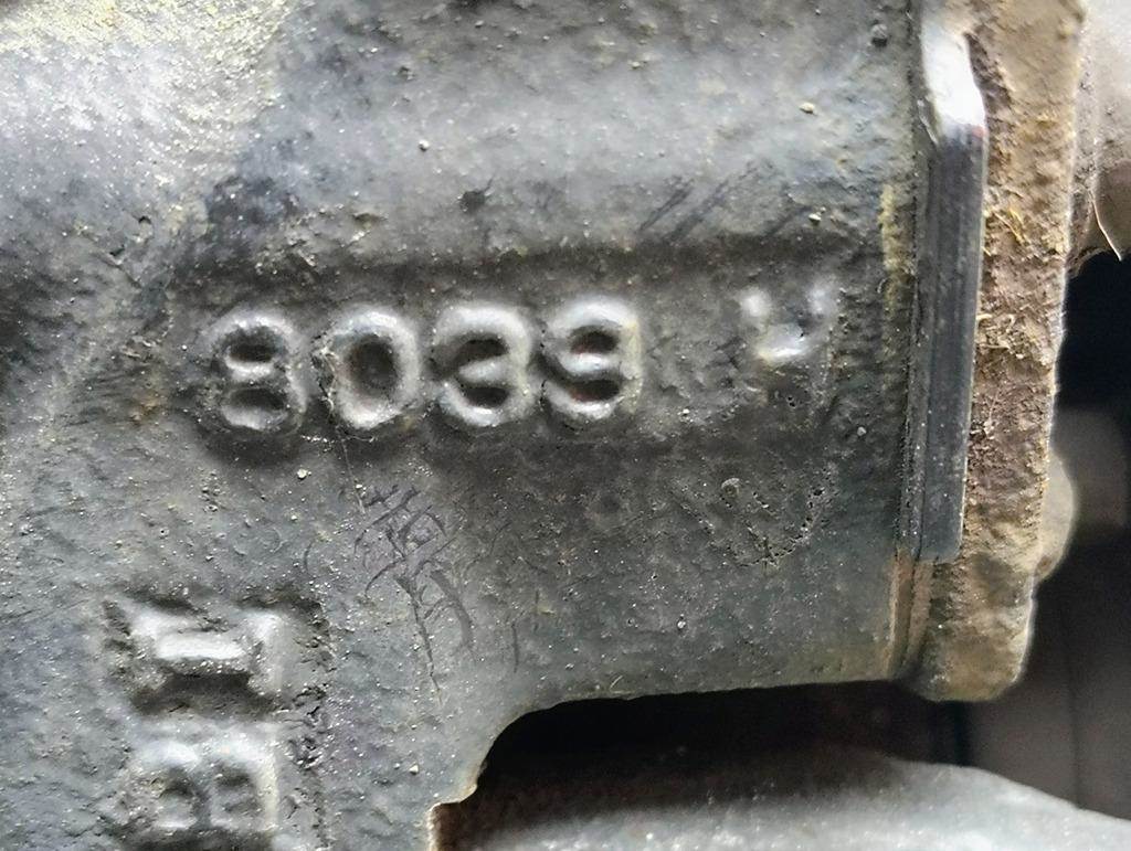 Meritor EX225L Rear Driver Side Air Disc Brakes w/ Bracket. P/N EX225L261CG207, Casting # 8039H, Pad Carrier Casting # 7956F, Torque Plate Casting # 3215L2508B