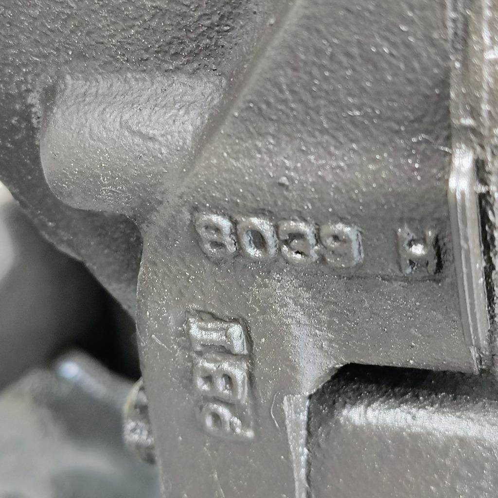 Meritor EX225L Rear Driver Side Air Disc Brakes w/ Torque Plate, Casting # 8039H, Pad Carrier Casting # 7956F, Torque Plate Casting # 3215L2508B. No Data Tag