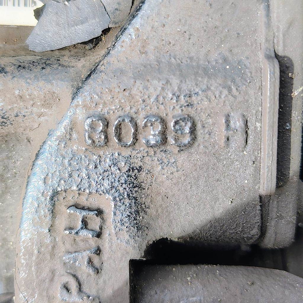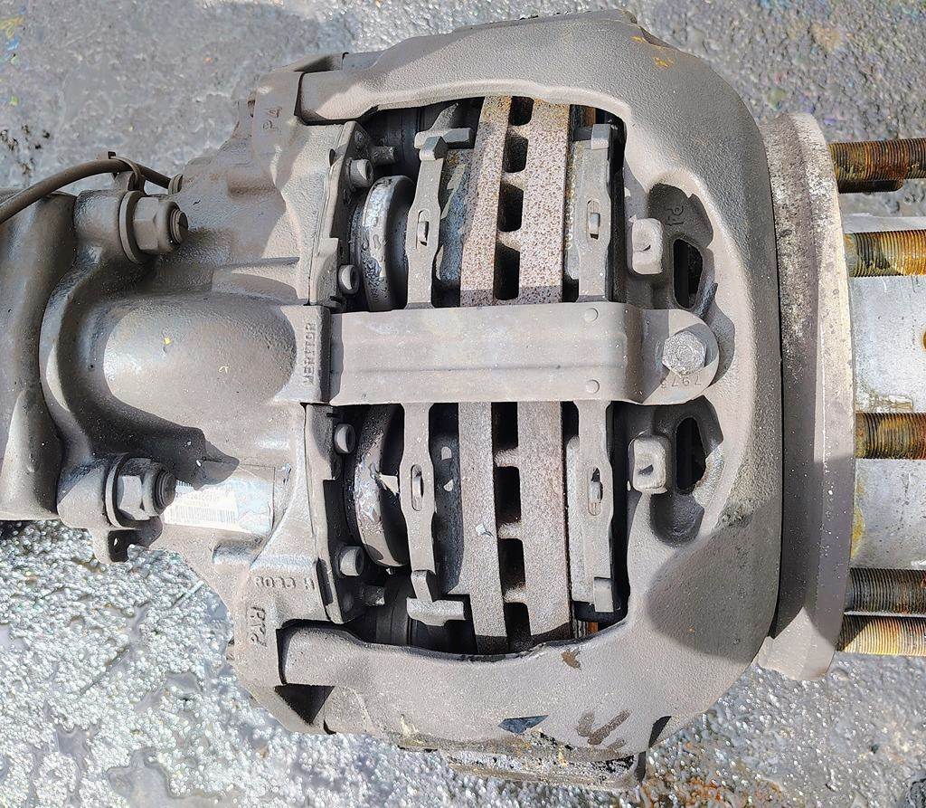 Meritor EX225L Rear Driver Side Air Disc Brakes w/ Torque Plate. P/N EX225L261CG207, Casting # 8039H, Pad Carrier Casting # 7956F, Torque Plate Casting # 3215L2508B