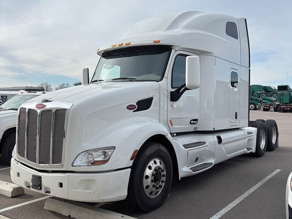 2021 PETERBILT 579 Conventional, 80 Inch UltraLoft Sleeper, Upper Bunk, Cummins X15 Engine, 450 H.P., Engine Brake, EEO-17F112C Transmission, (Automatic), 40,000 Lb. Rear Ends, 2.64 Ratio, Air Ride Suspension, Hydraulic Power Steering, Air Conditioned, Dual Aluminum Fuel Tanks, Horizontal Exhaust, Exterior Visor, Side Fairings, Cab Extenders, Quarter Fenders, Tilt And Telescoping Steering Wheel, Cruise Control, Power Windows, Auxiliary Power Unit, Refrigerator, Air Slide 5th, 242 Inch Wheel Base, Disc Brakes, 11R22.5 Aluminum Disc Wheels.