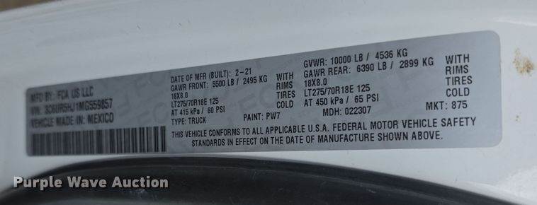 VIN: 3C6UR5HJ1MG559857